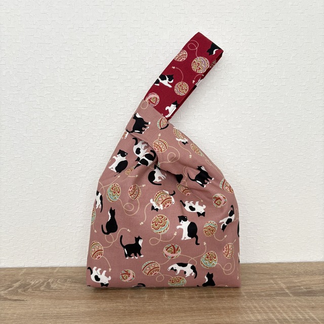 短い持ち手に長い持ち手を通して使うノットバッグです。 お財布、携帯、エコバッグがちょうど入るぐらいのサイズです。 まちは6㎝。 ちょっとそこまでという時に便利にお使いいただけます。 6枚目の写真は同じデザインの作品を使った参考写真です。 ※発送上の注意点※ たたんで梱包するため、 多少のしわが出来る可能性がございます。ご了承ください。 サイズ:底幅22㎝ 入れ口幅28㎝ 高さ24㎝ まち6㎝