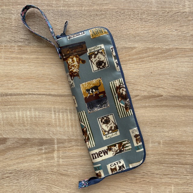 濡れた折りたたみ傘を入れられる便利なケースです。 外側は猫柄ラミネート生地で、内側は吸水性の高いマイクロファイバー生地を 使用しています。 ファスナーを全開にするとフラットになるので、乾かすときに便利です。 持ち手にはプラスナップがついているので、バッグの持ち手等に提げられます。 5枚目の写真は同じサイズの傘ケースを使用した参考写真です。 ※ご使用後はしっかり乾かしてください。 ※大量の水滴が付いたまま入れると縫い目から水が浸み出ることがあります。 水滴を払ってから入れてください。 サイズ:閉じた状態で 縦29.5㎝ 横11.5㎝