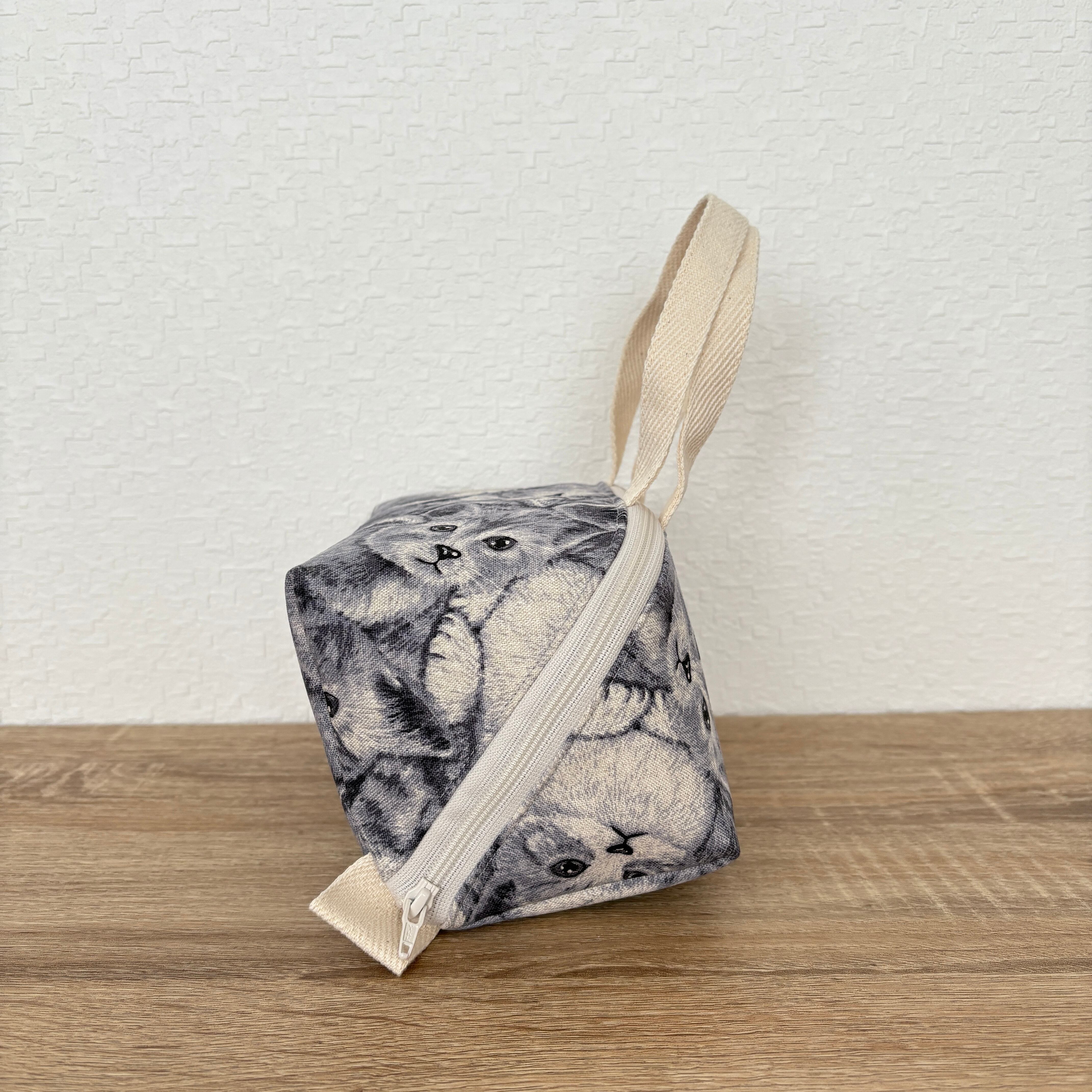 ころんとした長方形をななめに切るようにしてファスナーが開きます。