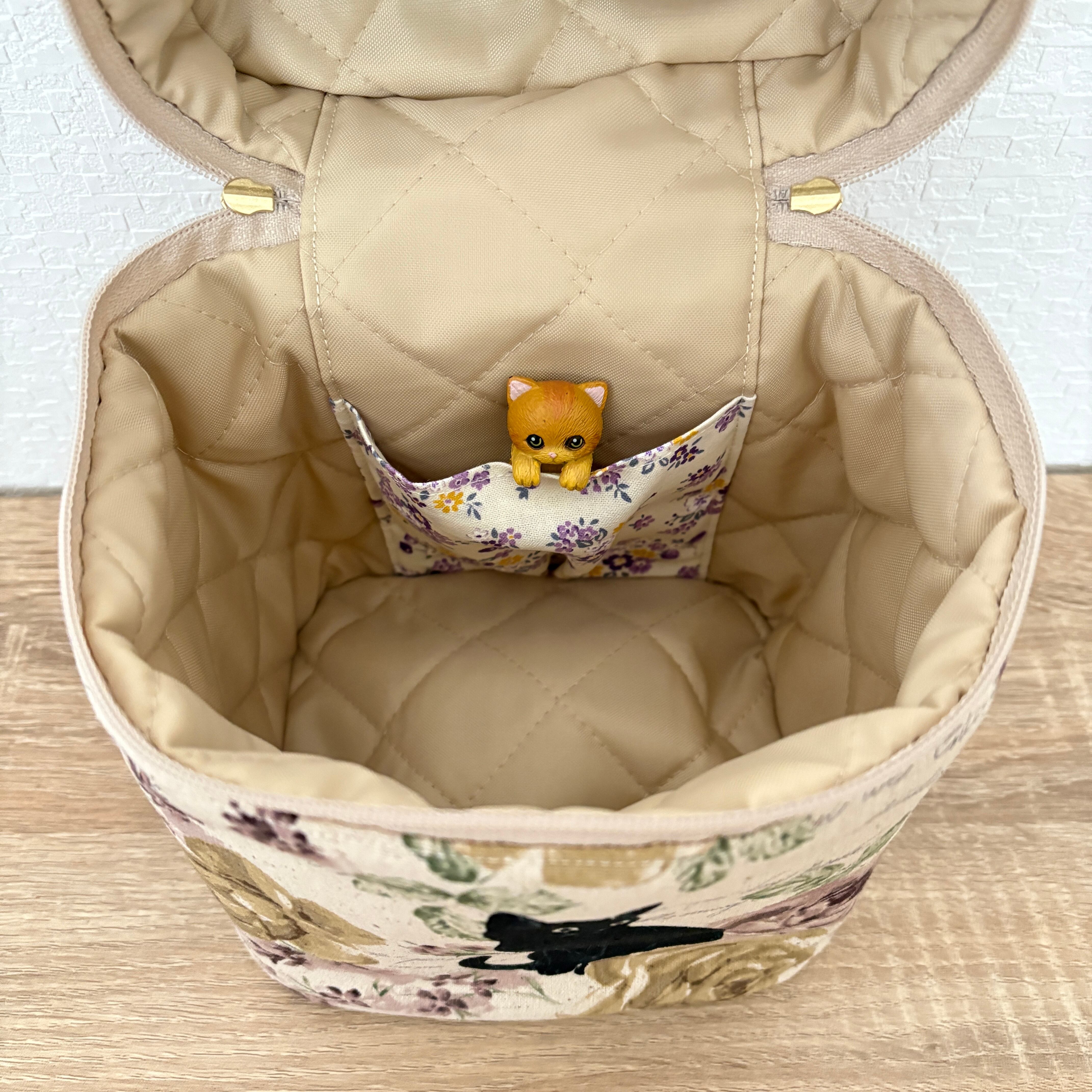 表地にも厚手のキルト芯を貼っているので、しっかりと形状を保っています。