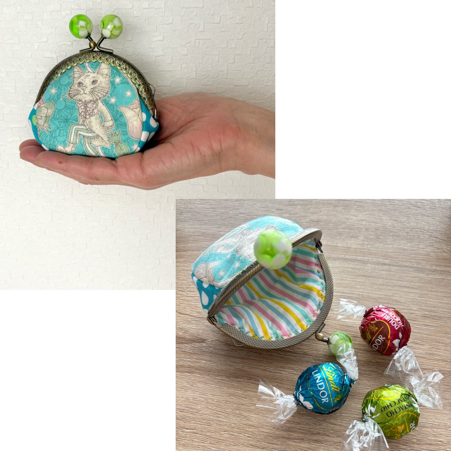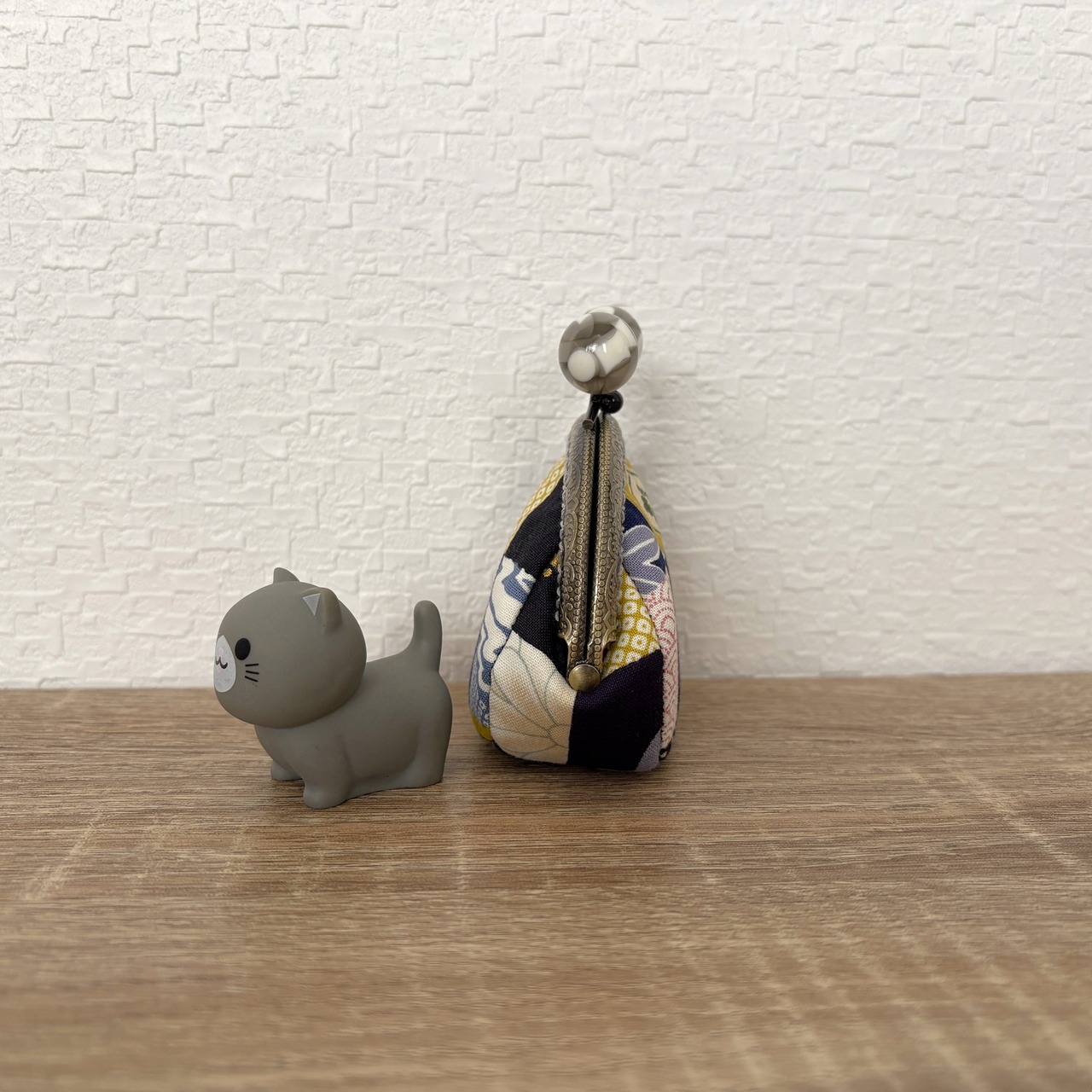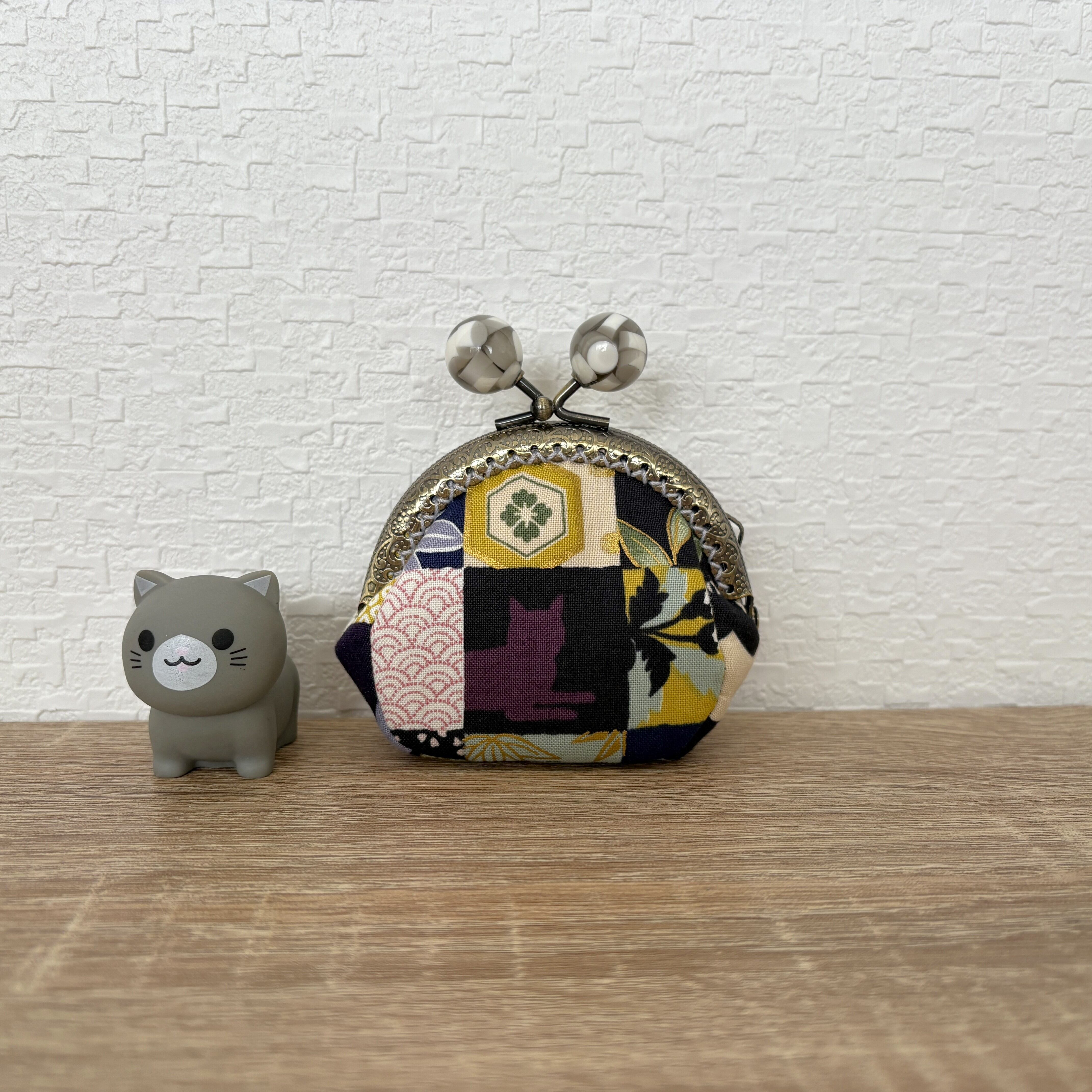 ころんとした形のがまぐちポーチです。