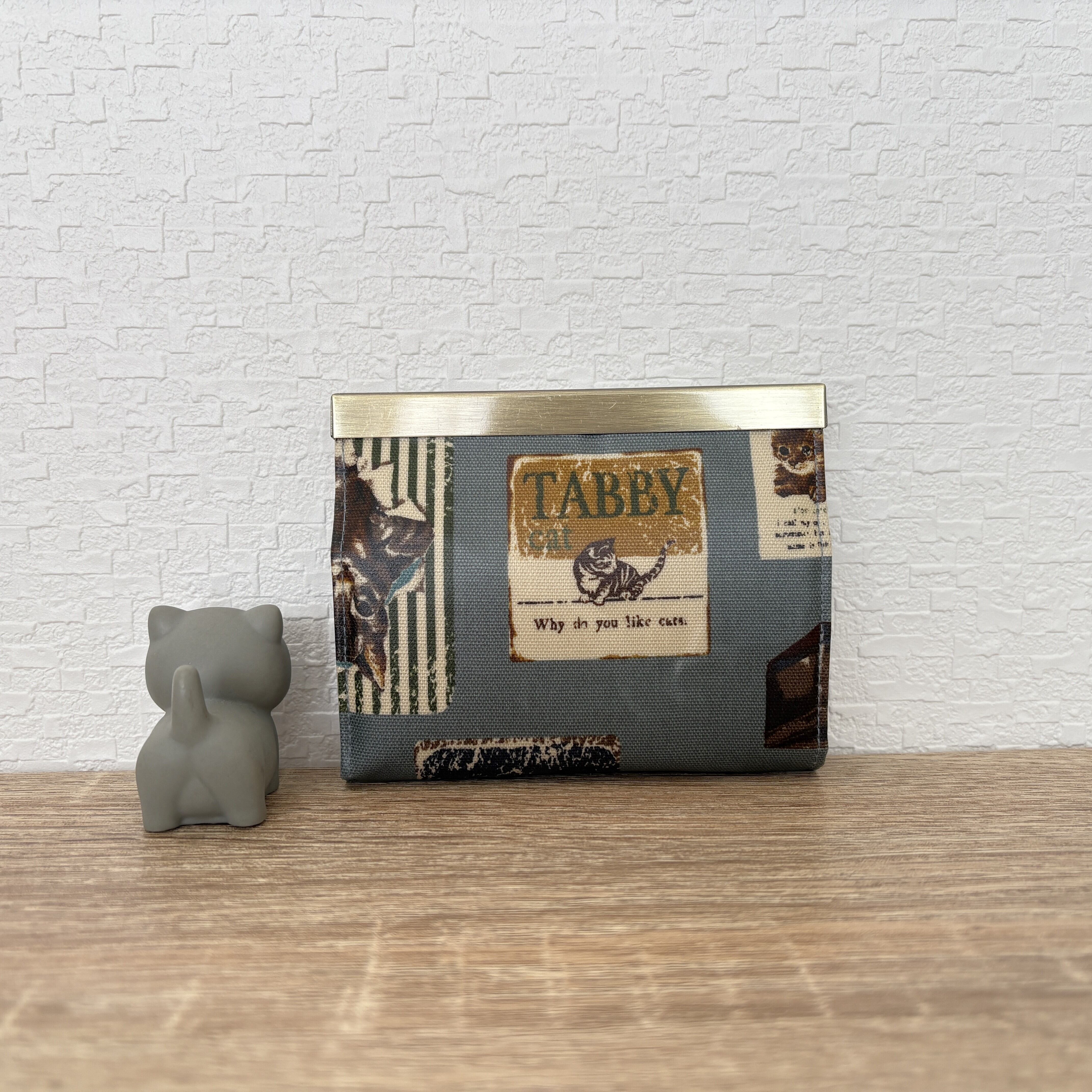 外側には猫柄のラミネート生地を使用しました。