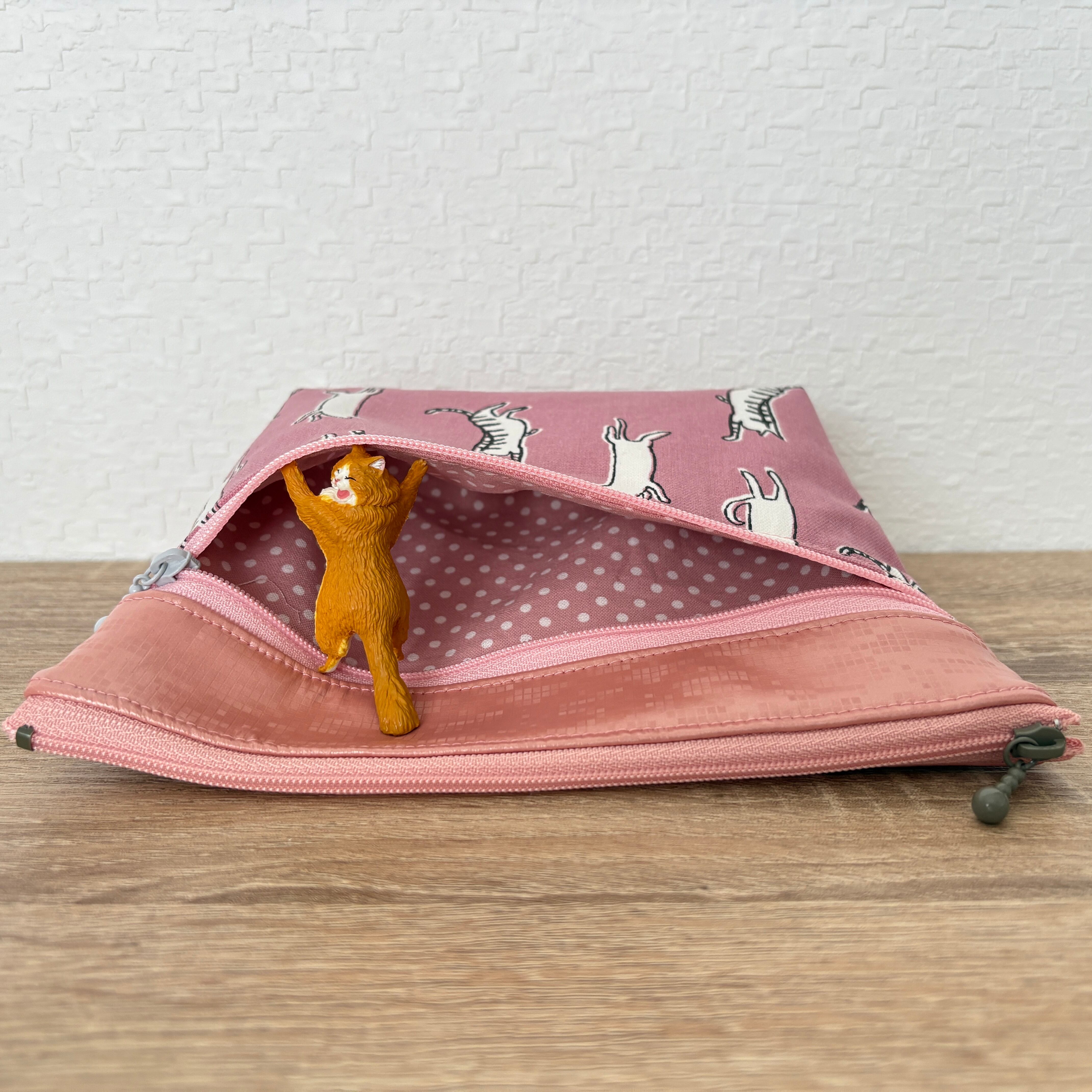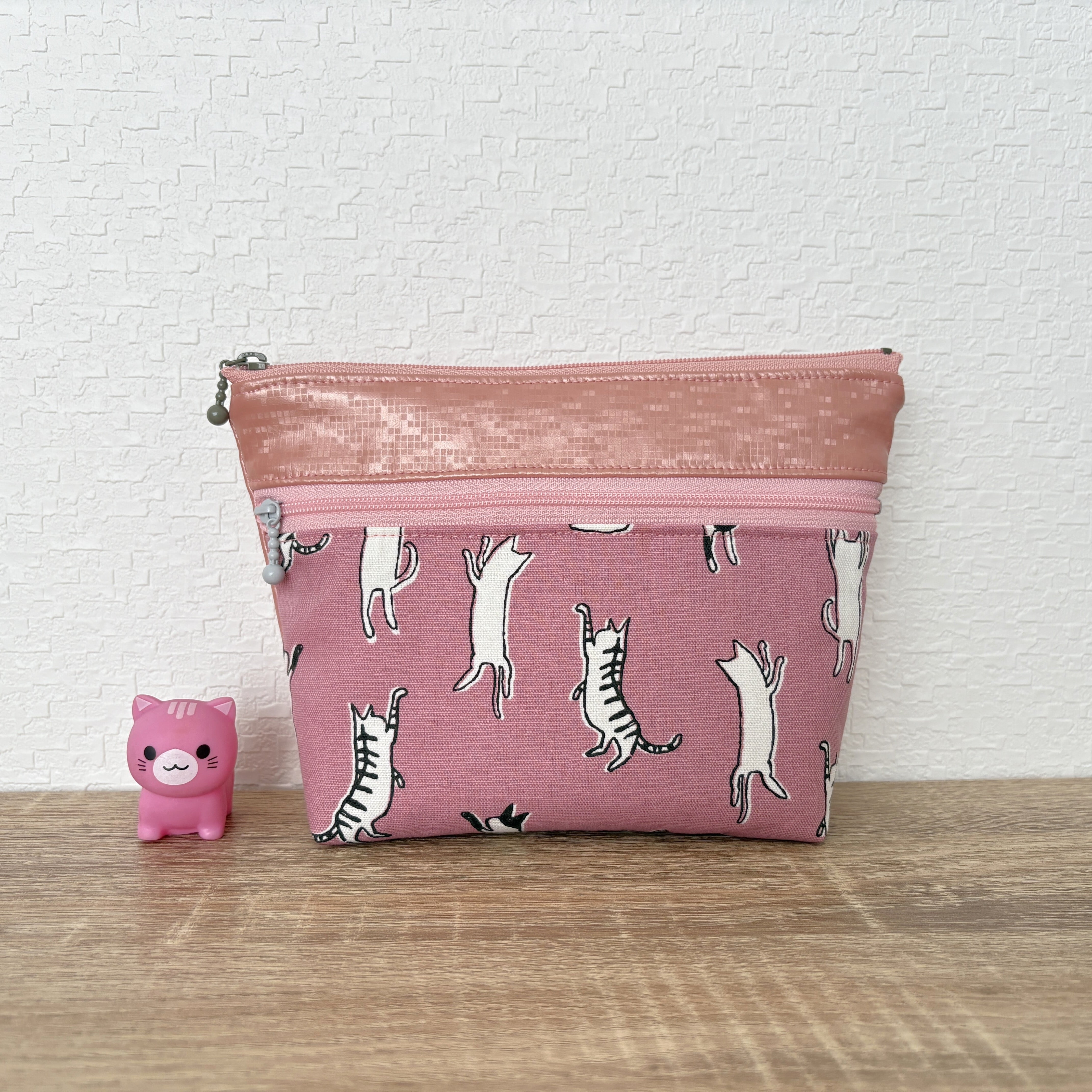猫柄生地とラメのソフト合皮生地を組み合わせたポーチです。