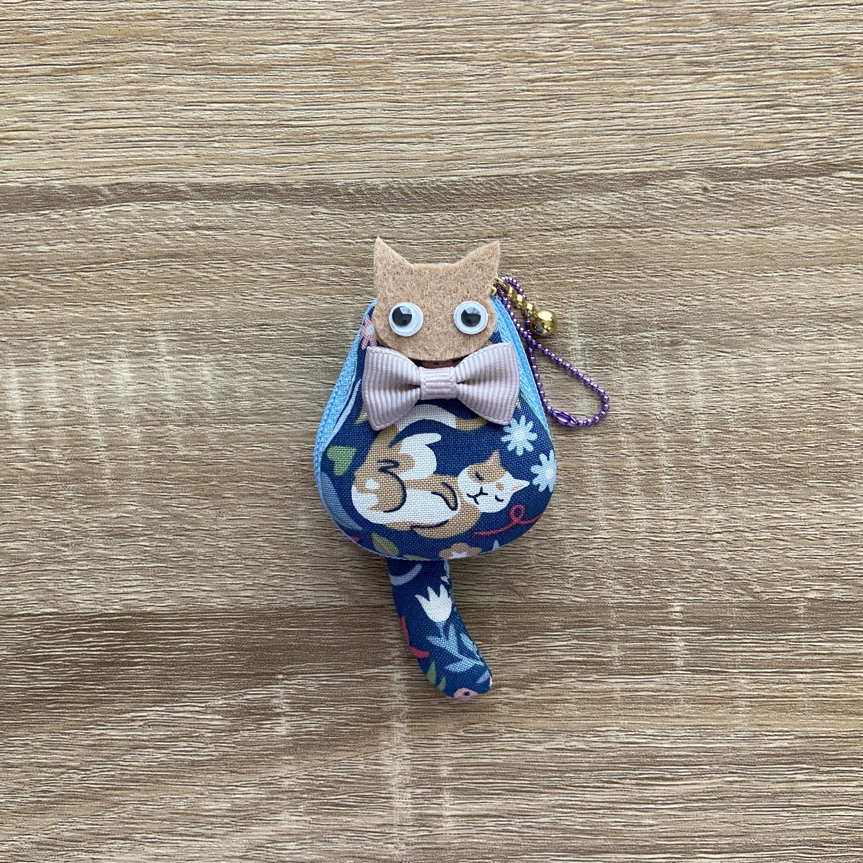ねこの形のマカロンポーチ「にゃかろんポーチ」です。