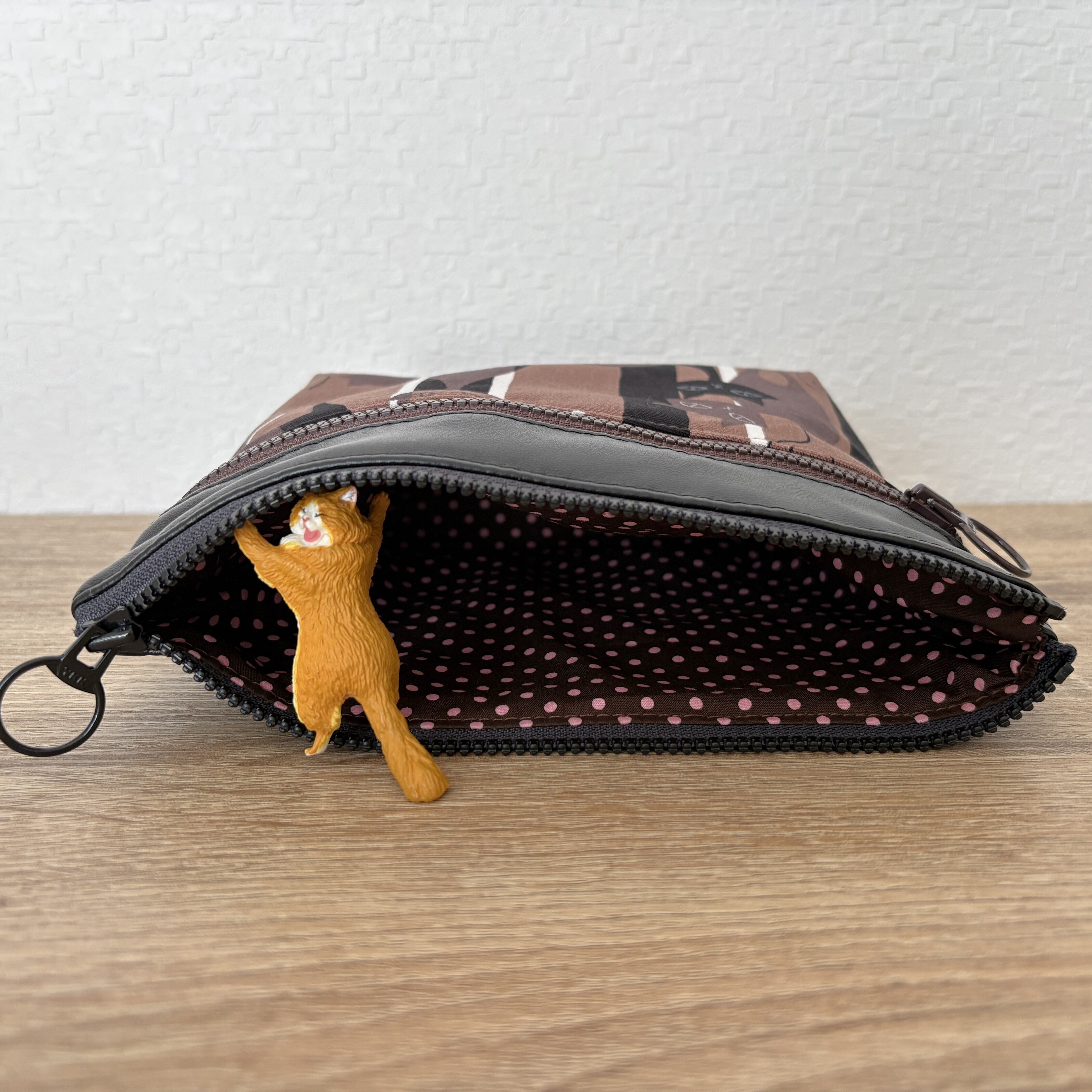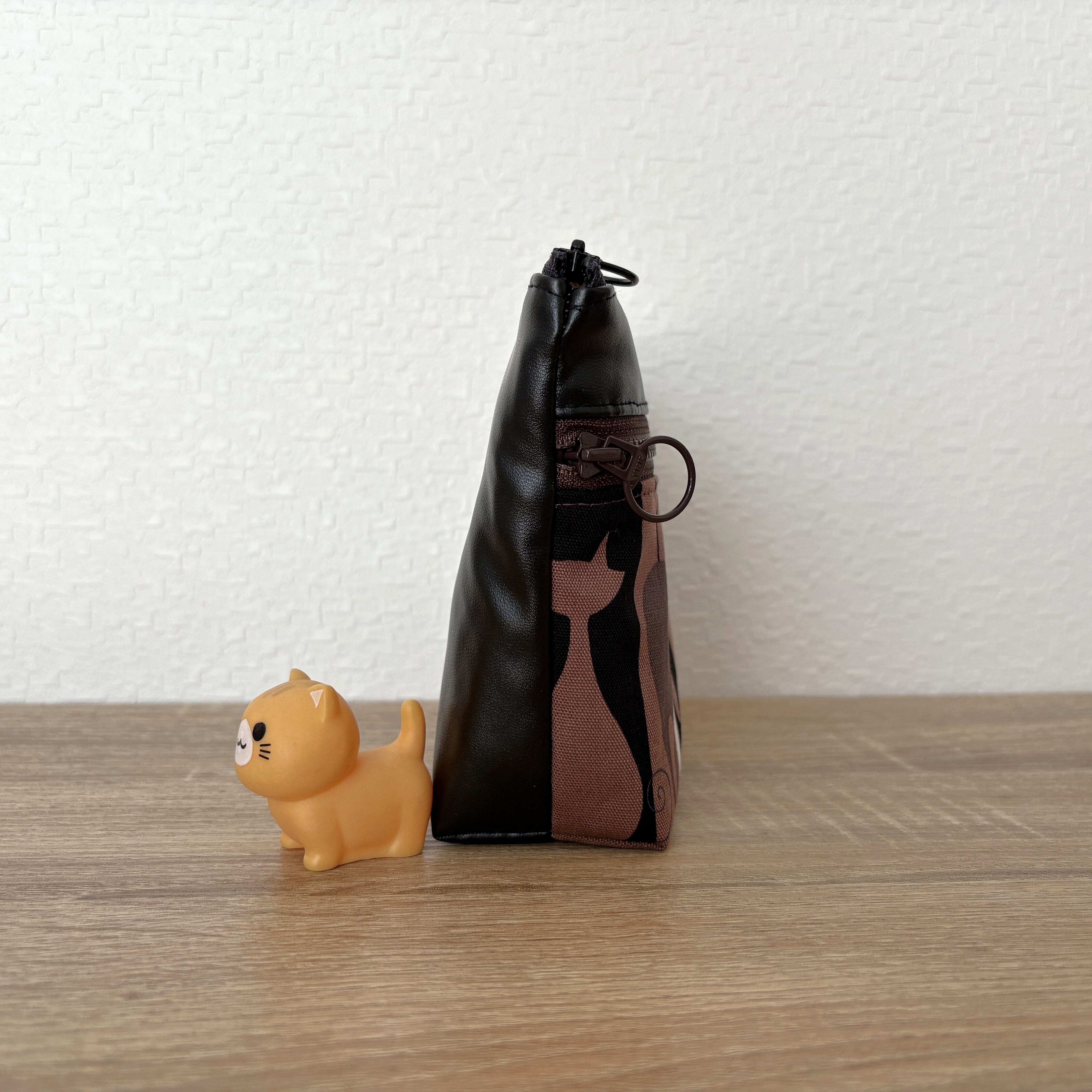 猫柄生地と黒のソフト合皮生地を組み合わせたポーチです。