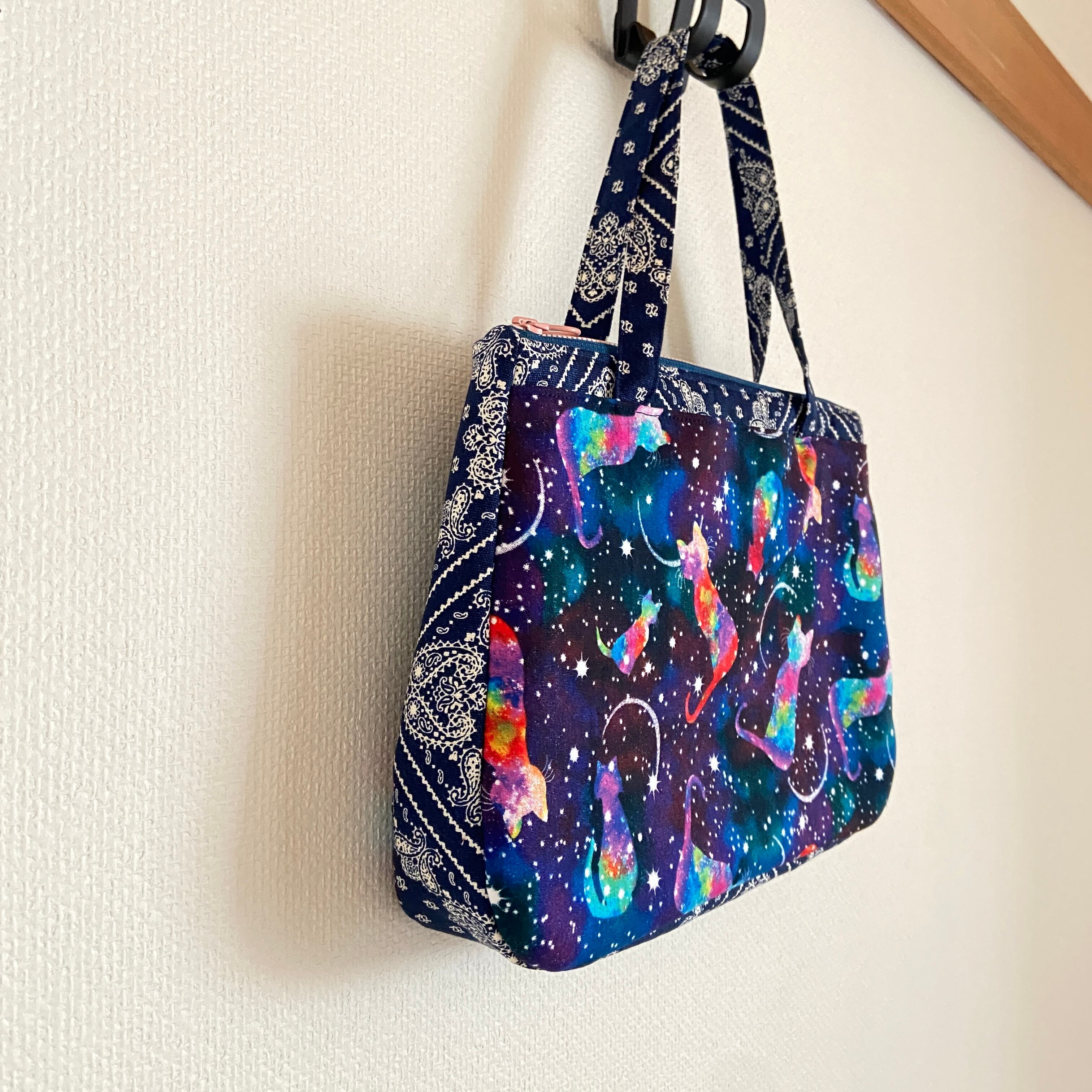 サイズ:幅最長29㎝ 入れ口幅25㎝ 高さ21㎝(持ち手含まず) まち最長6㎝