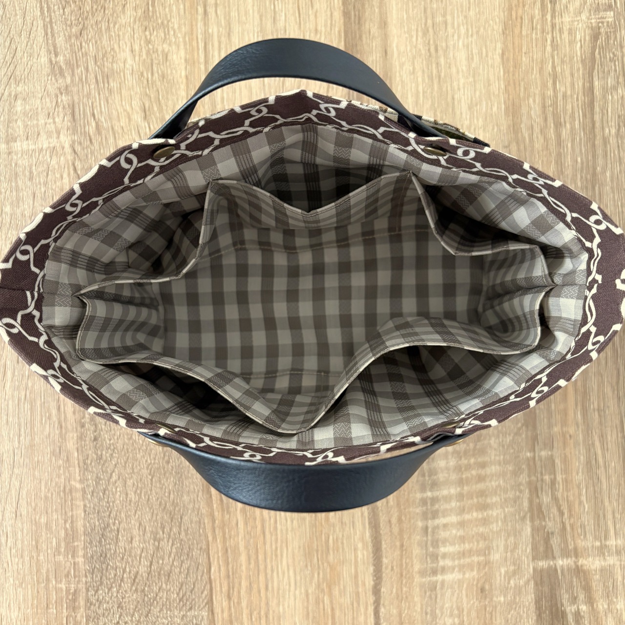 内側には5つのポケットがついています(幅14㎝ 高さ10㎝が2つ 幅9㎝ 高さ10㎝が3つ)