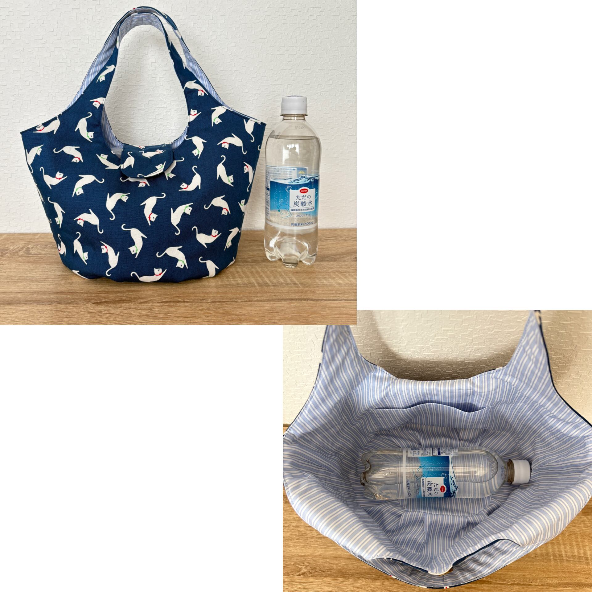 底の部分にたっぷりタックを入れたので、見た目よりたくさんお荷物が入ります。