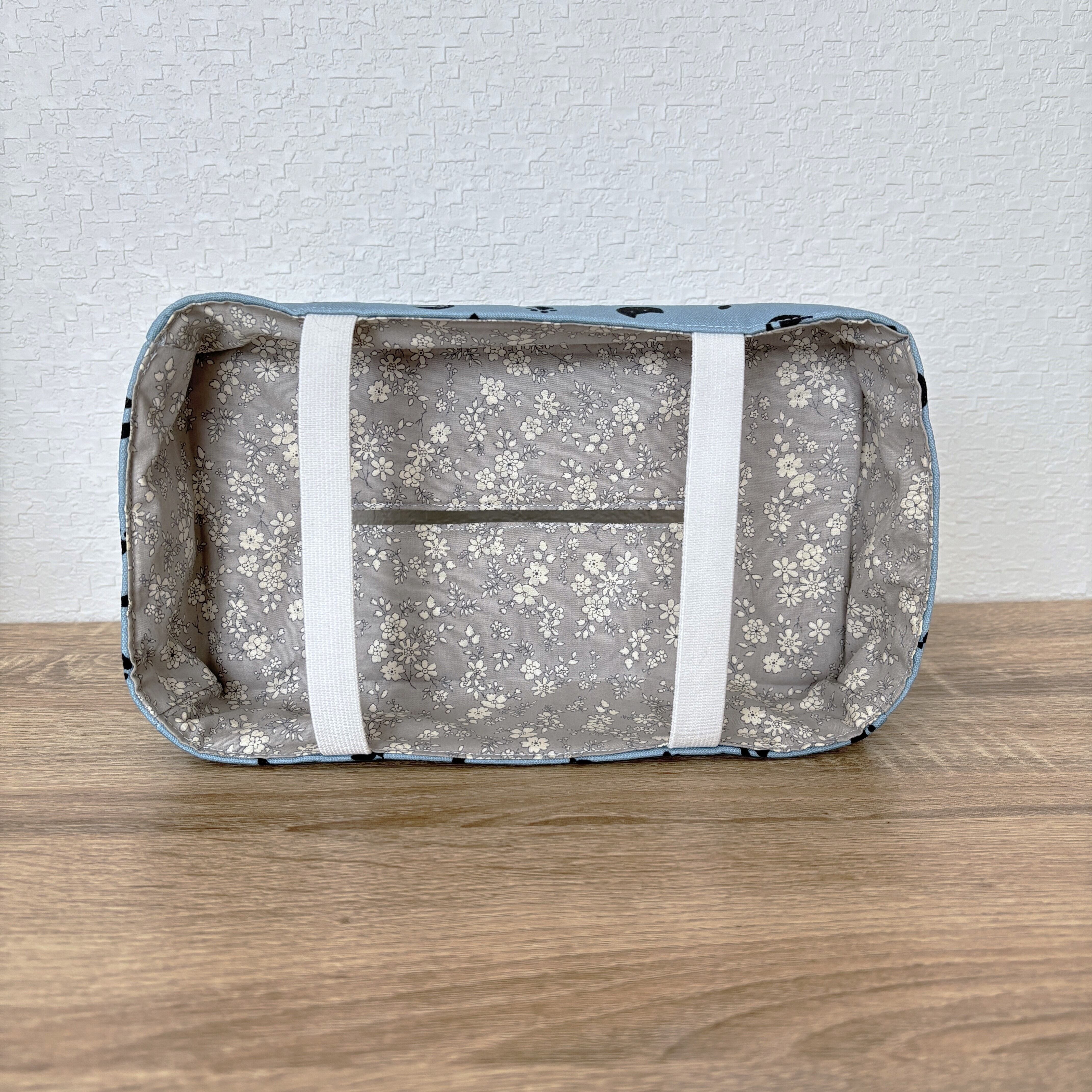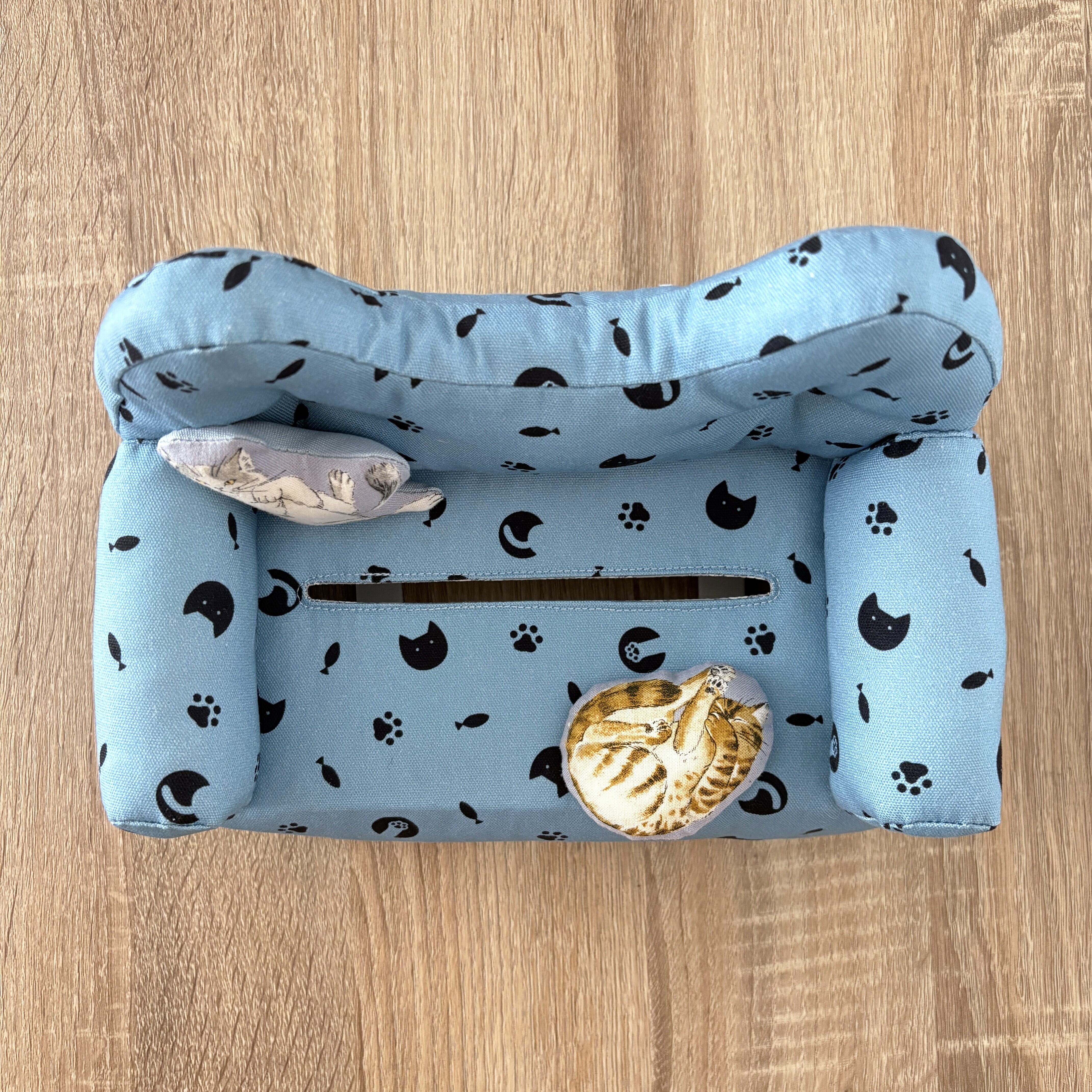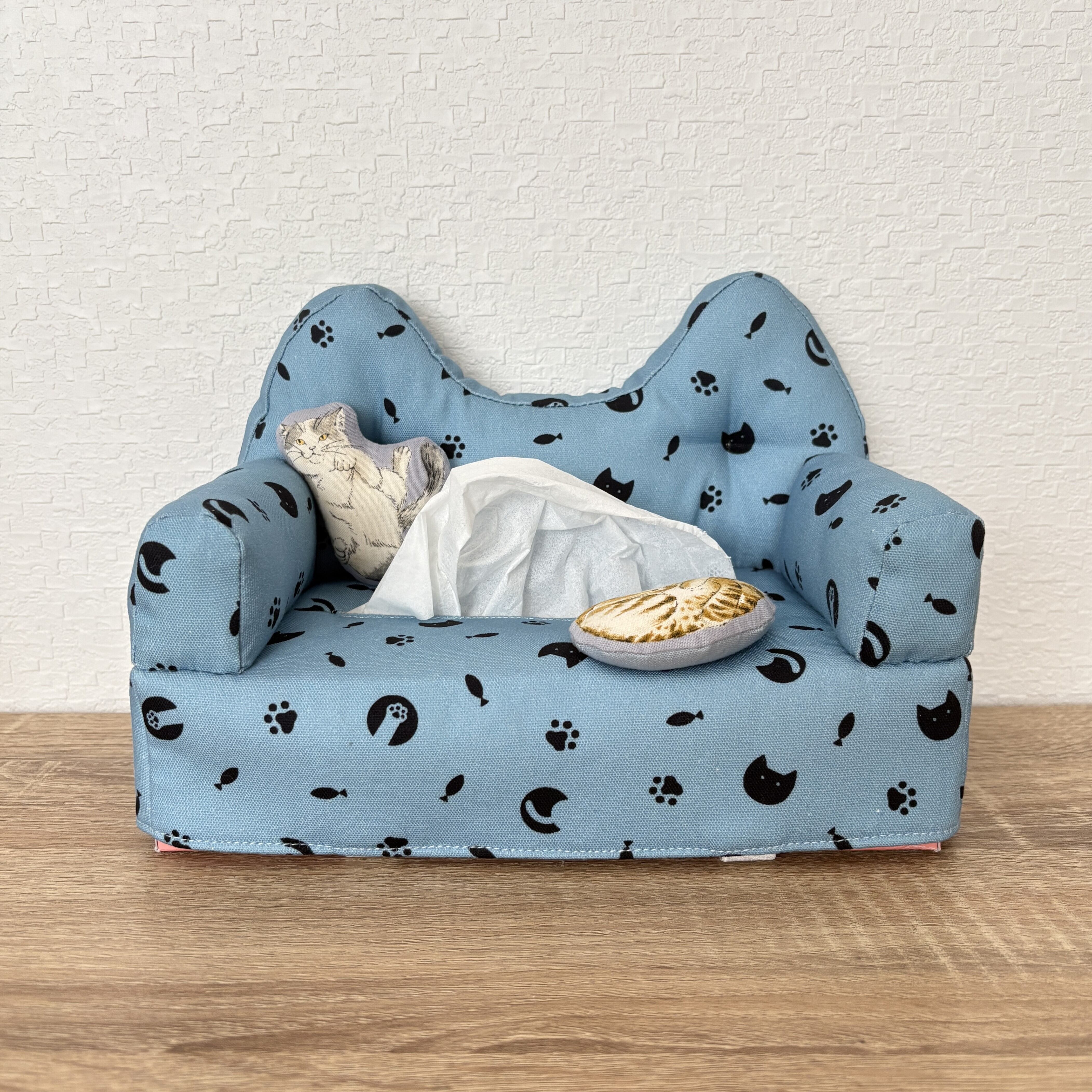 猫柄生地を使用し、背もたれもにゃんこ型になっています。