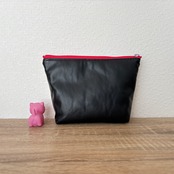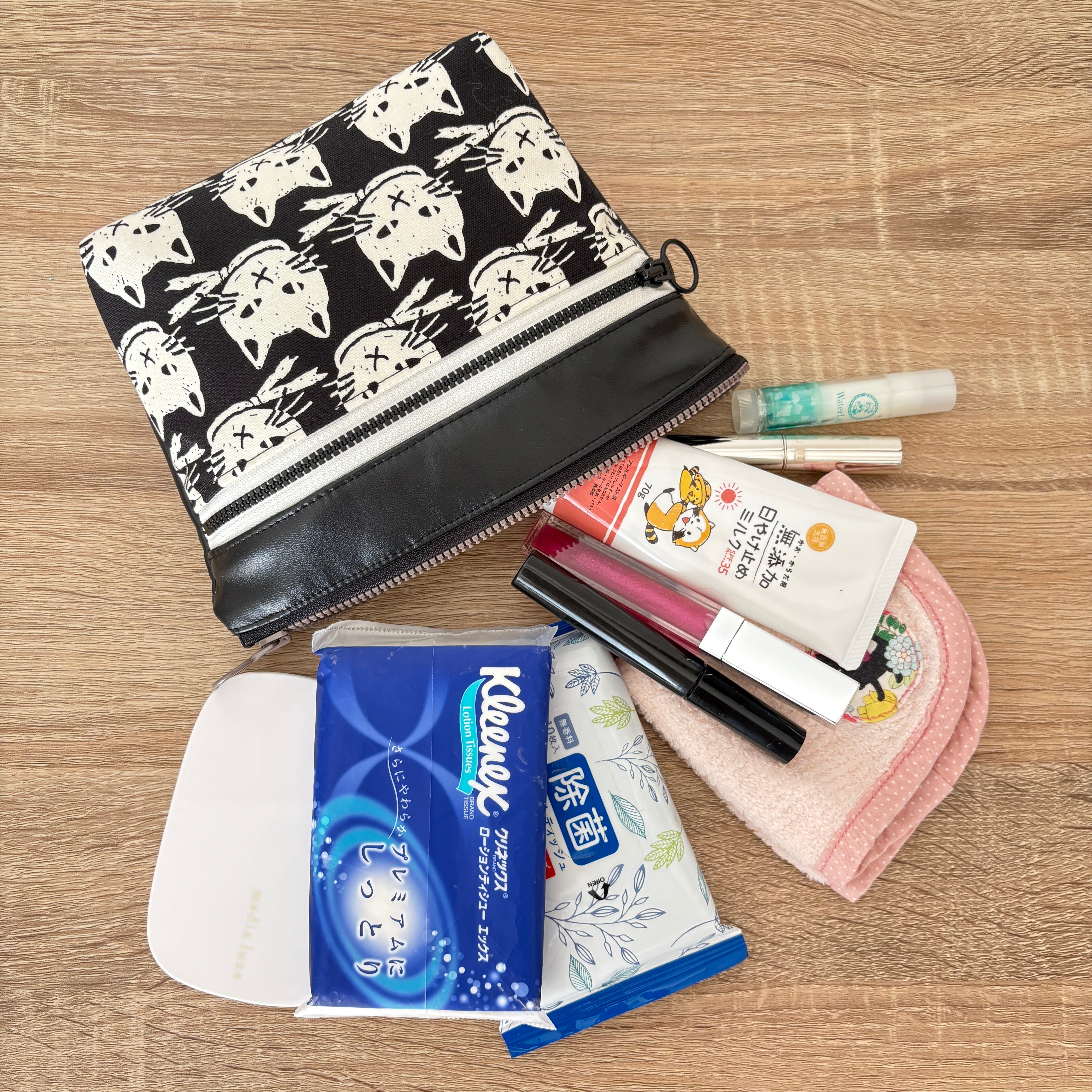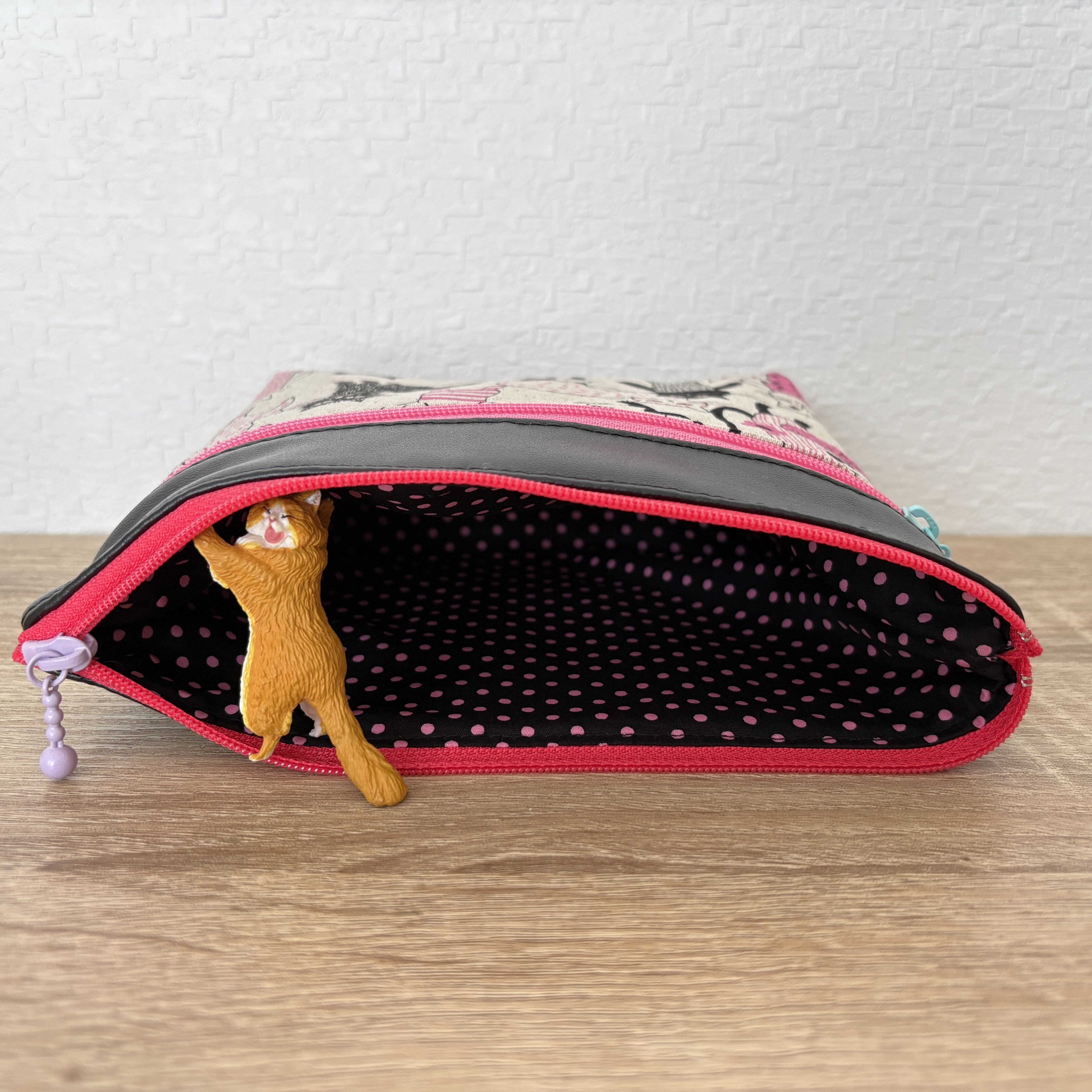 猫柄生地と黒のソフト合皮生地を組み合わせたポーチです。