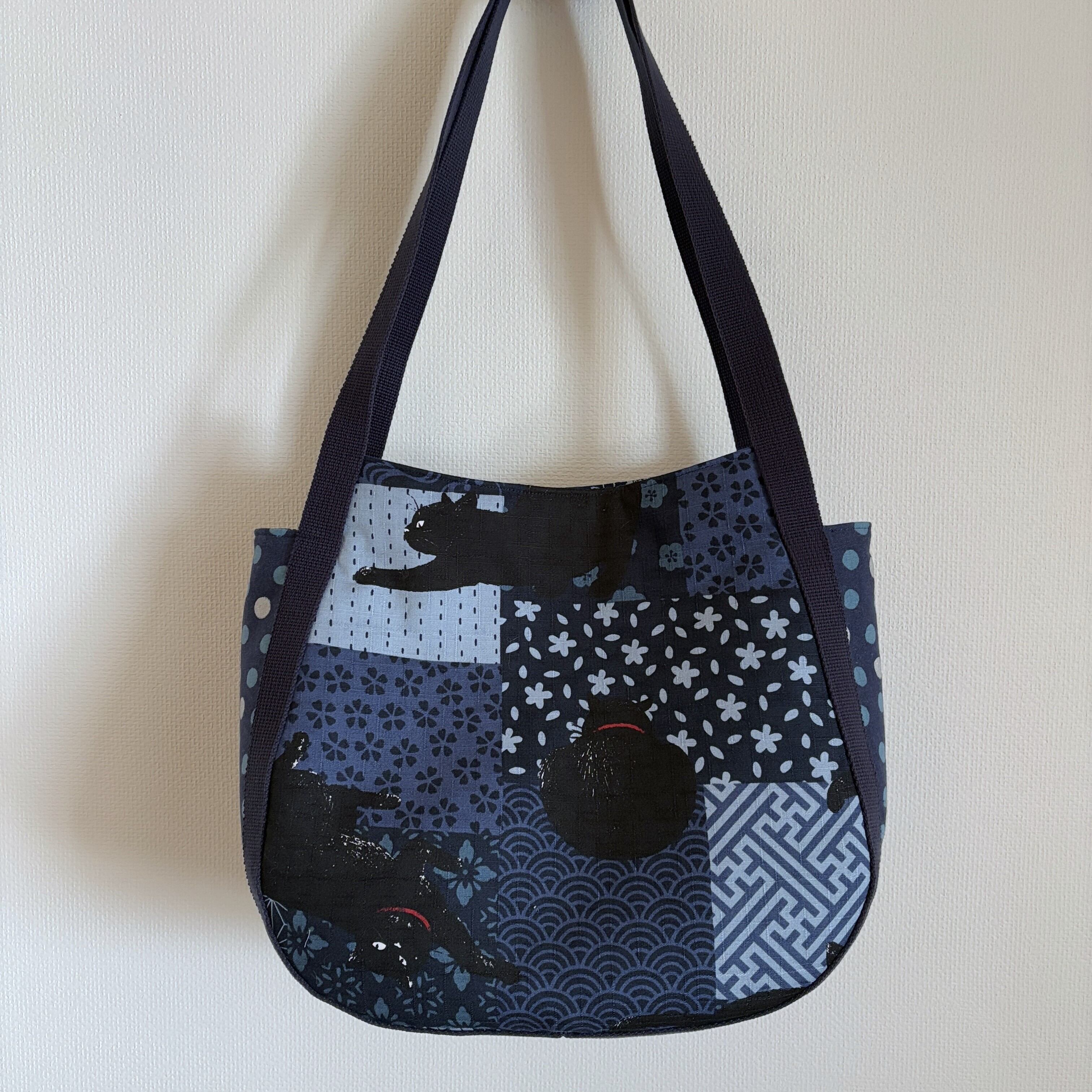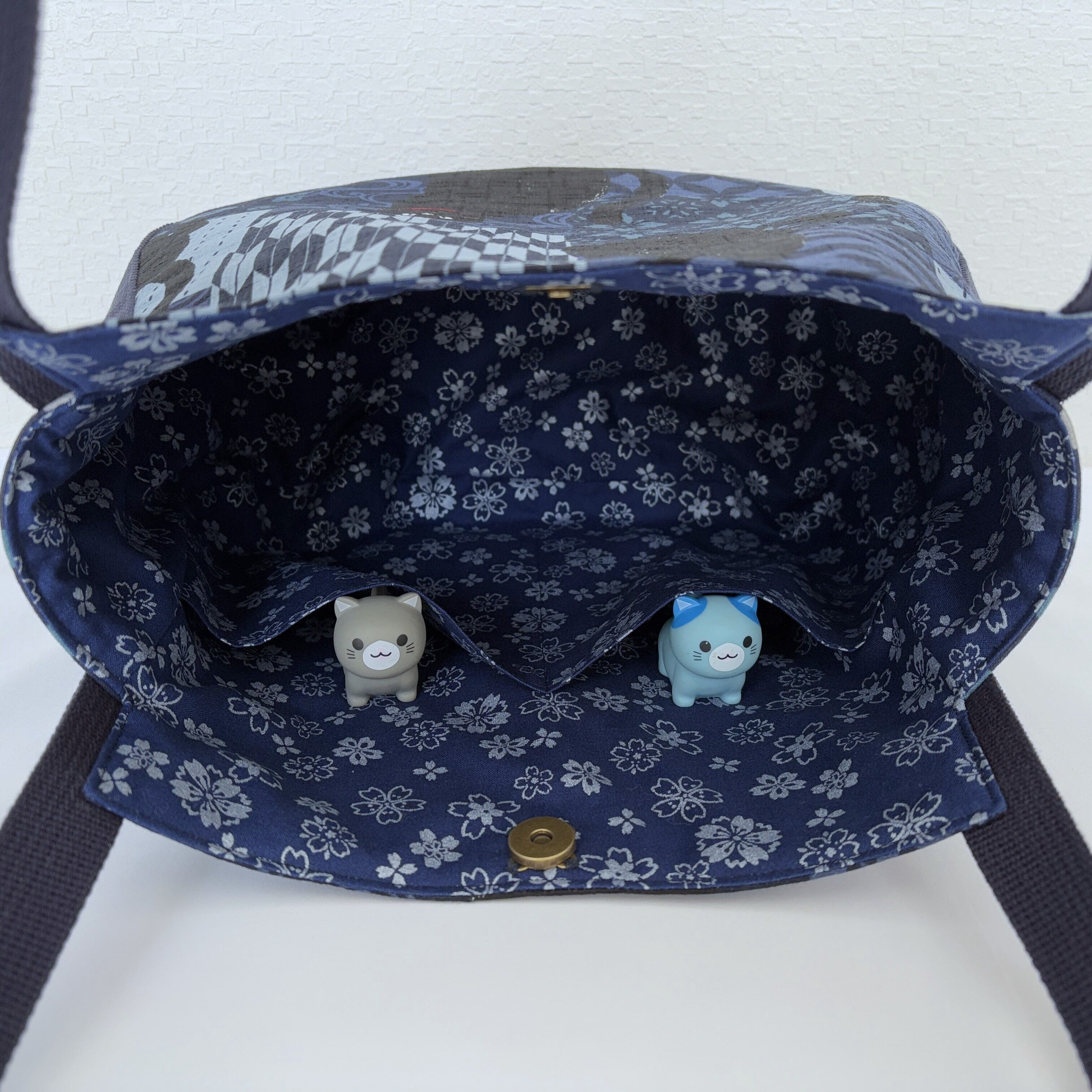 内ポケットは、横幅がバッグと同幅、深さ最長21㎝のものを2分割にしてつけました。