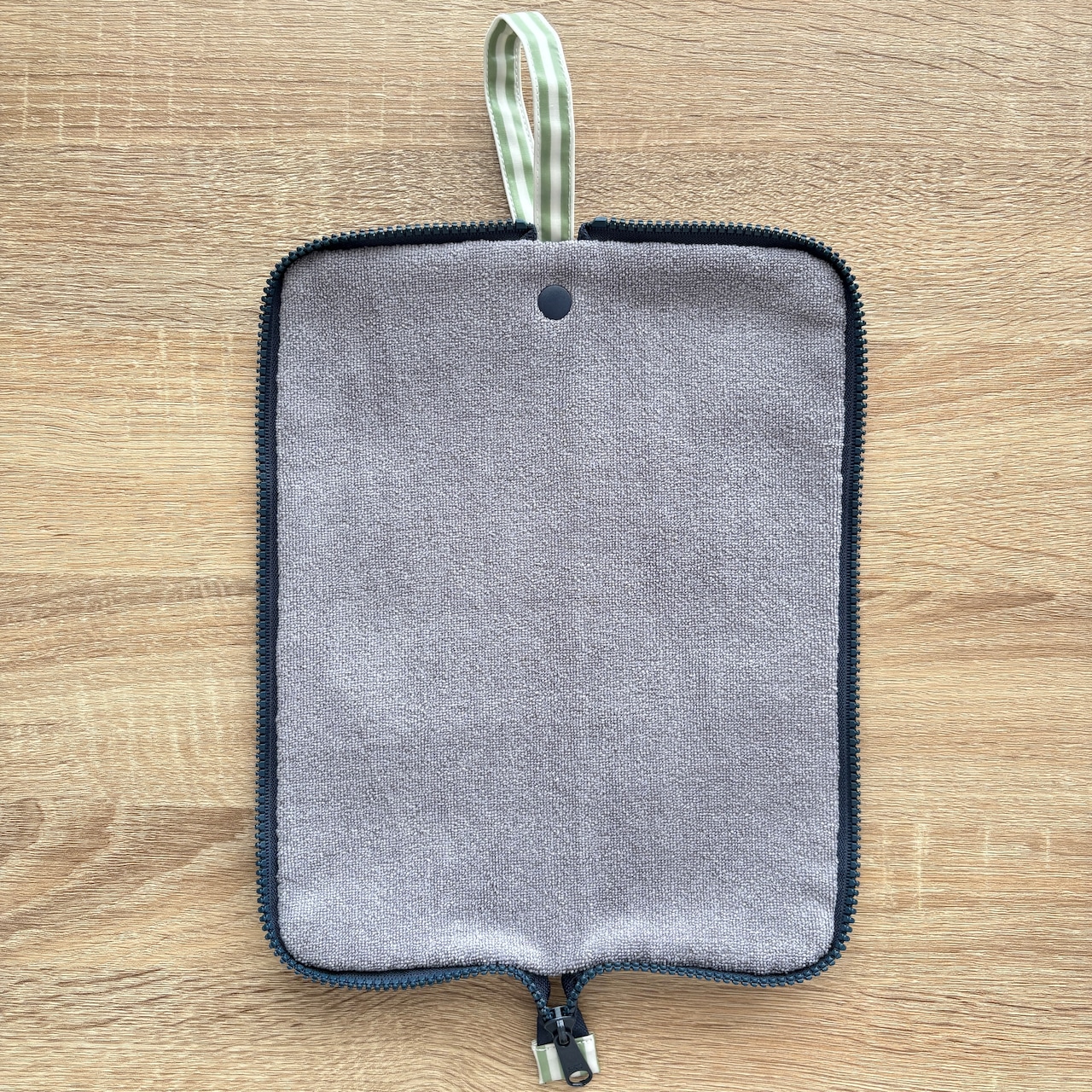 持ち手にはプラスナップがついているので、バッグの持ち手等に提げられます。
