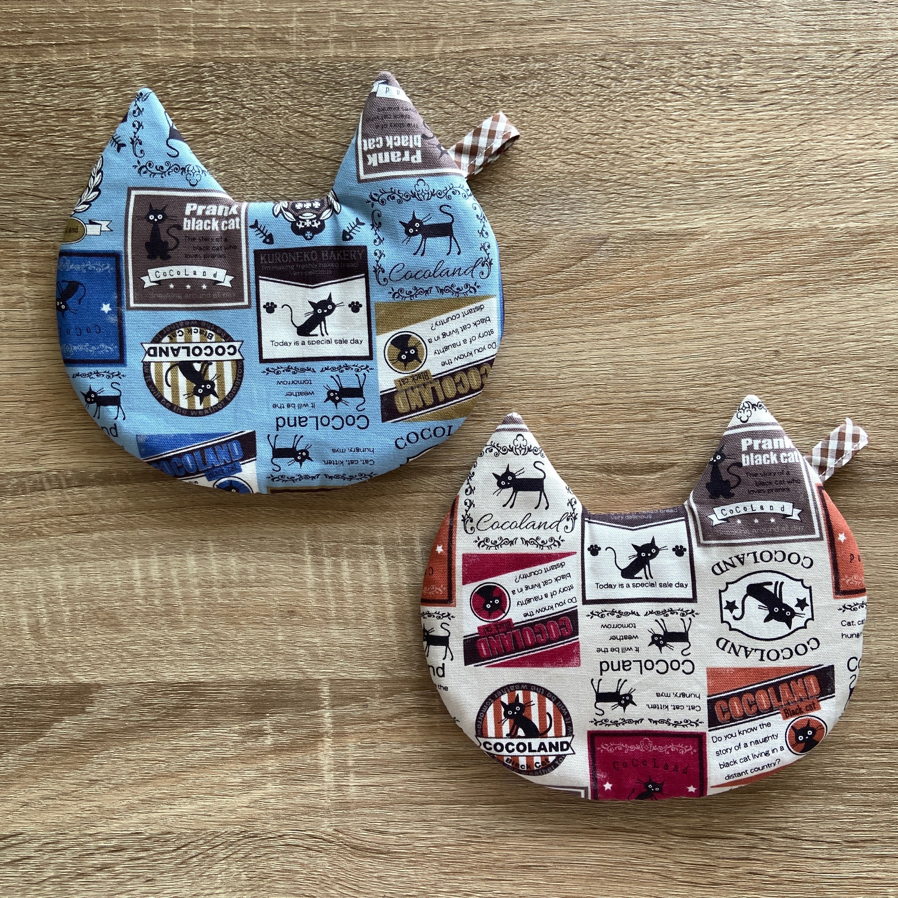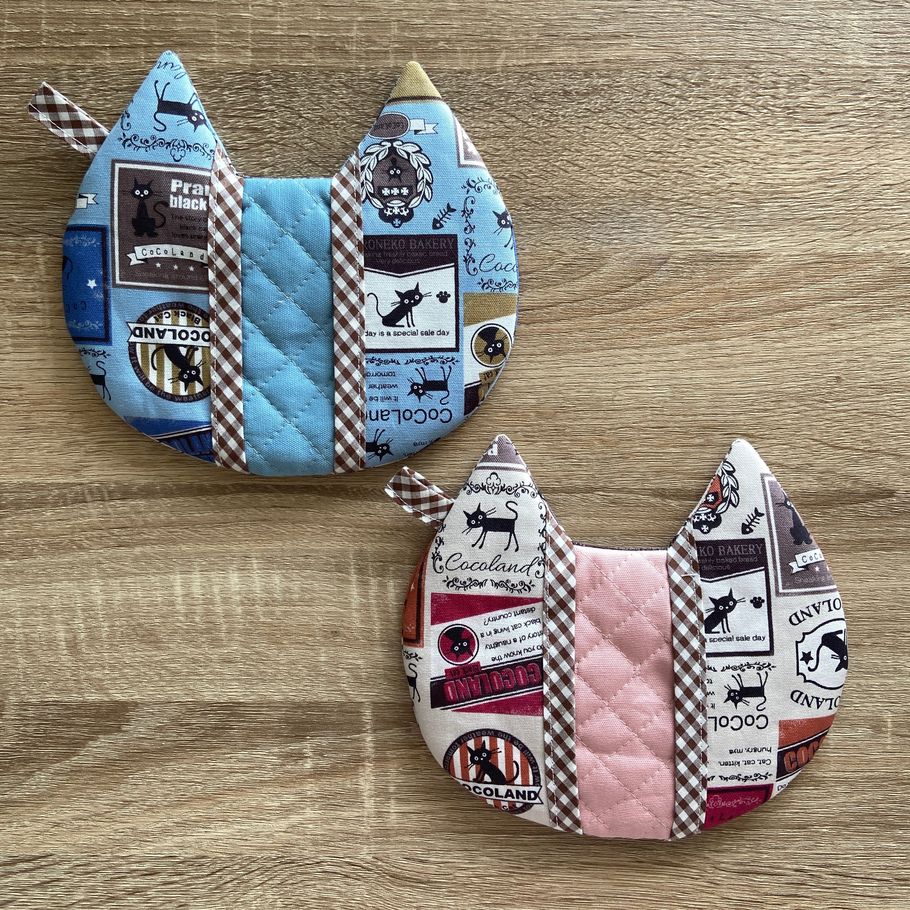 手のひら側は猫柄布、キルト芯2枚、キルティング生地の4枚重ねです。