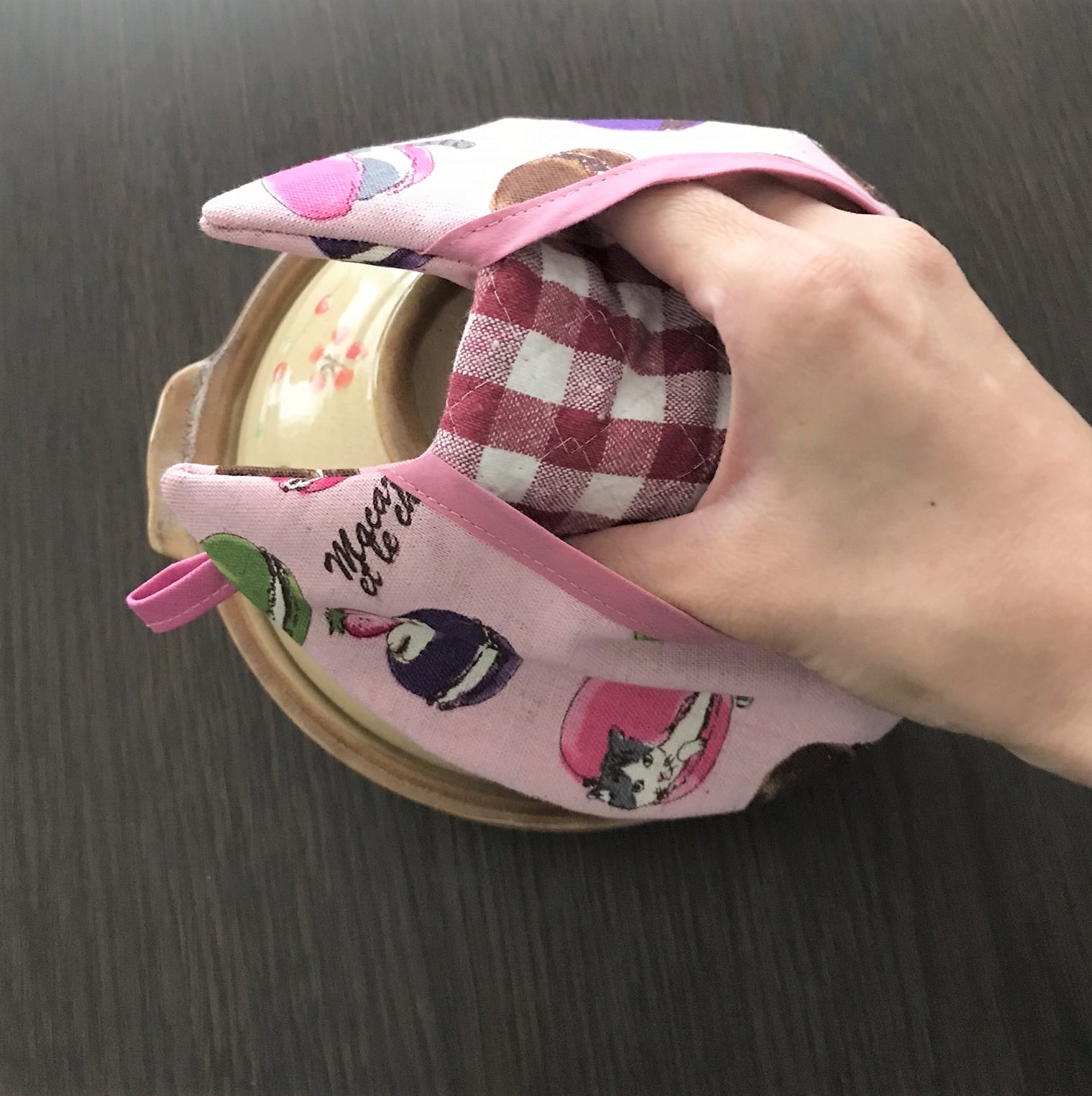 裏側は両サイドがポケットになっているので、手を差し込んで鍋つかみとしてお使いいただけます。