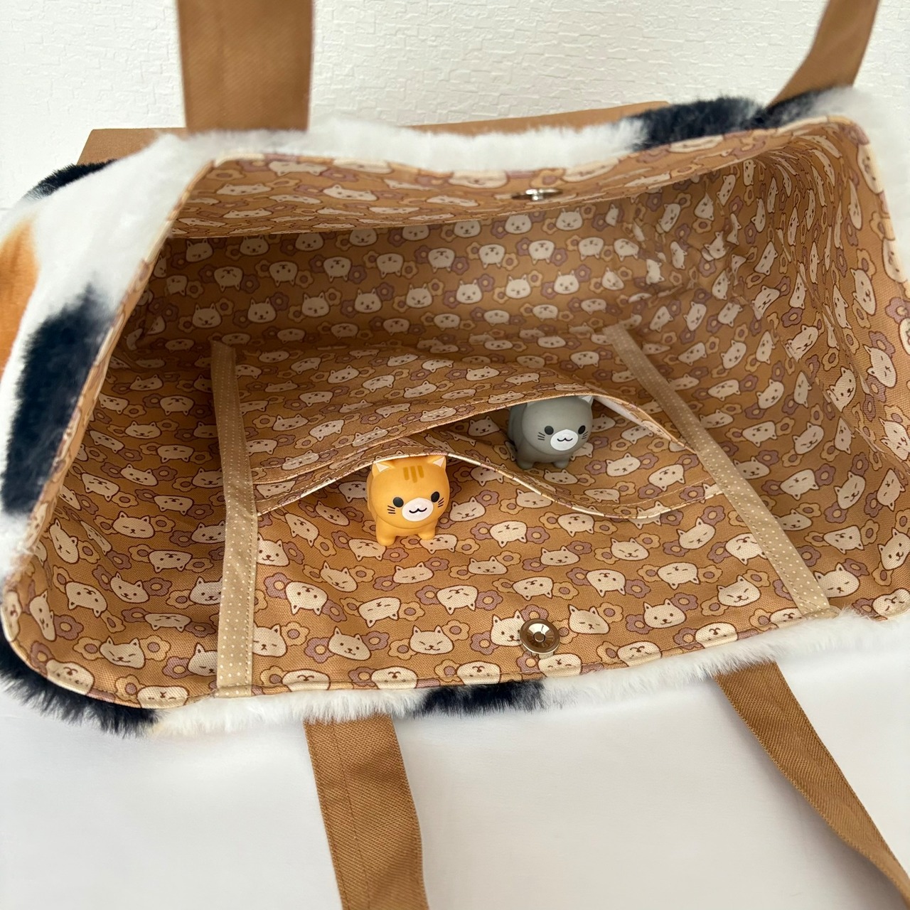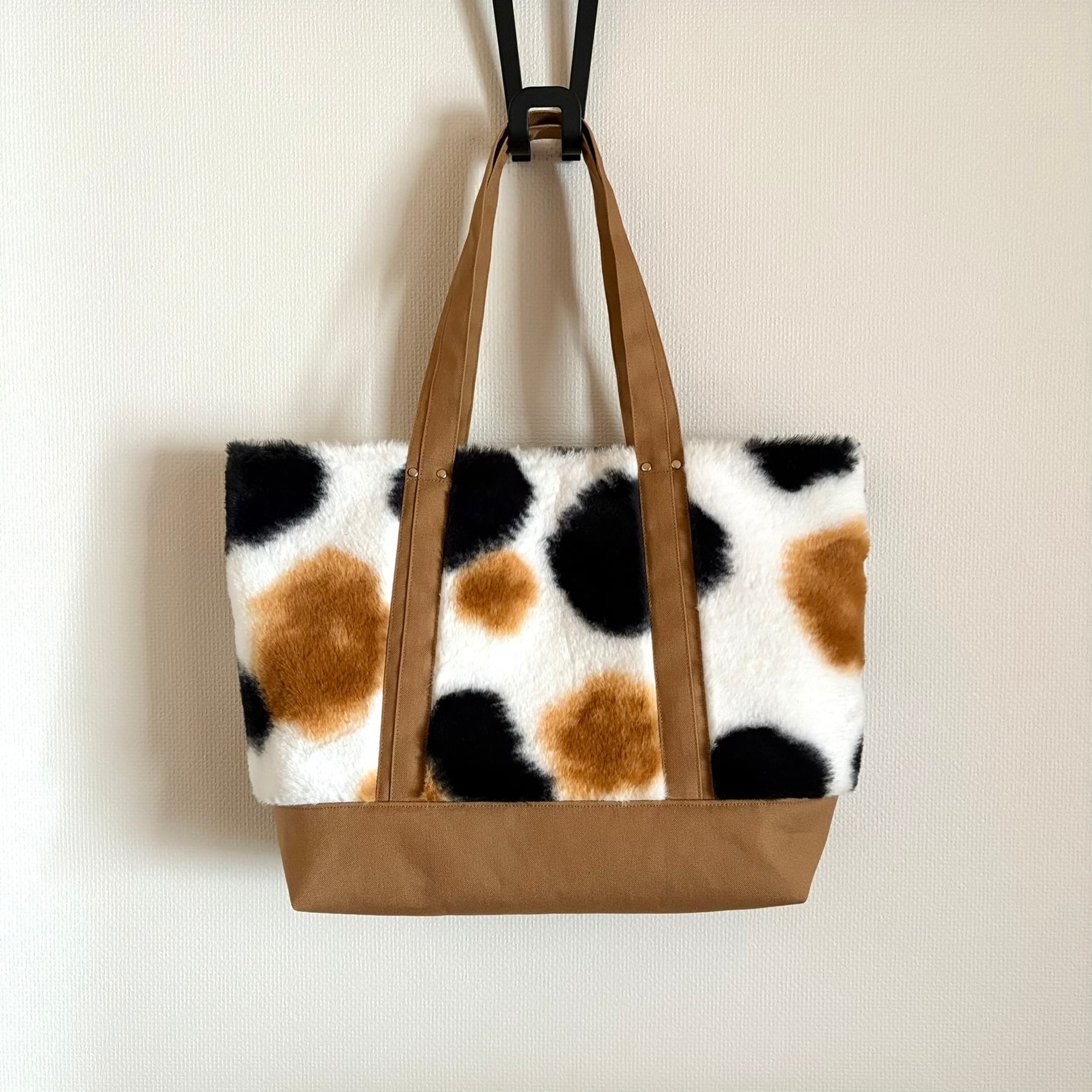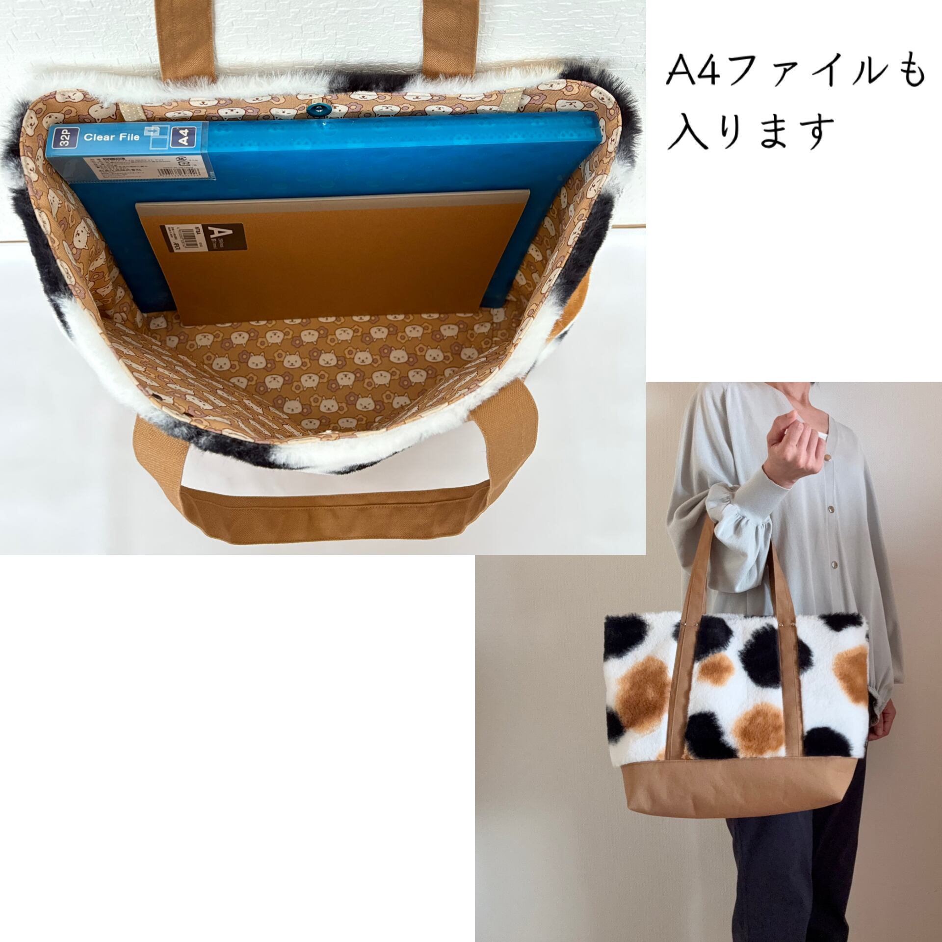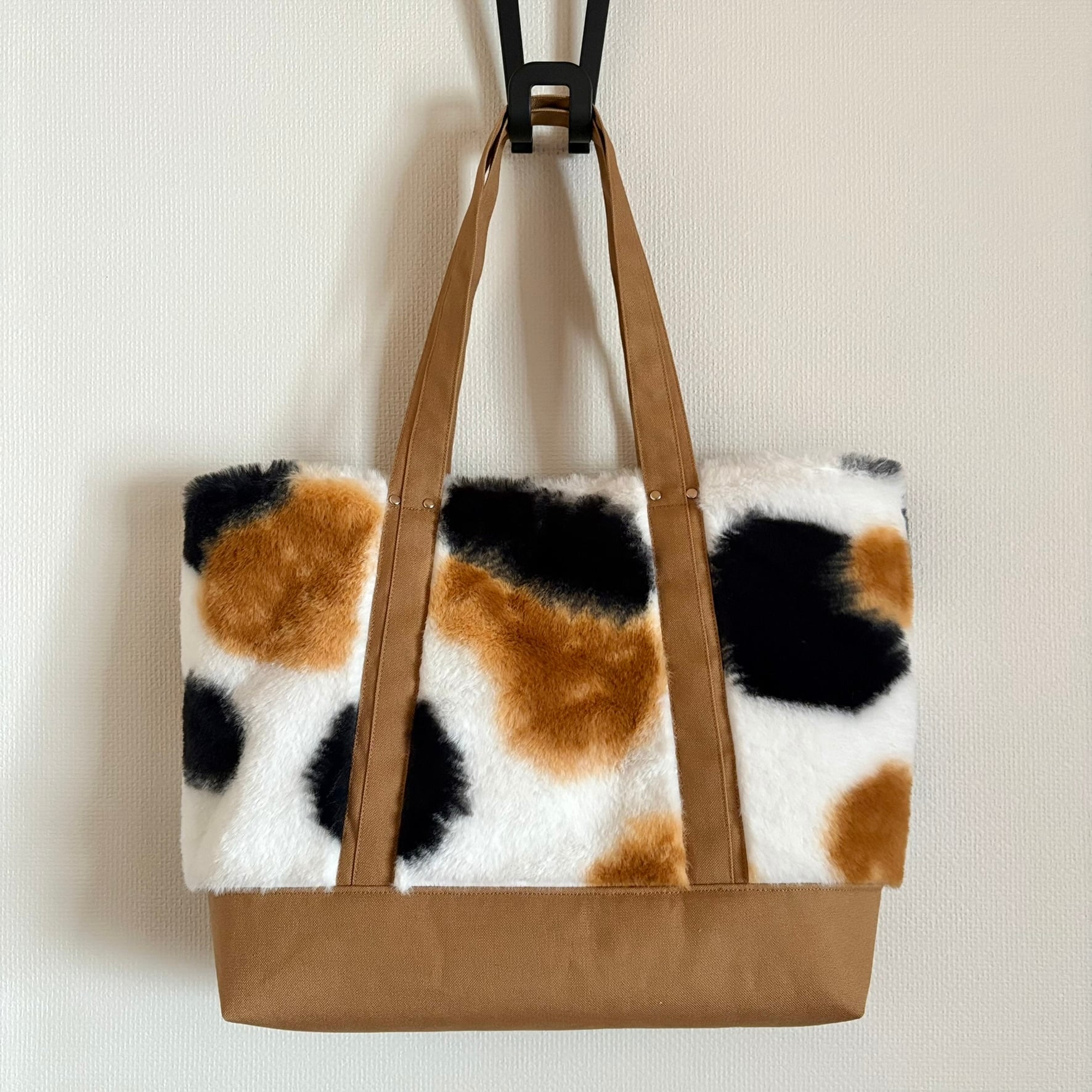 三毛柄のボア生地を使用したトートバッグです。