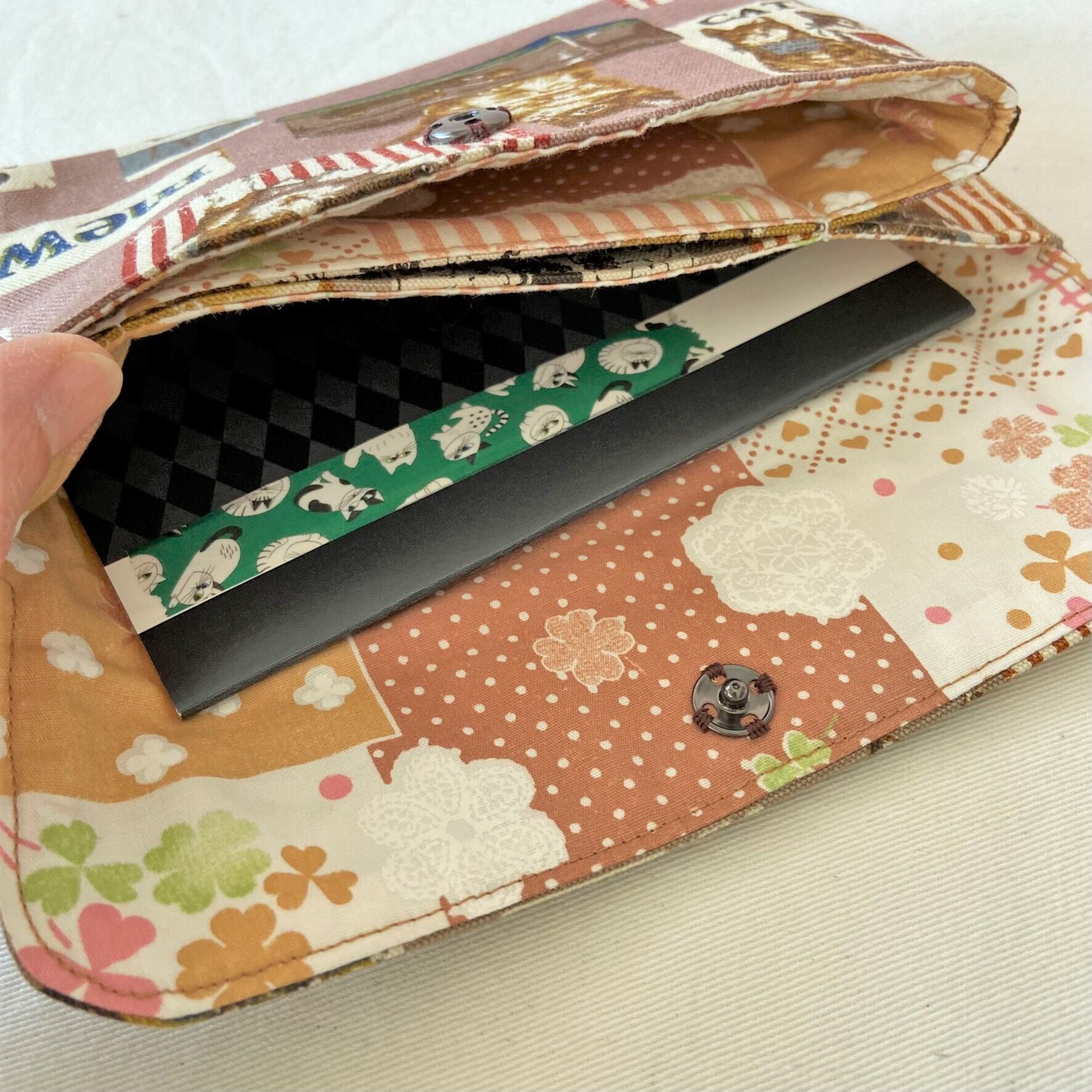真ん中の隠しポケットはちょうどカードが入るサイズなので通帳ポーチにぴったりです。