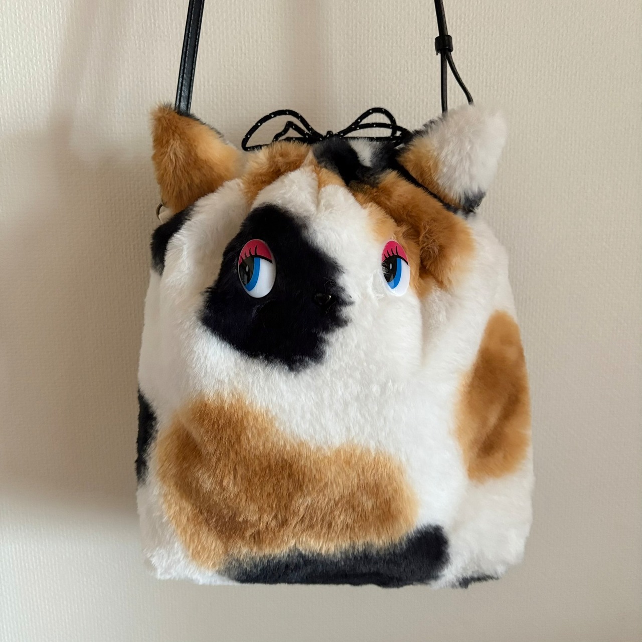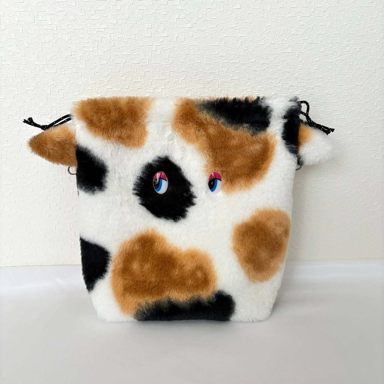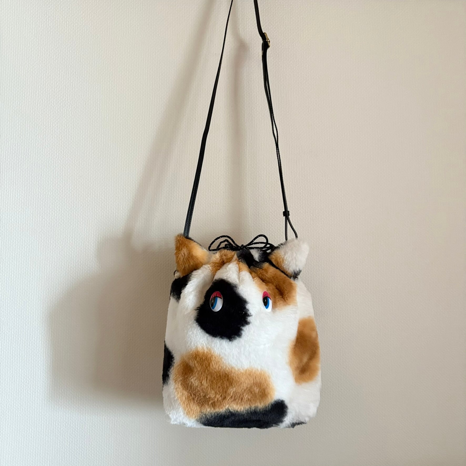 巾着をぎゅっと絞るとかわいいにゃんこが現れます。