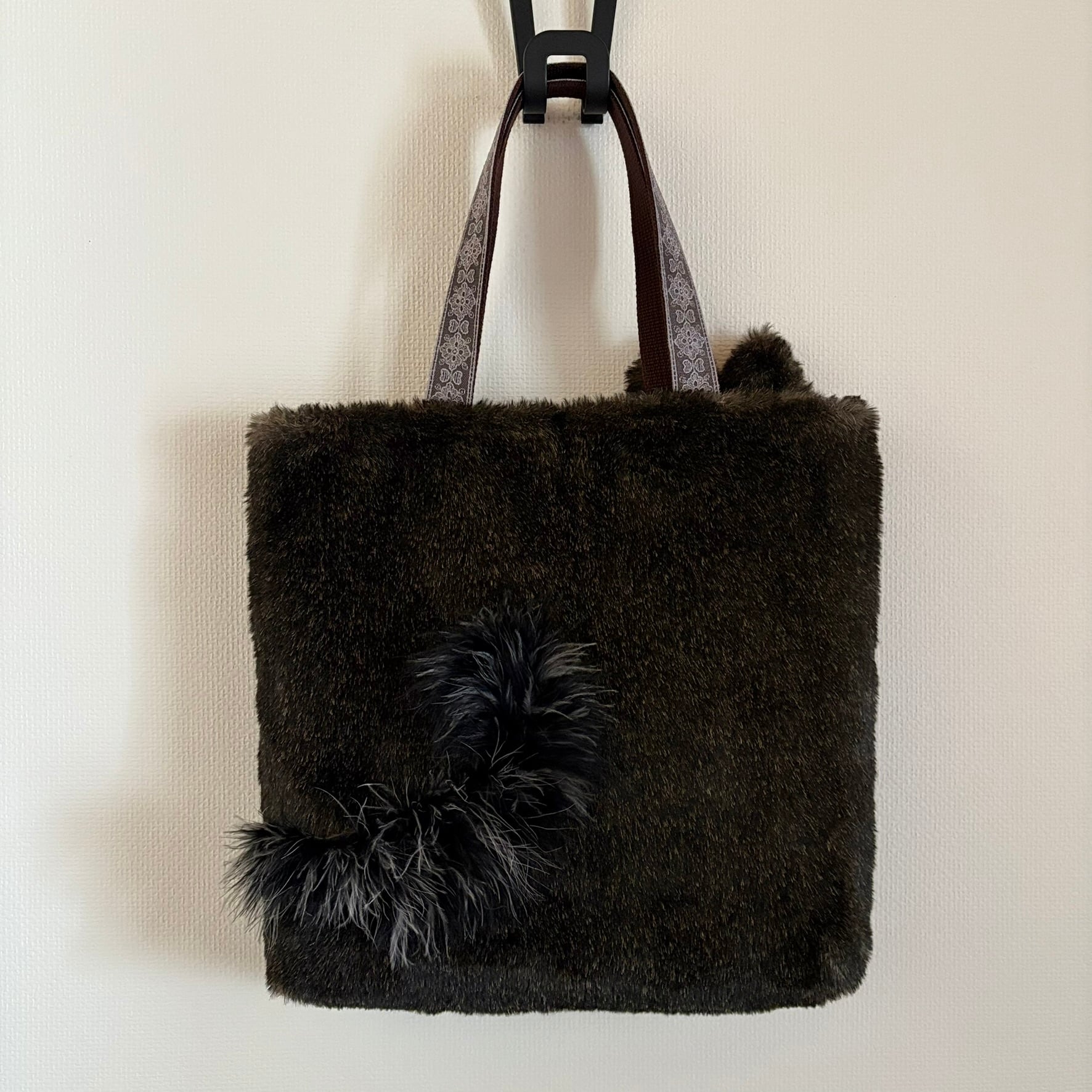毛足10㎜ほどのファー生地で、毛が密なのでもこもこの手触りです。