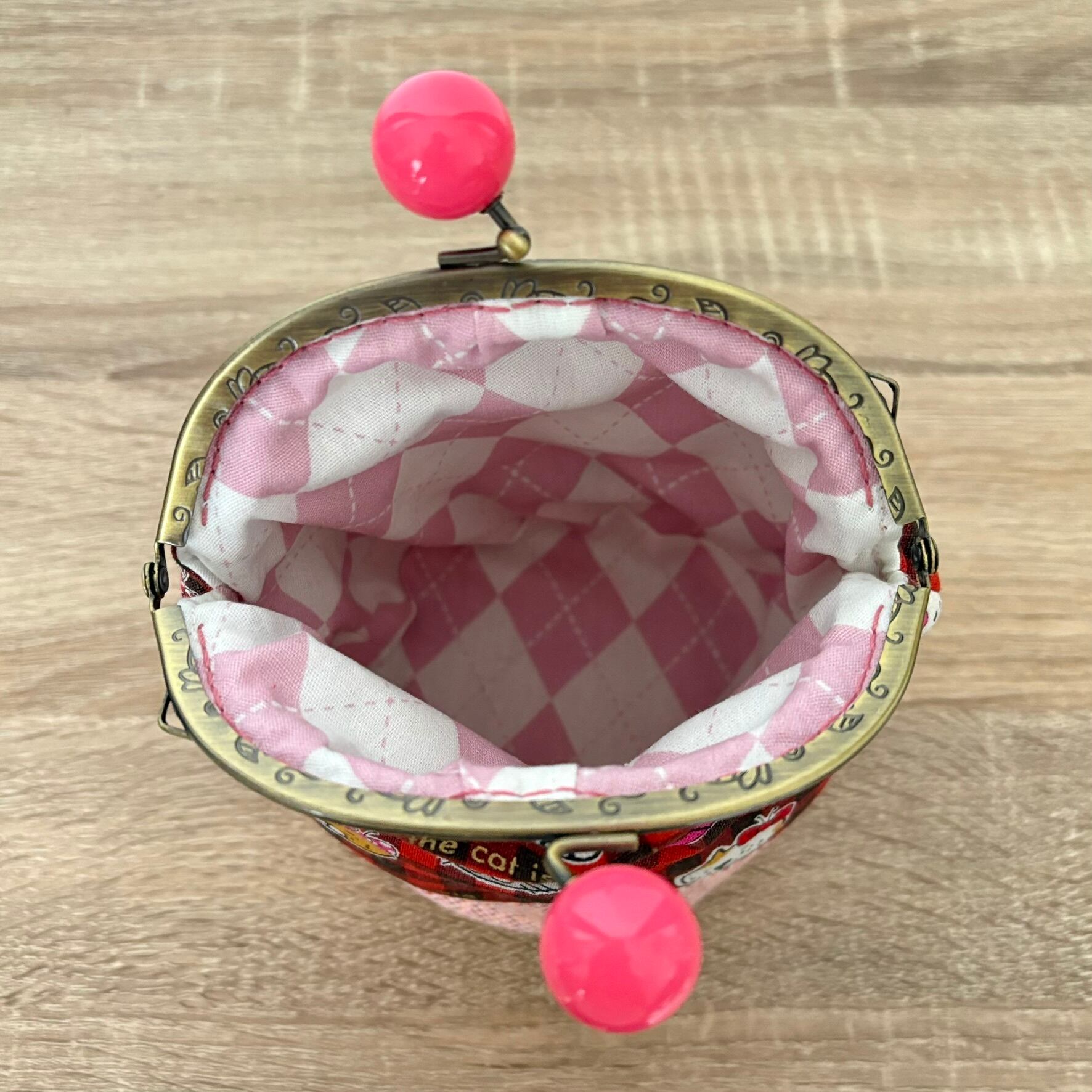 12.5㎝幅の丸型口金を使用したがま口ポーチです。