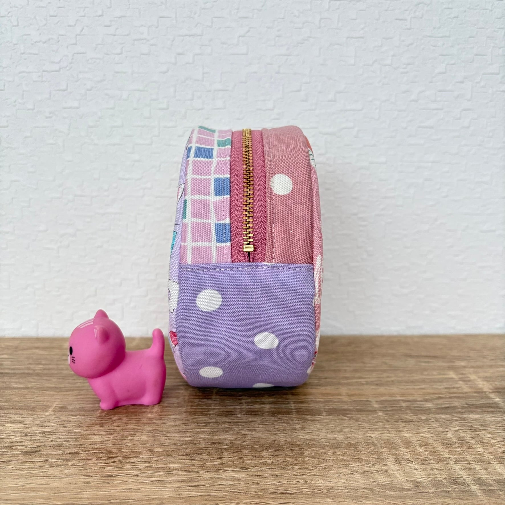 まちも数種類の柄布を合わせて楽しいポーチに仕上げました。