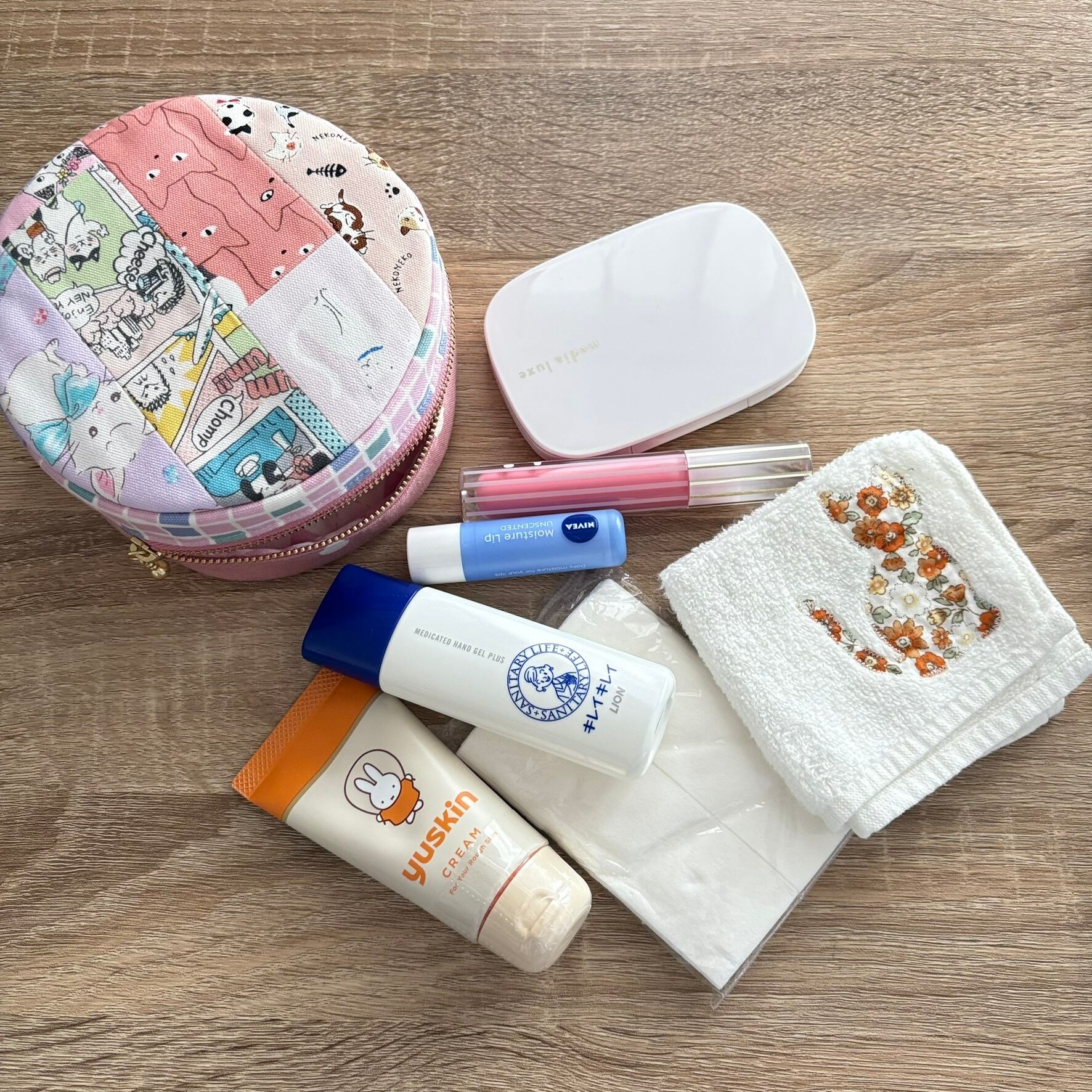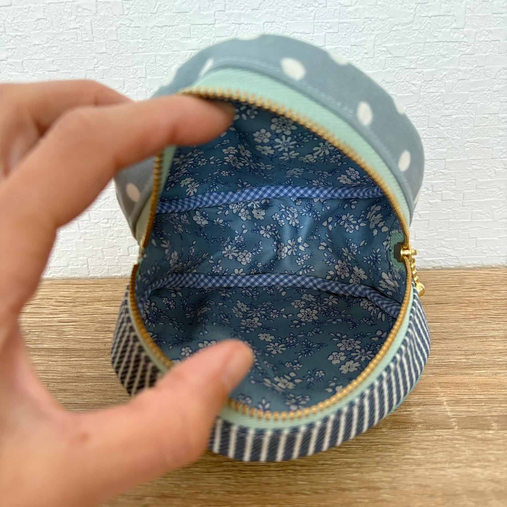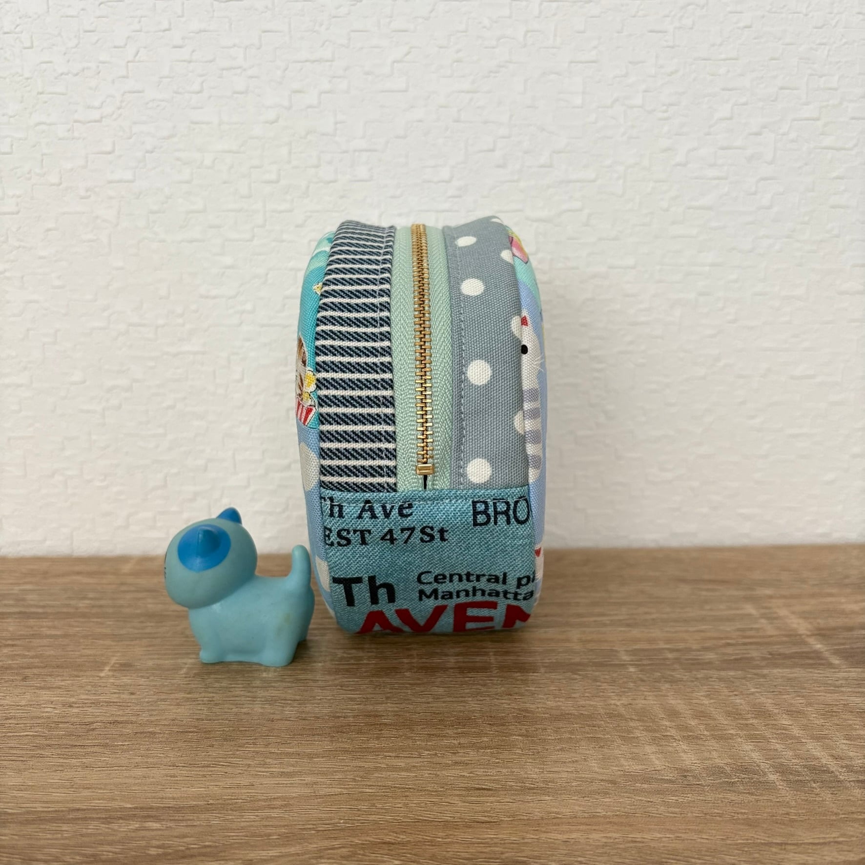 まちも数種類の柄布を合わせて楽しいポーチに仕上げました。