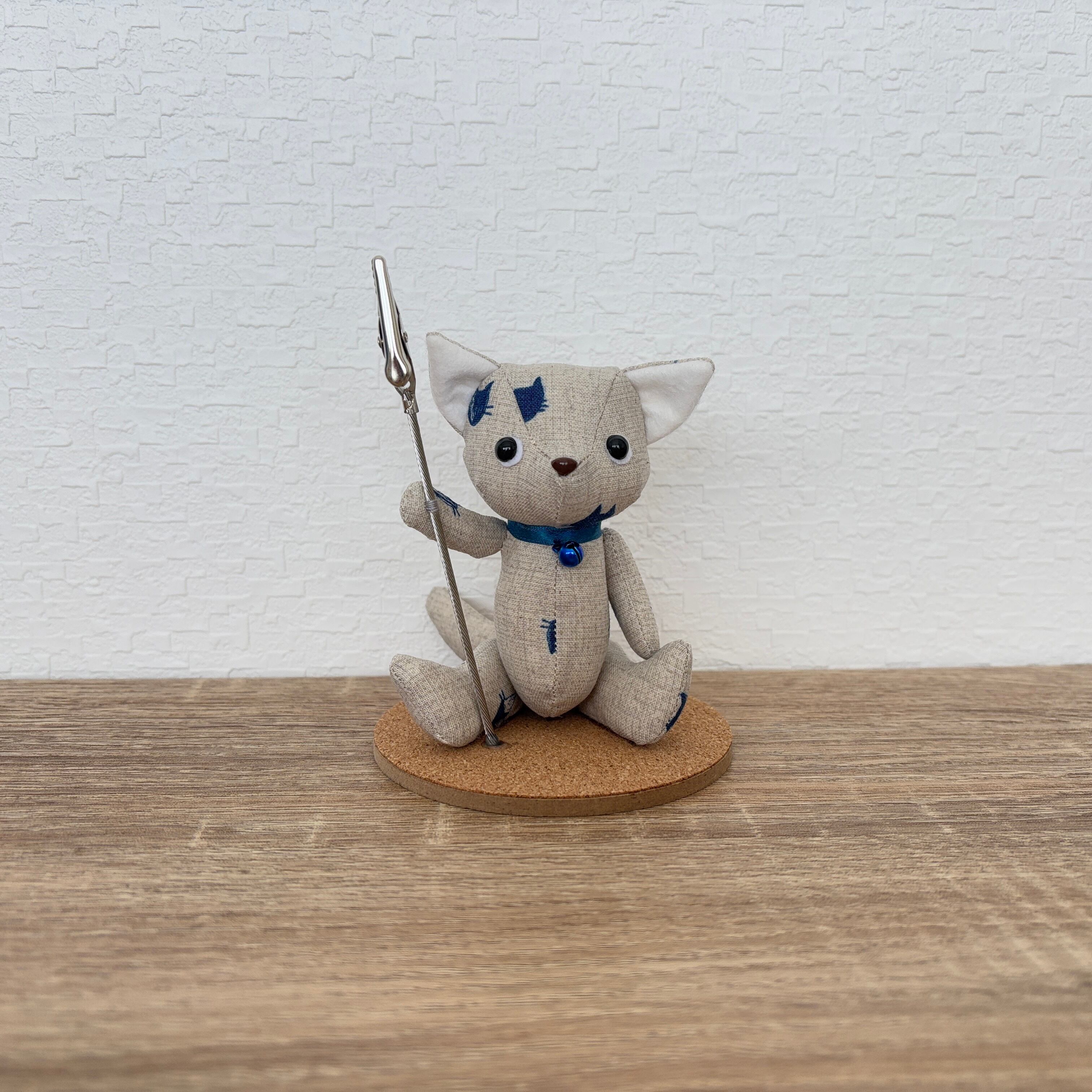 ねこちゃんのぬいぐるみ付きメモスタンドです。