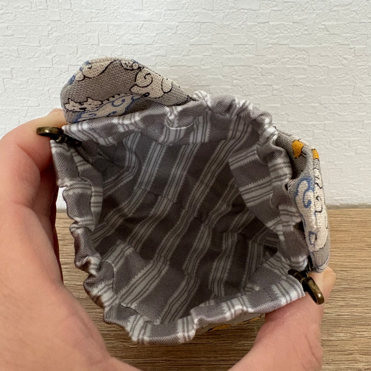にゃんこの形のバネ口ポーチです。
