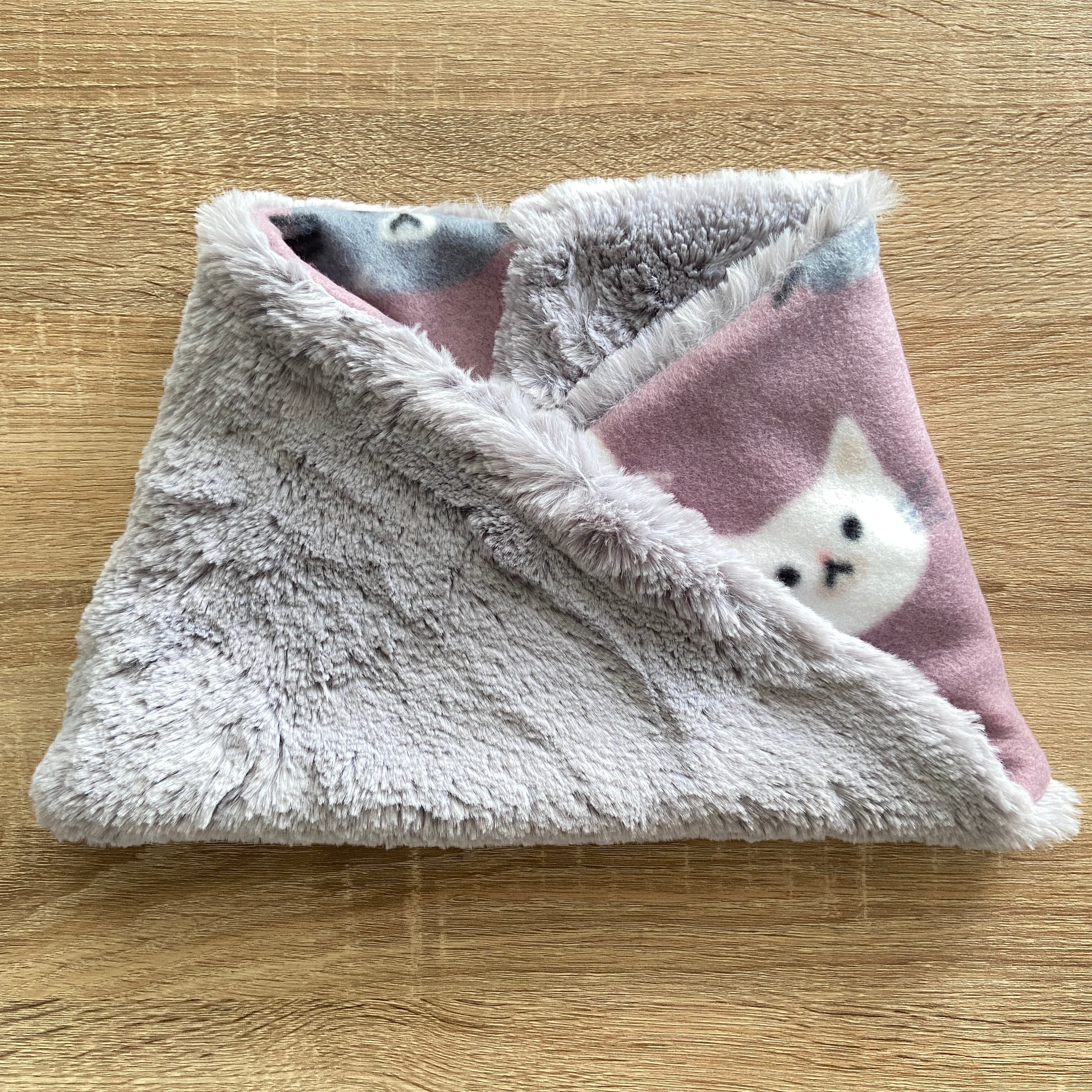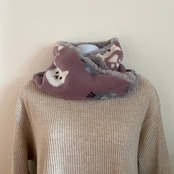 猫柄フリース生地と肌触りの良いソフトボアを合わせたネックウォーマーです。