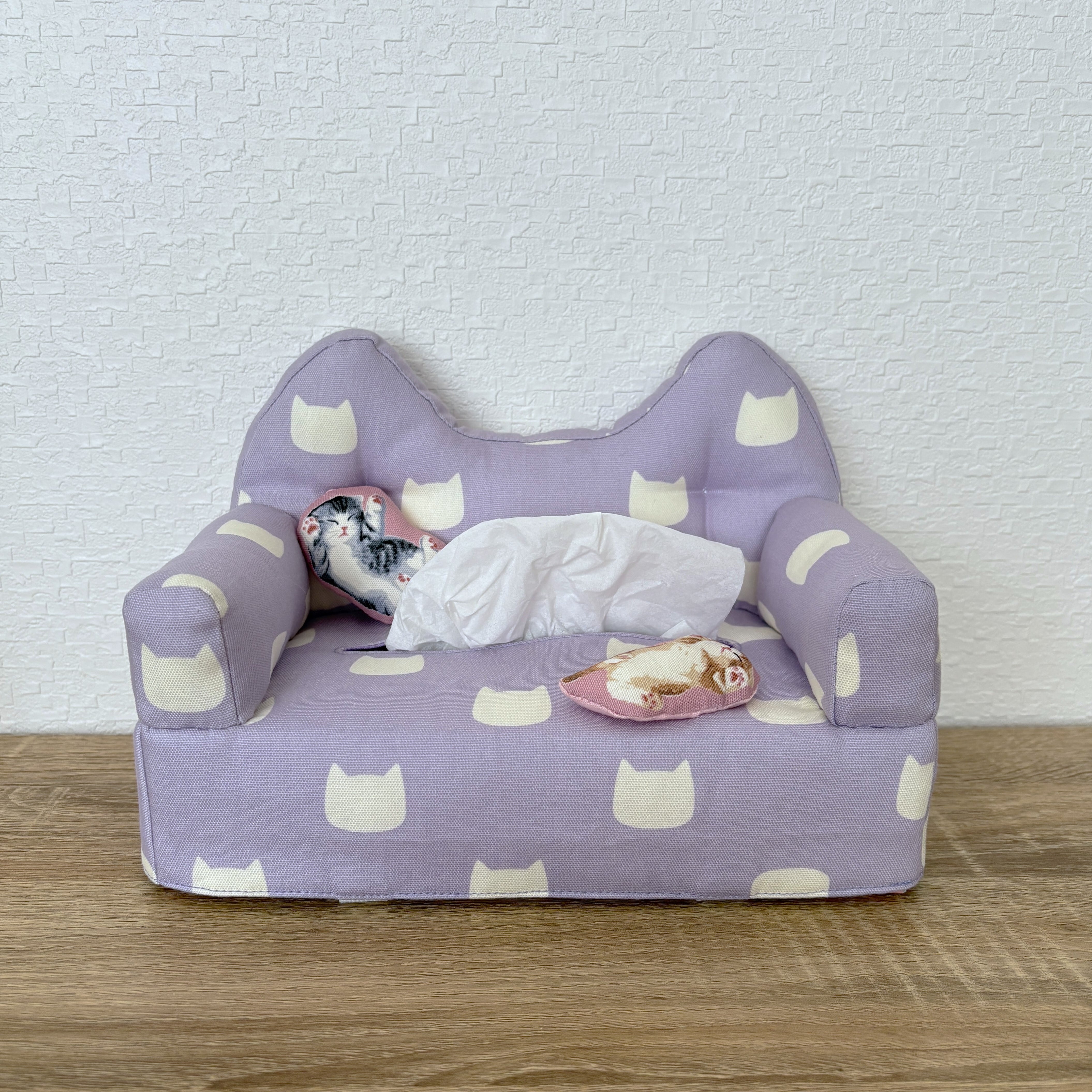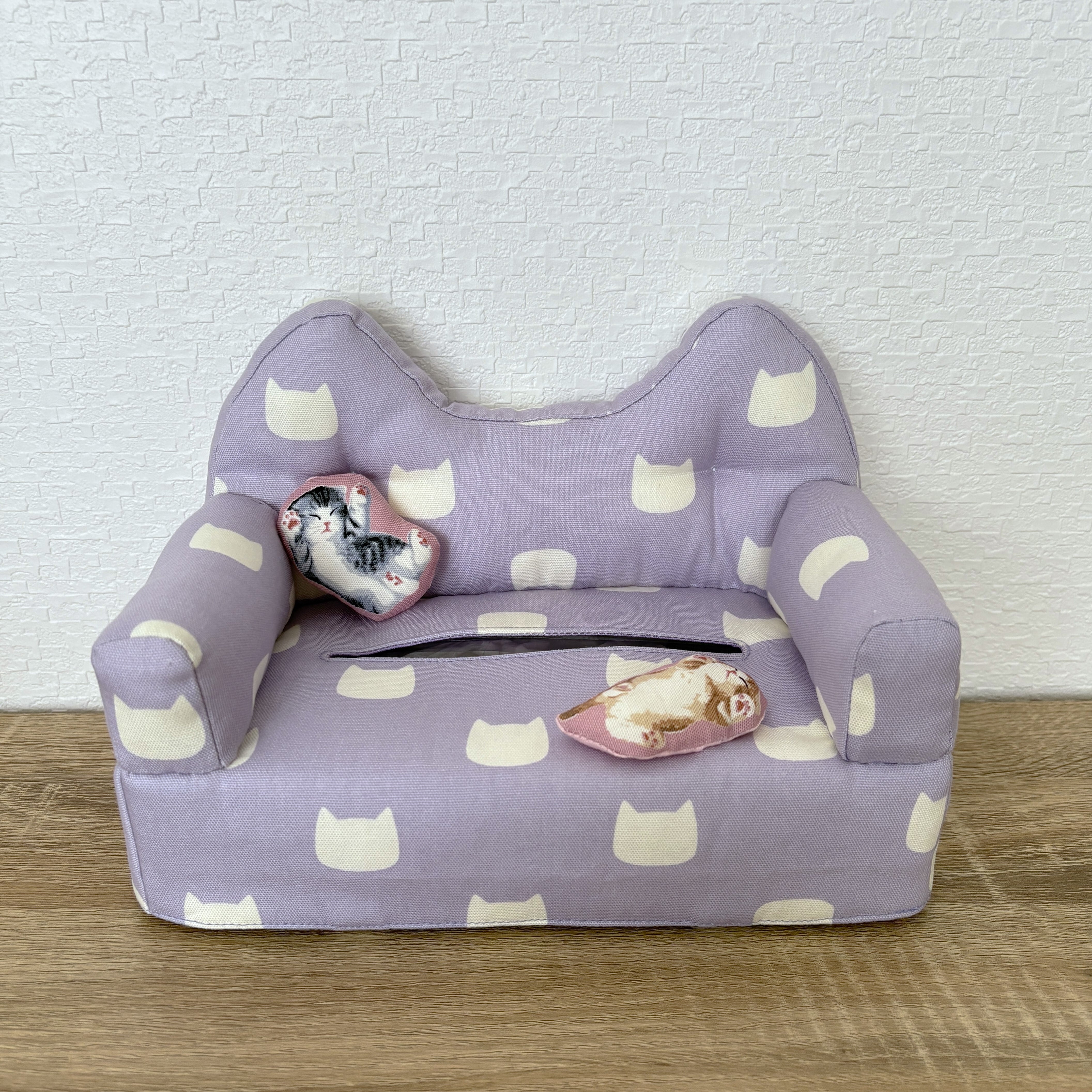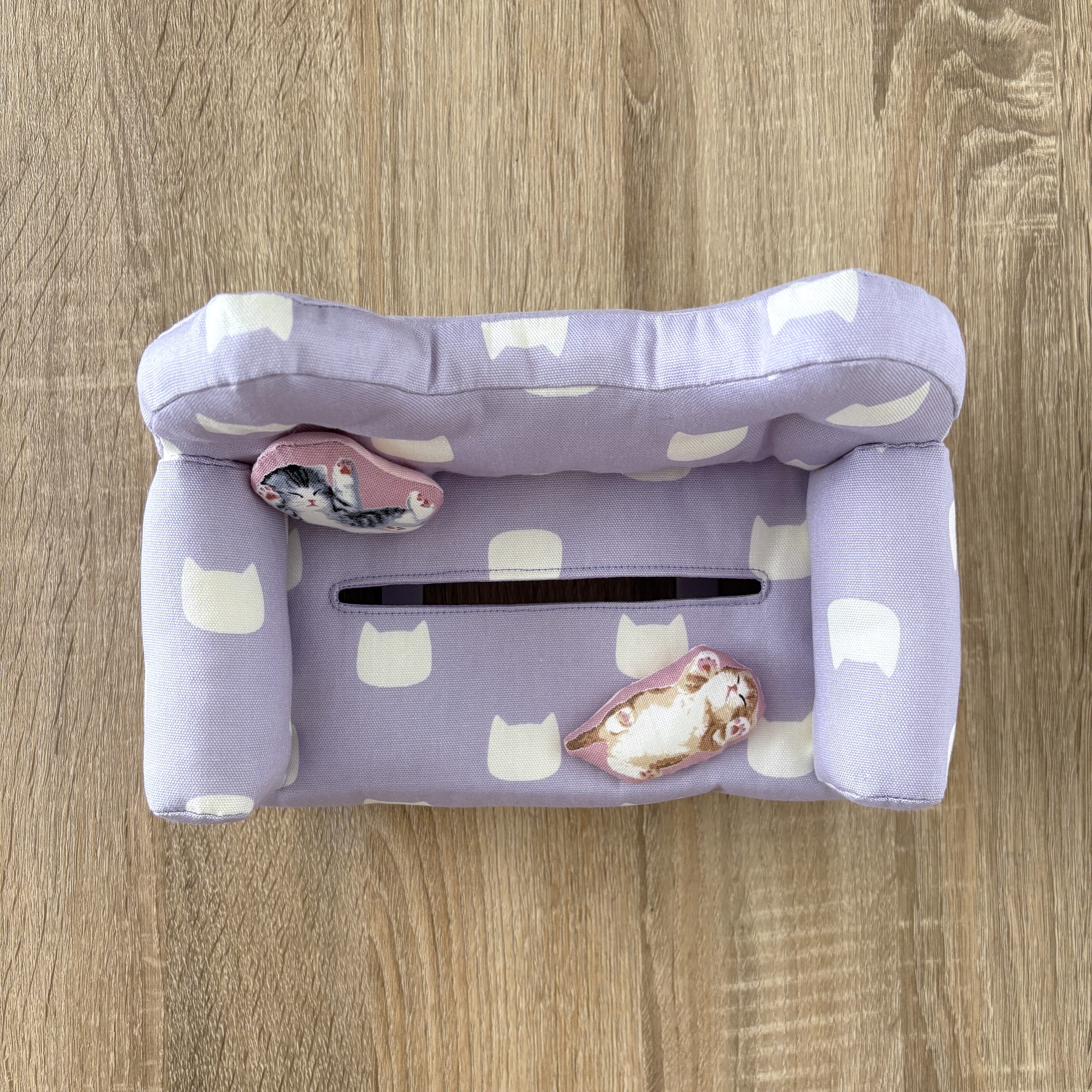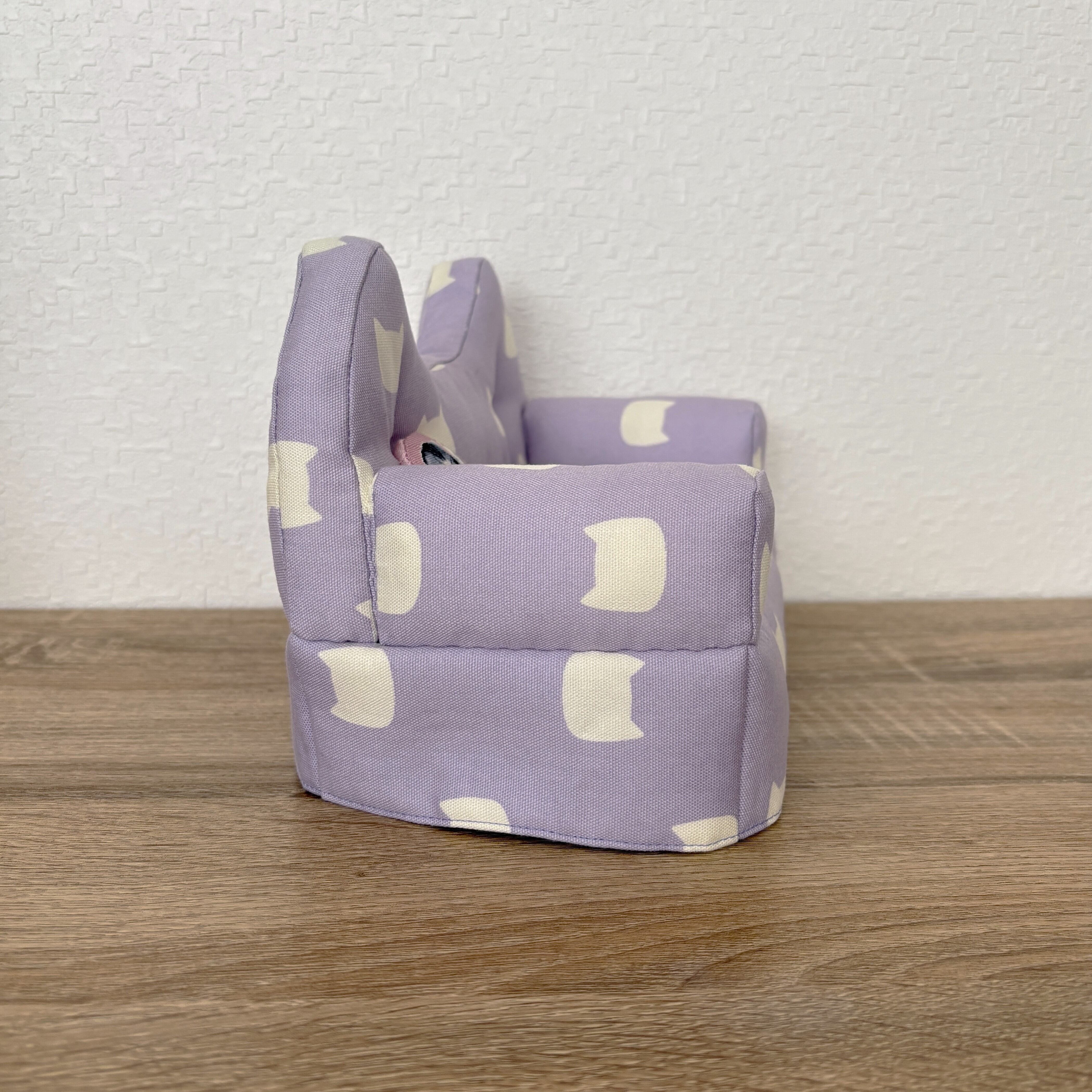 猫柄生地を使用し、背もたれもにゃんこ型になっています。