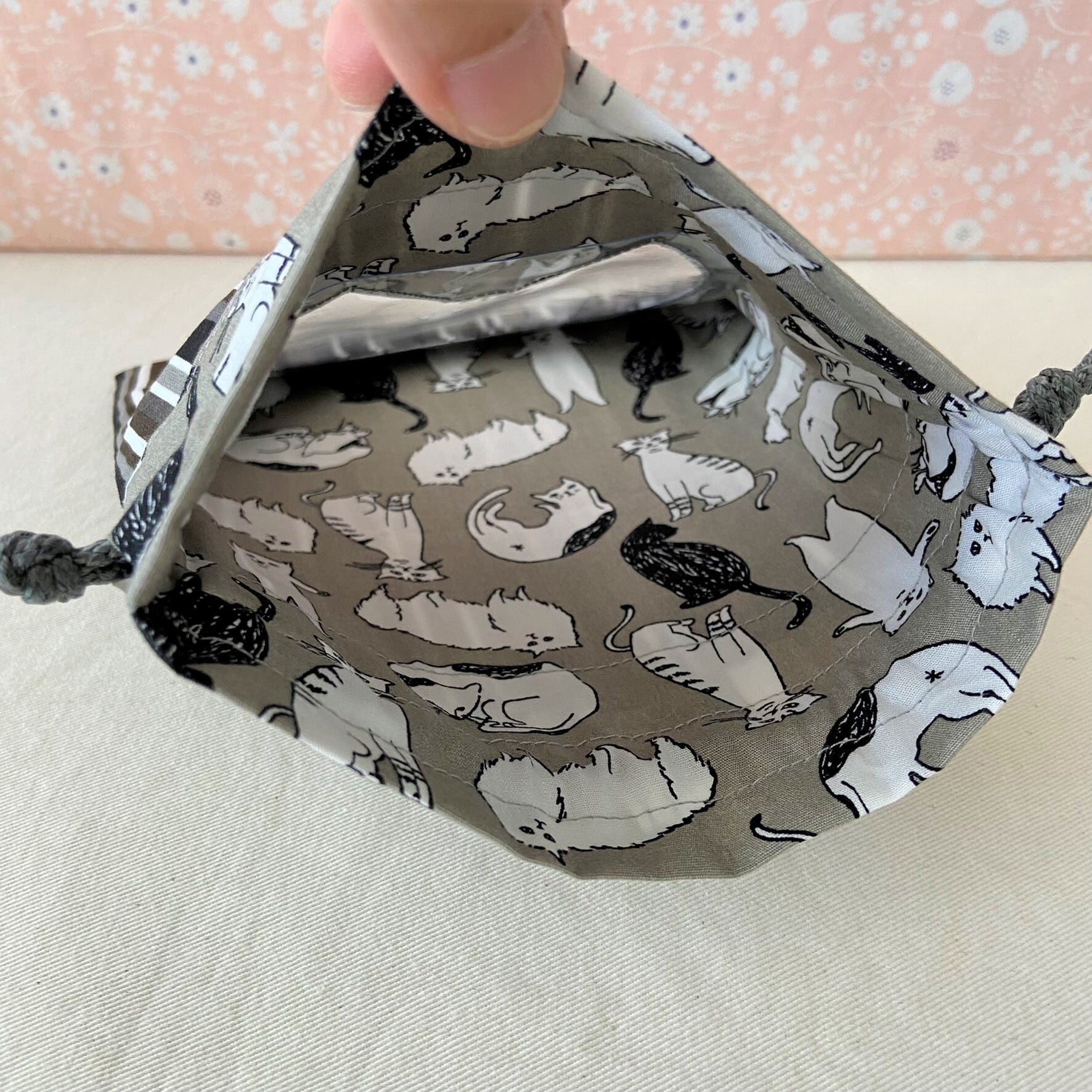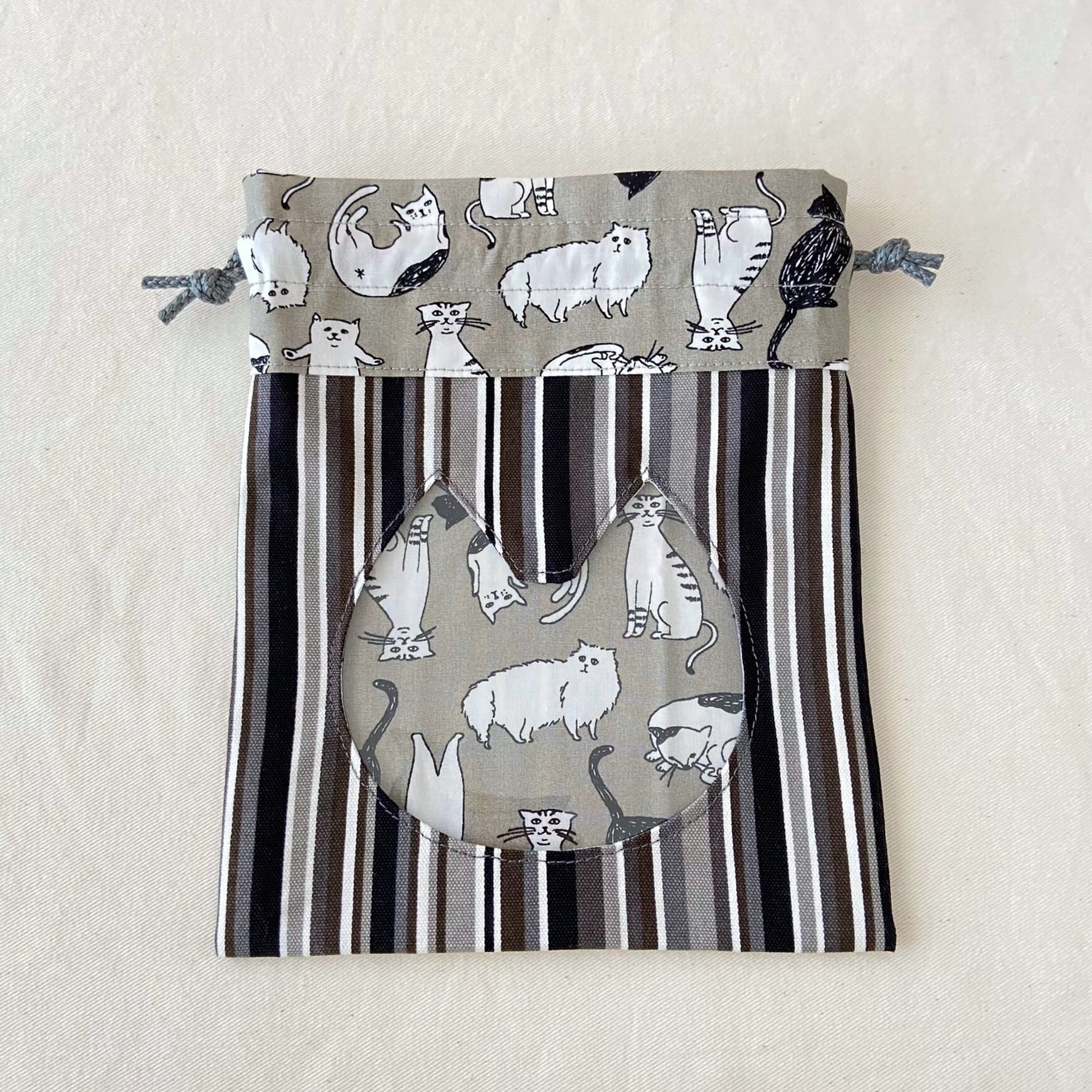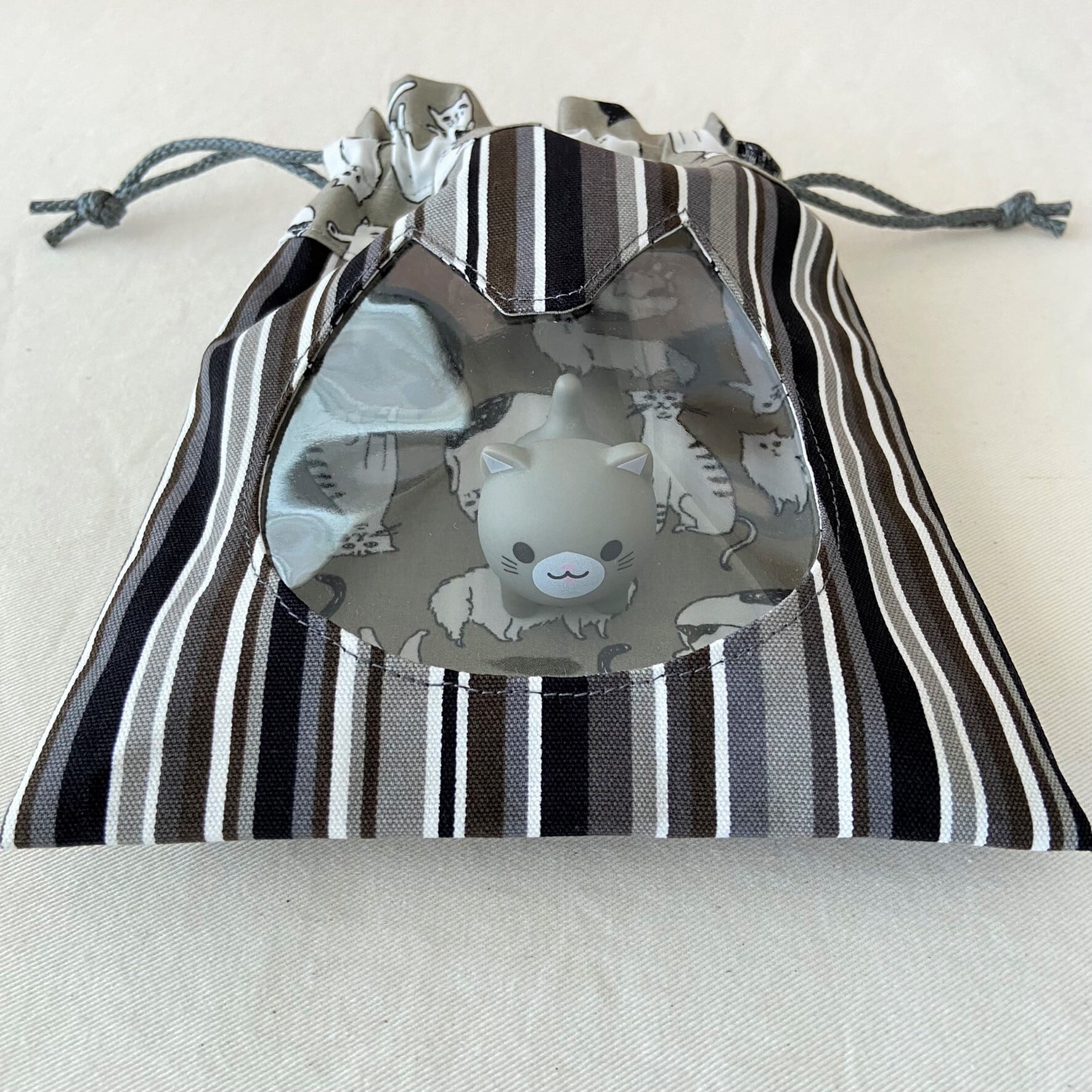 内布に猫柄布を使用していますので、透明ビニールの窓からネコちゃんが見えます。