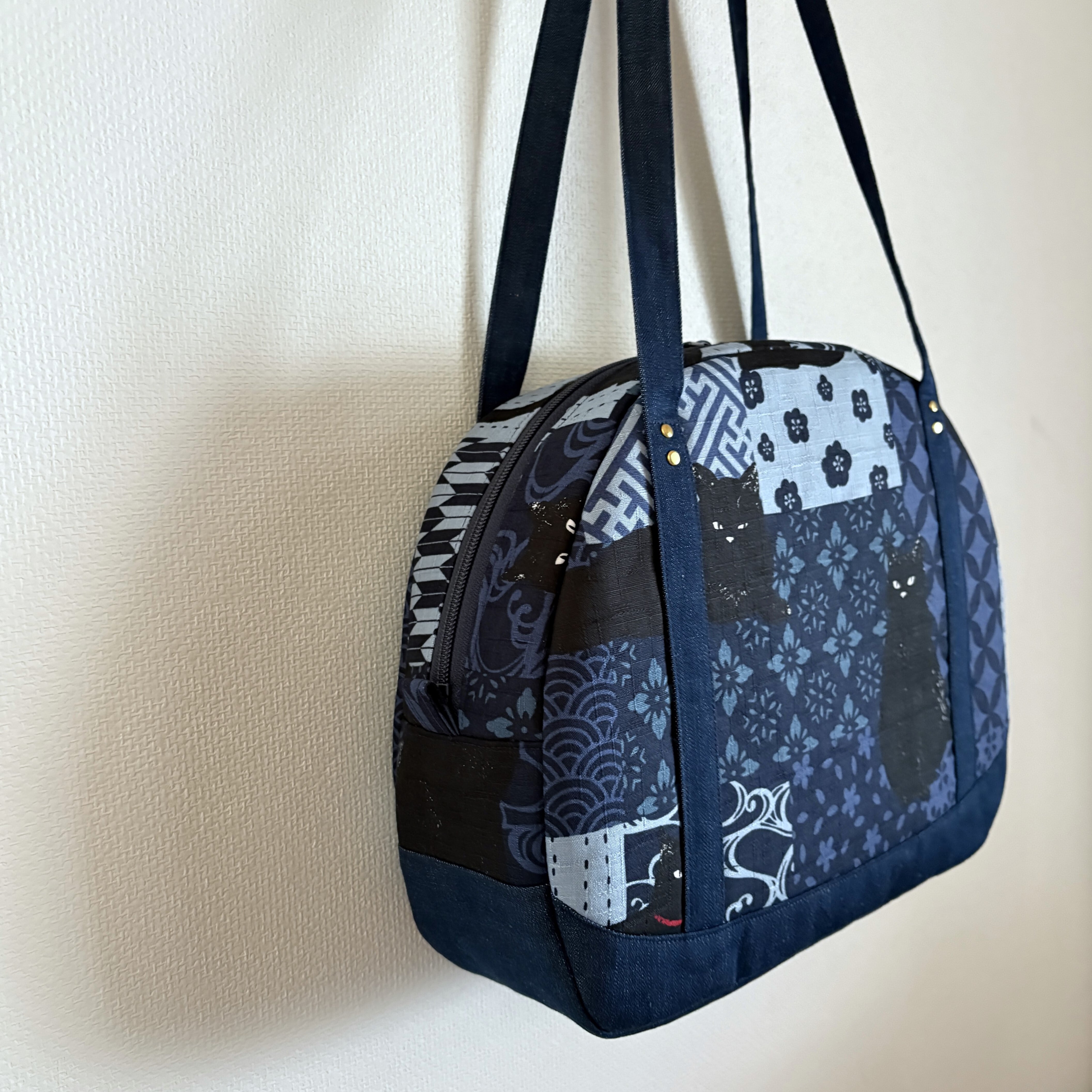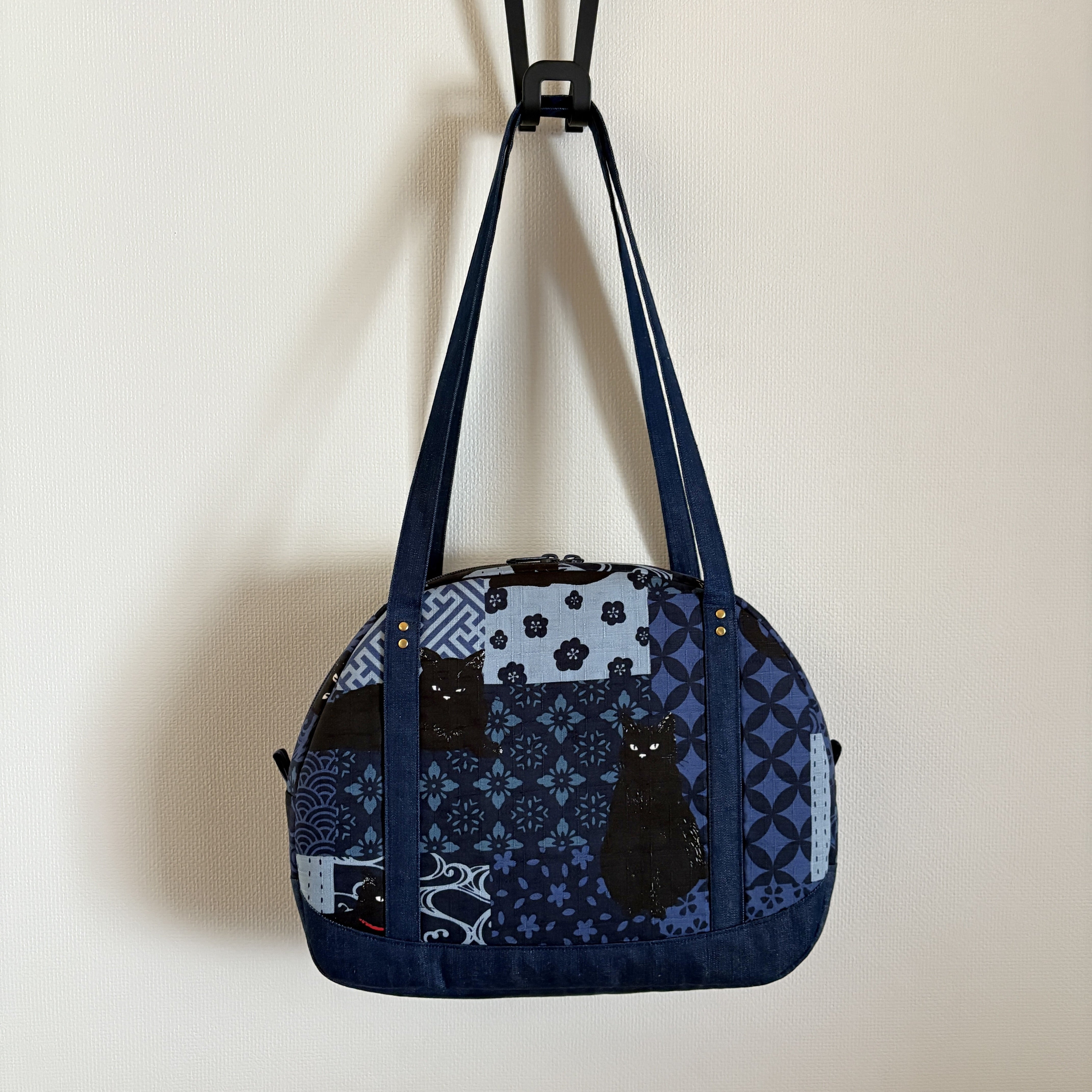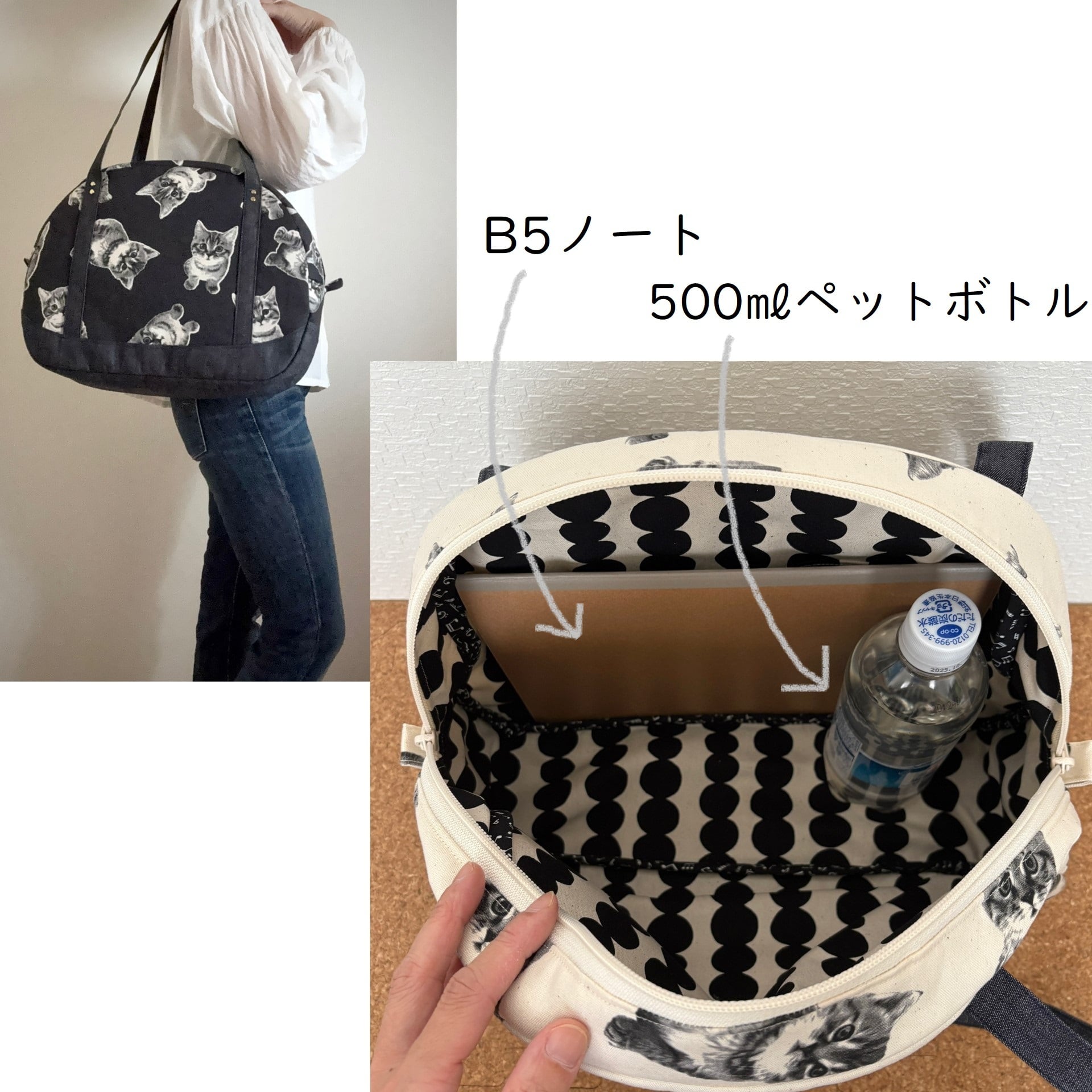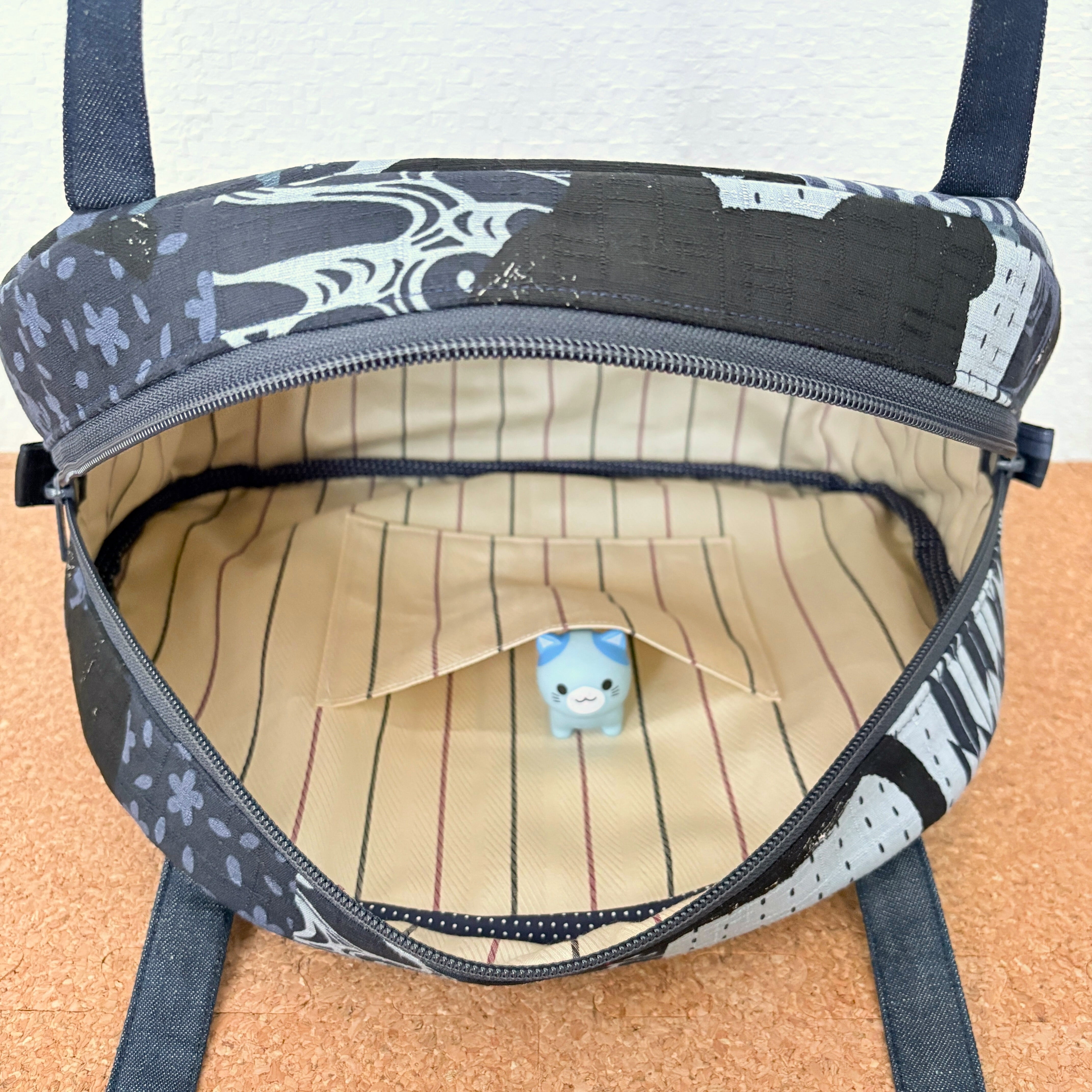 長めの持ち手を付けたので、肩から提げたままで中身を取り出せます。