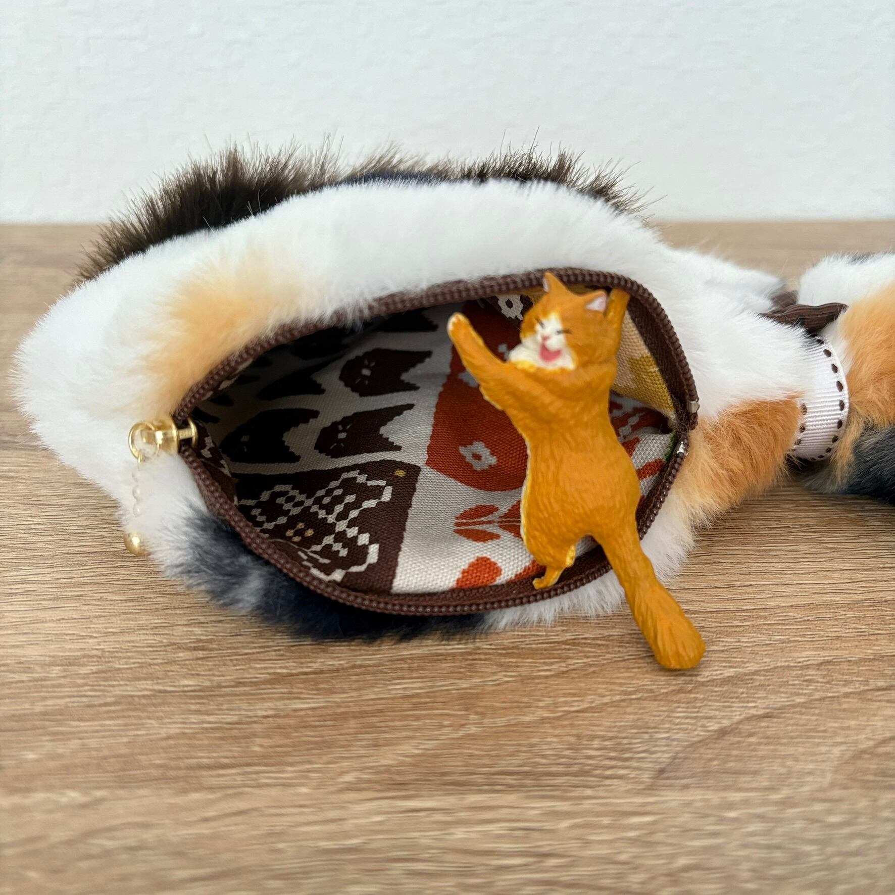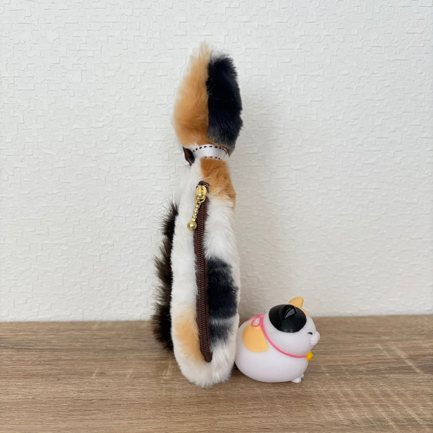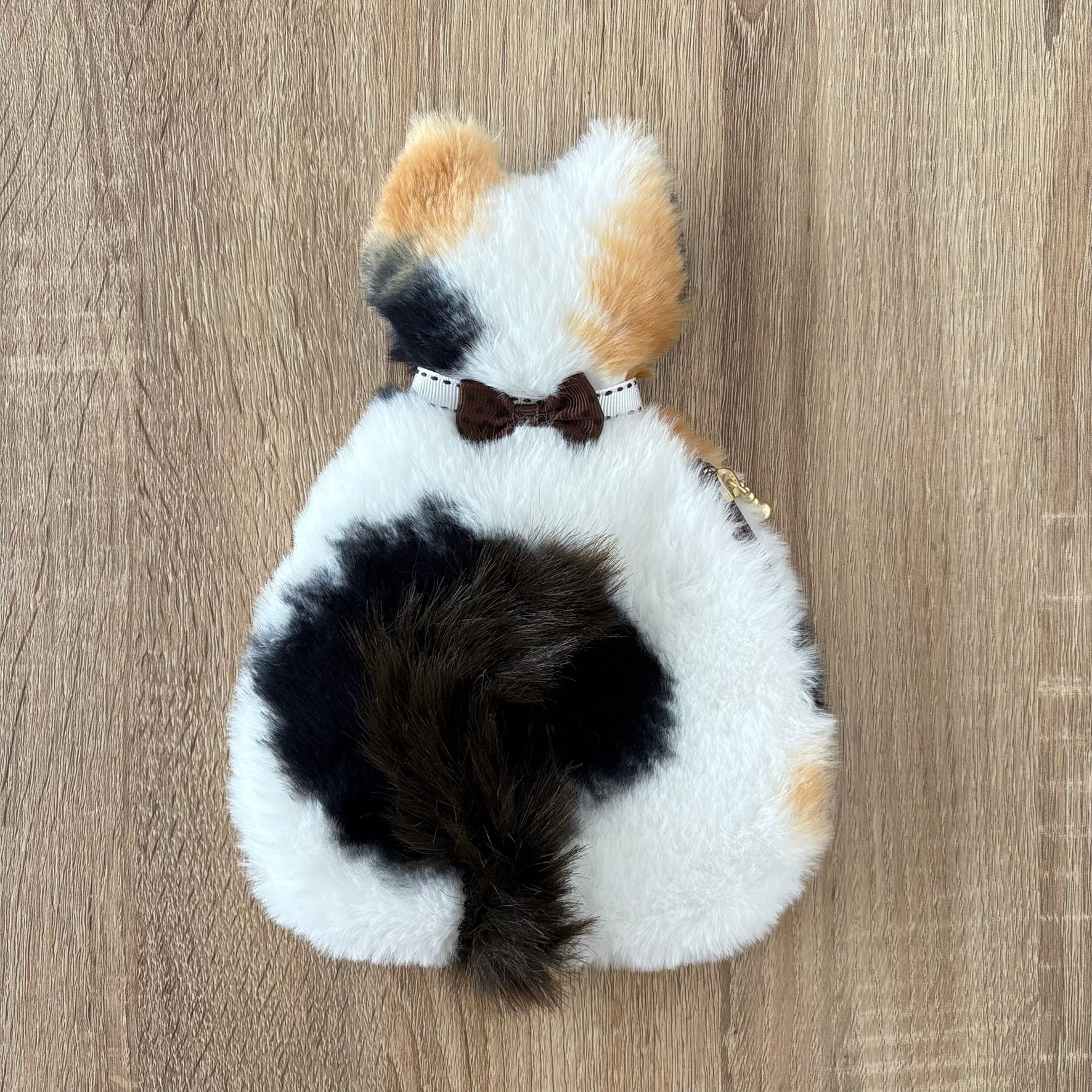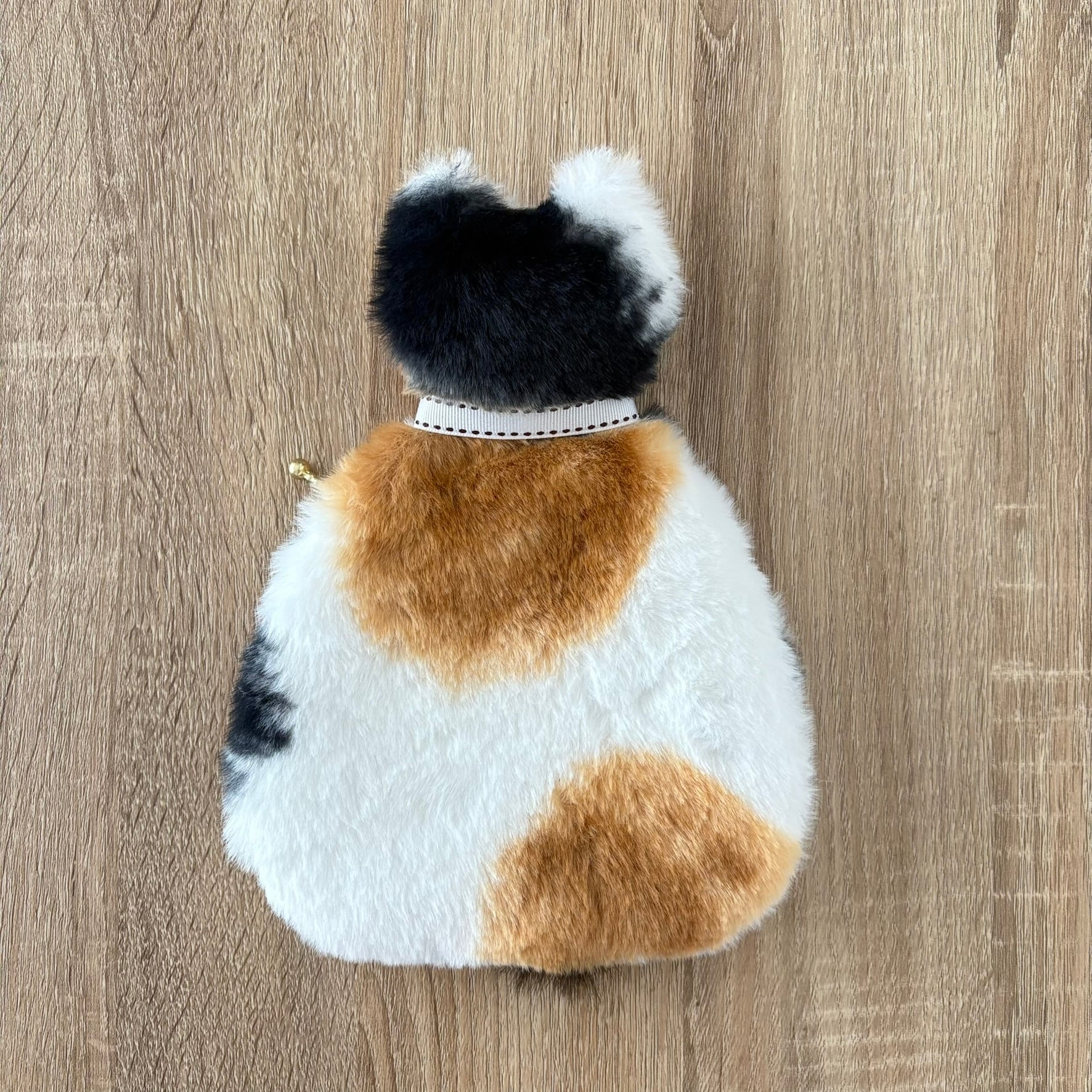 ファー生地を使ったねこちゃんの後ろ姿のポーチです。