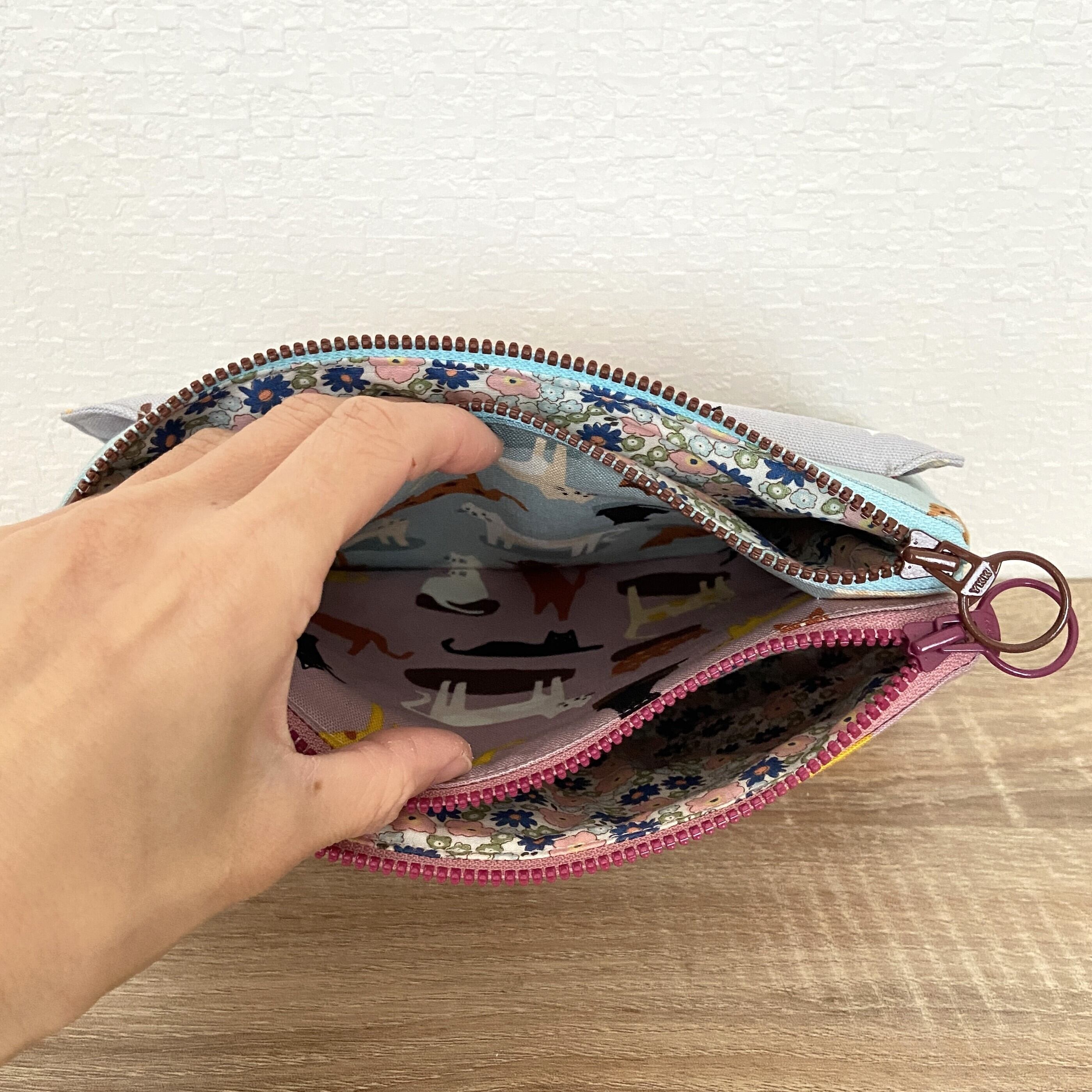 20㎝ファスナーを2本使ったポーチです。