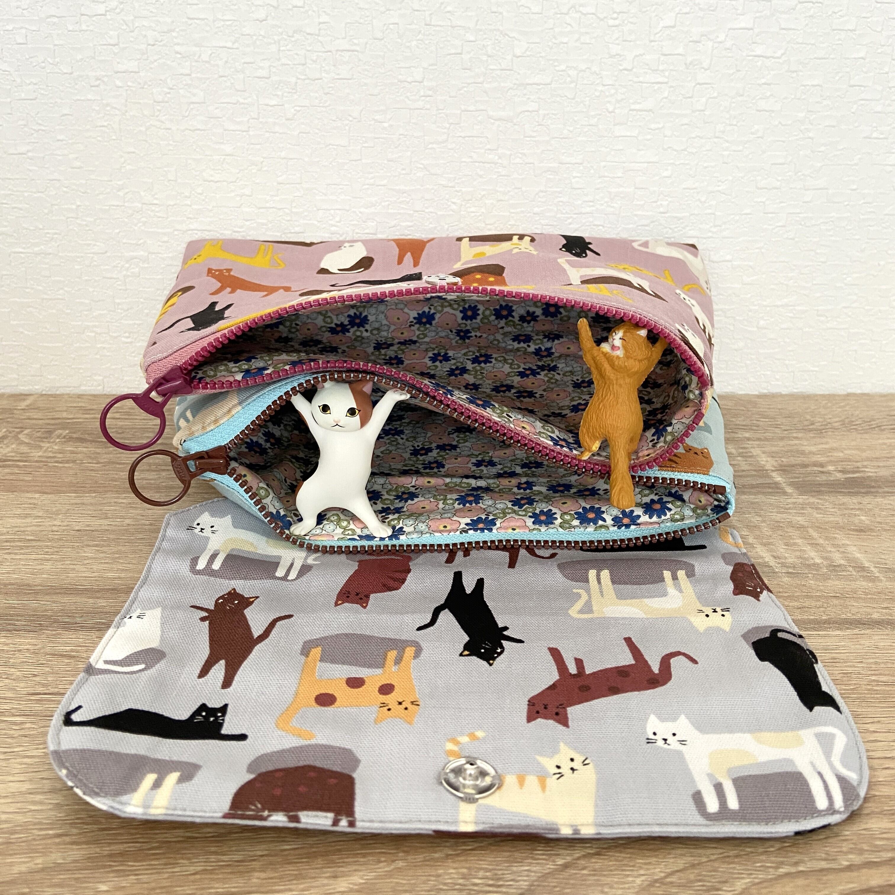 3つぽっけのWファスナーポーチ