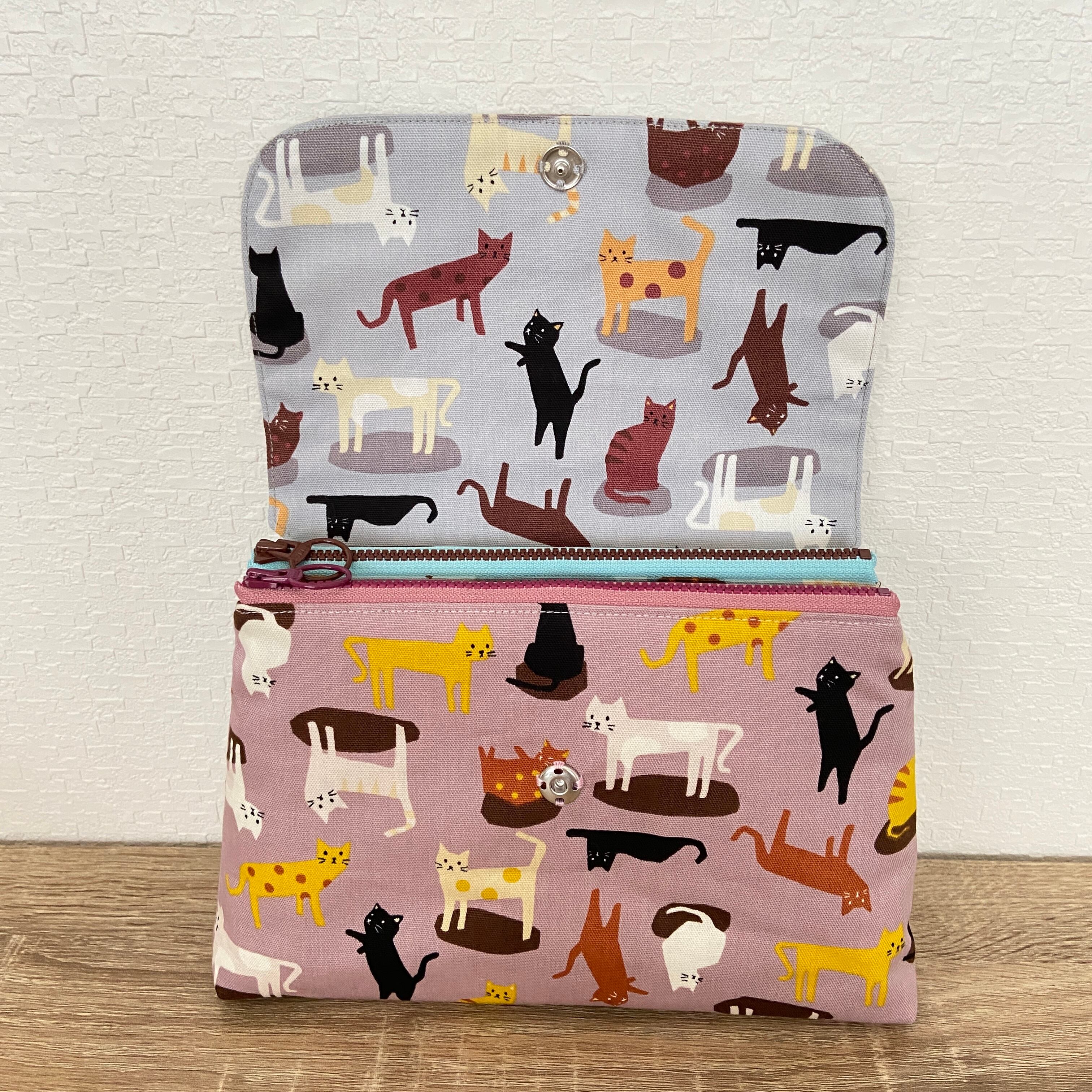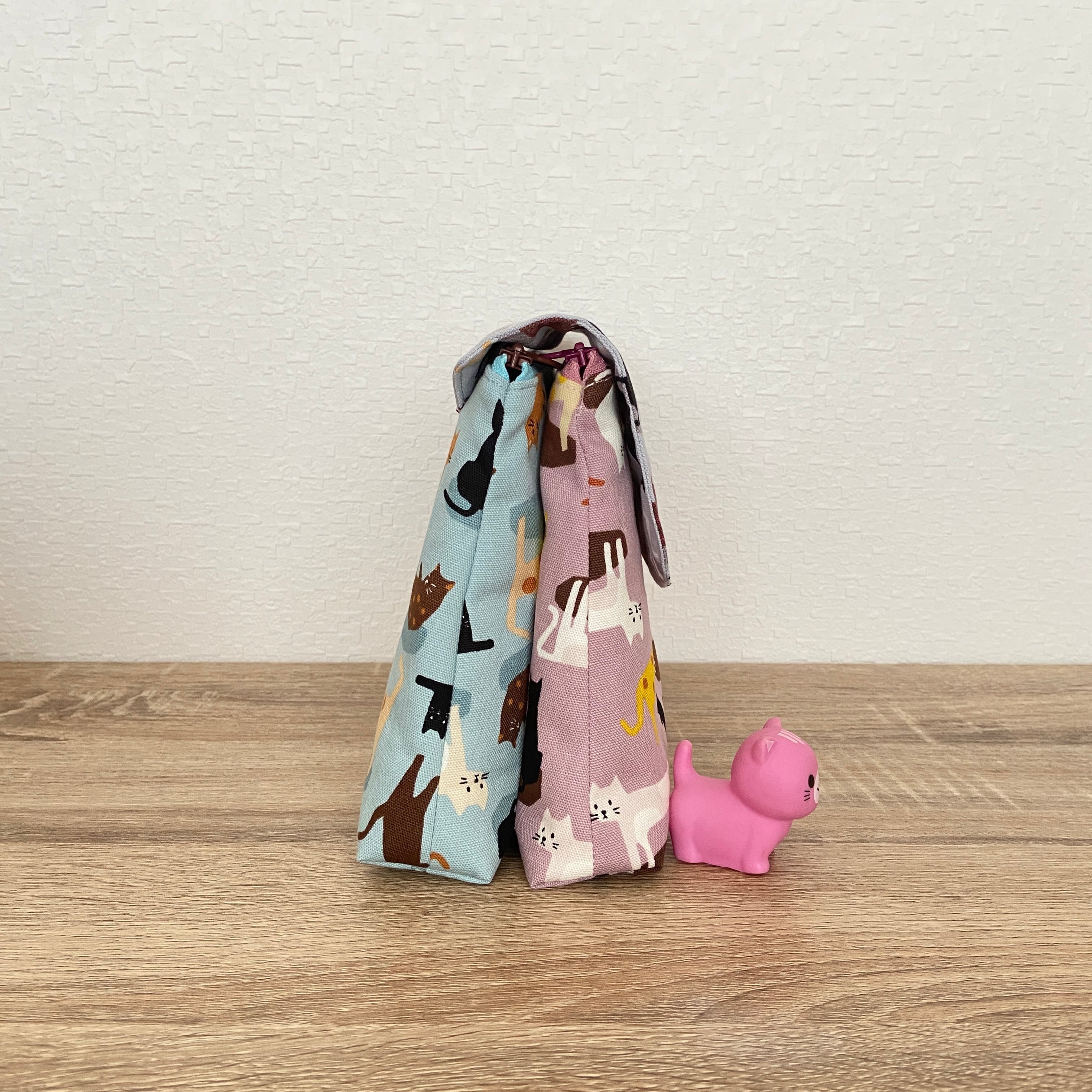 色違いの猫柄布を組み合わせて作りました。