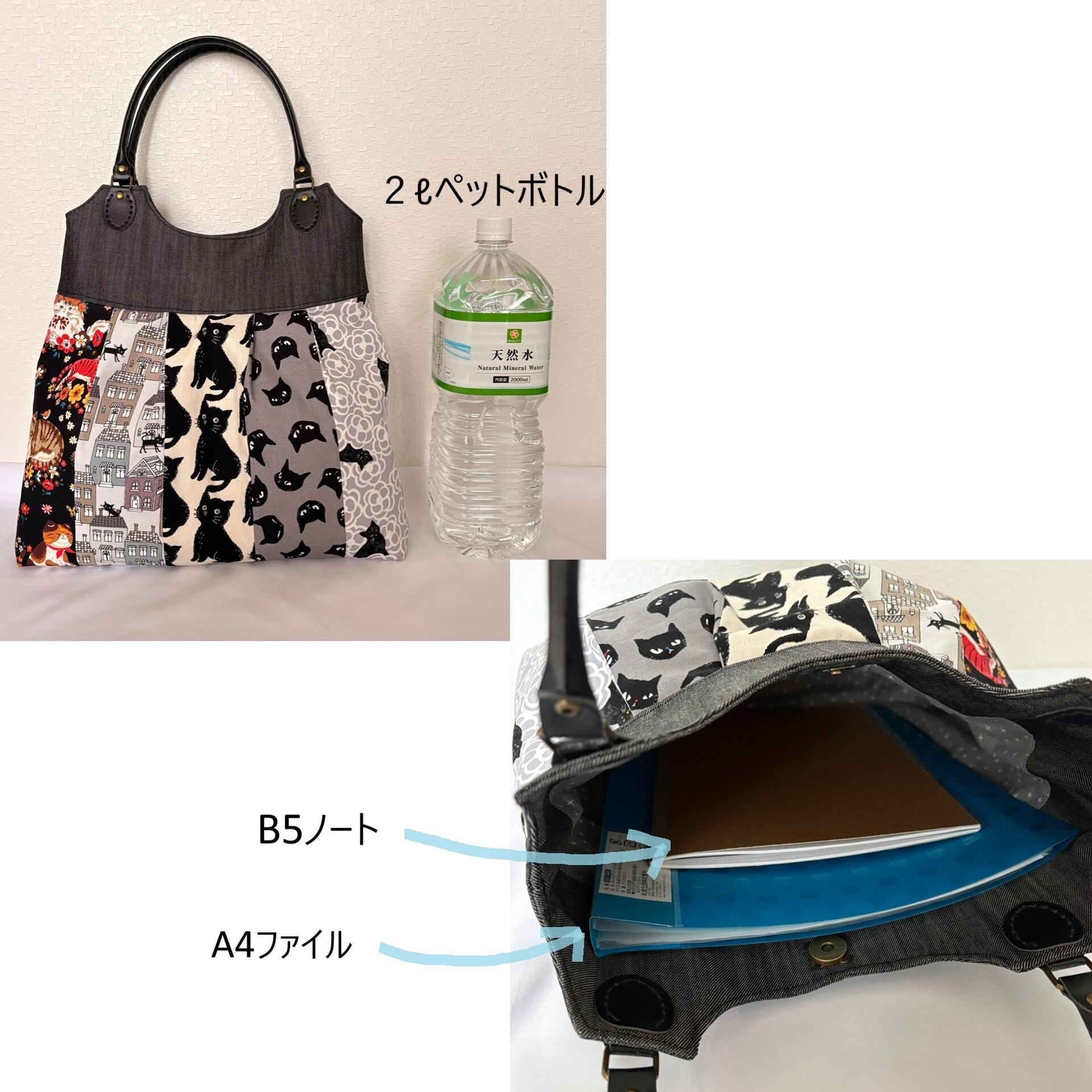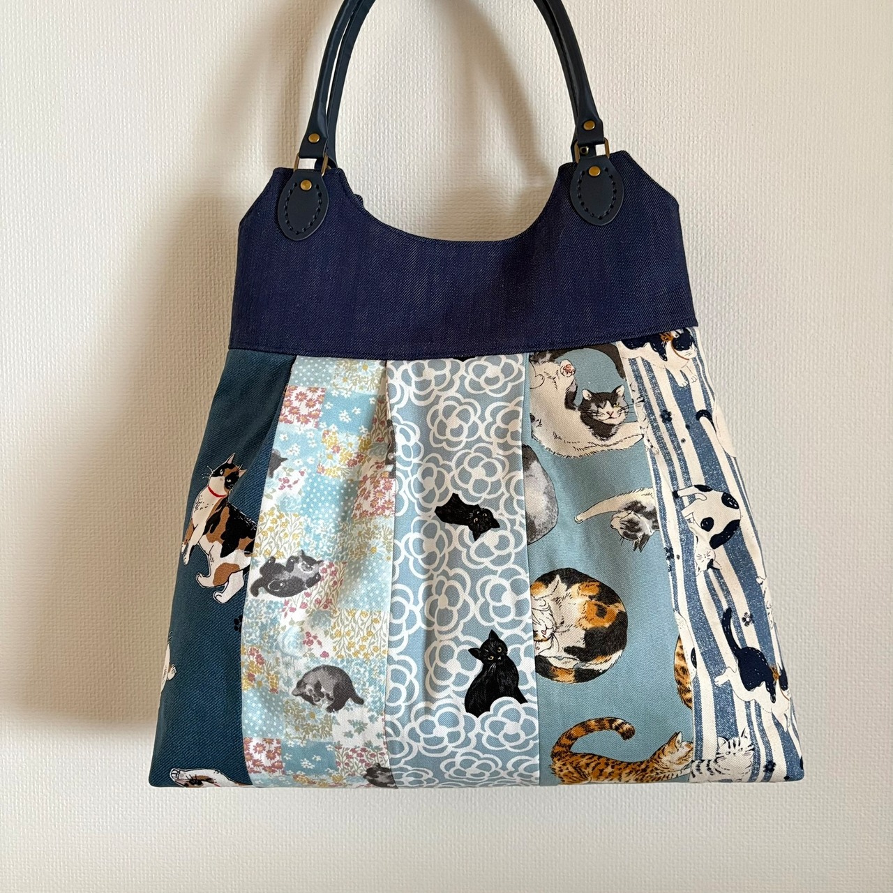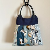 5種類の猫柄生地を合わせて作ったバッグです。