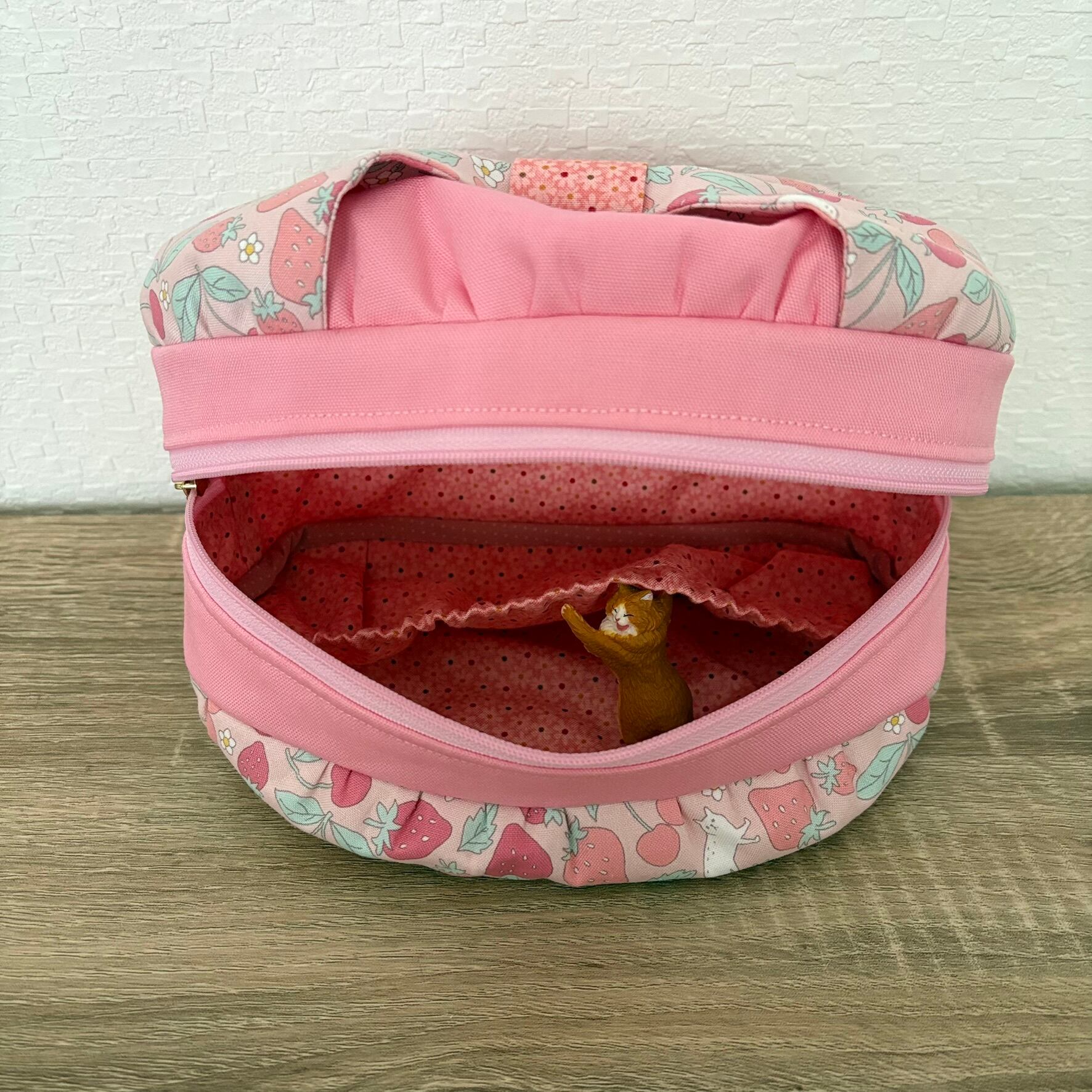 裏面にはリボンと同じ猫柄生地を使用しています。