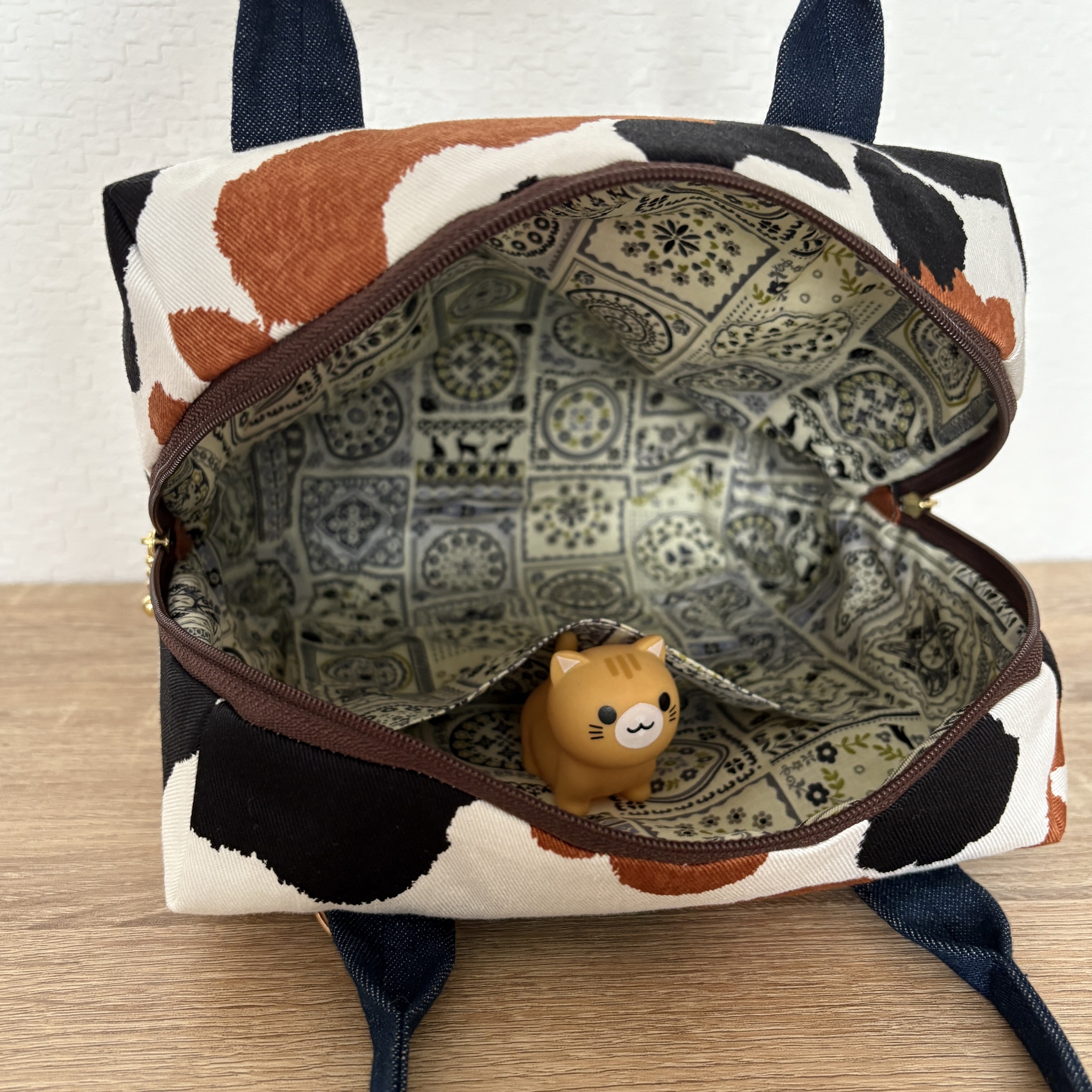 40㎝の両開きファスナーを使用していますので、大きく開きます。