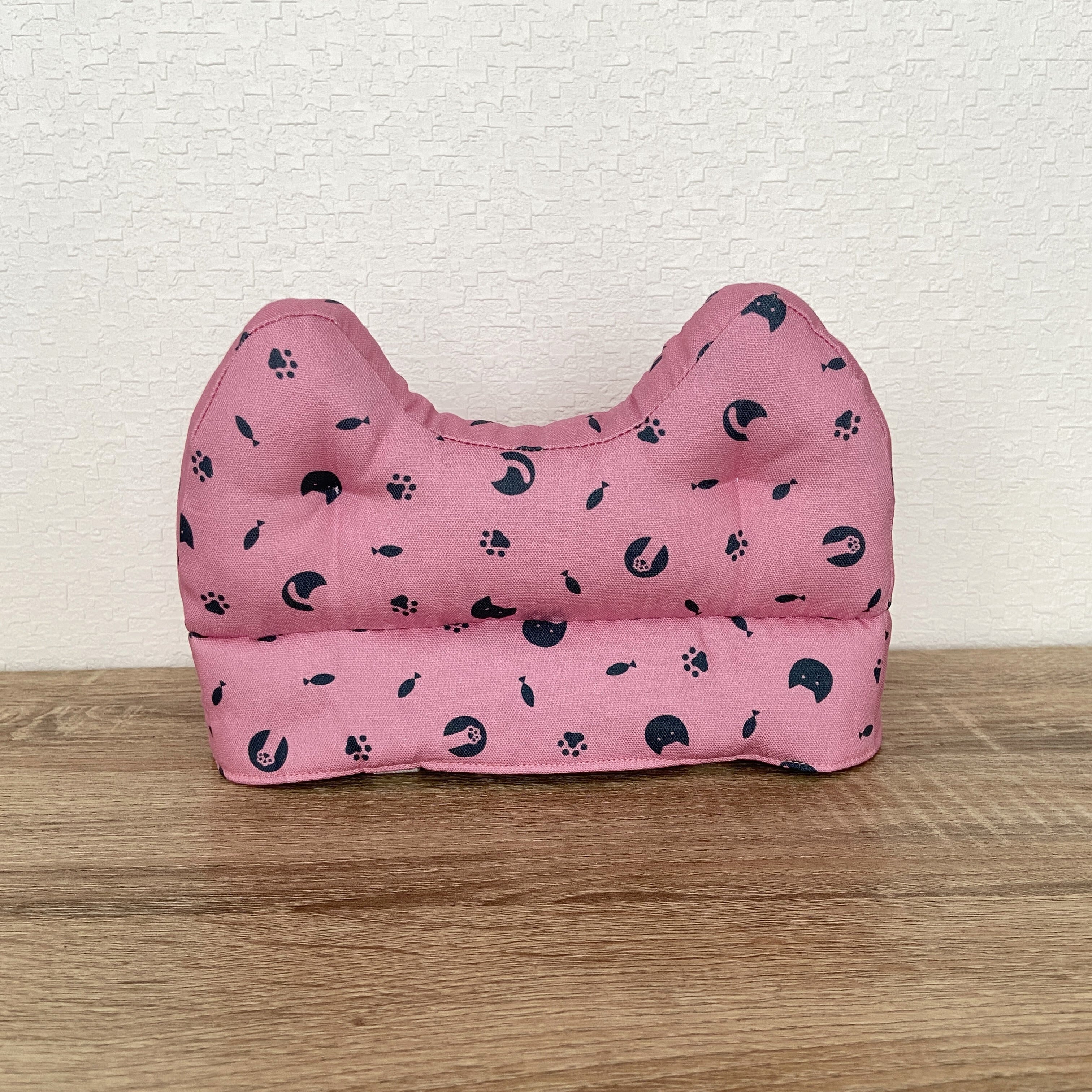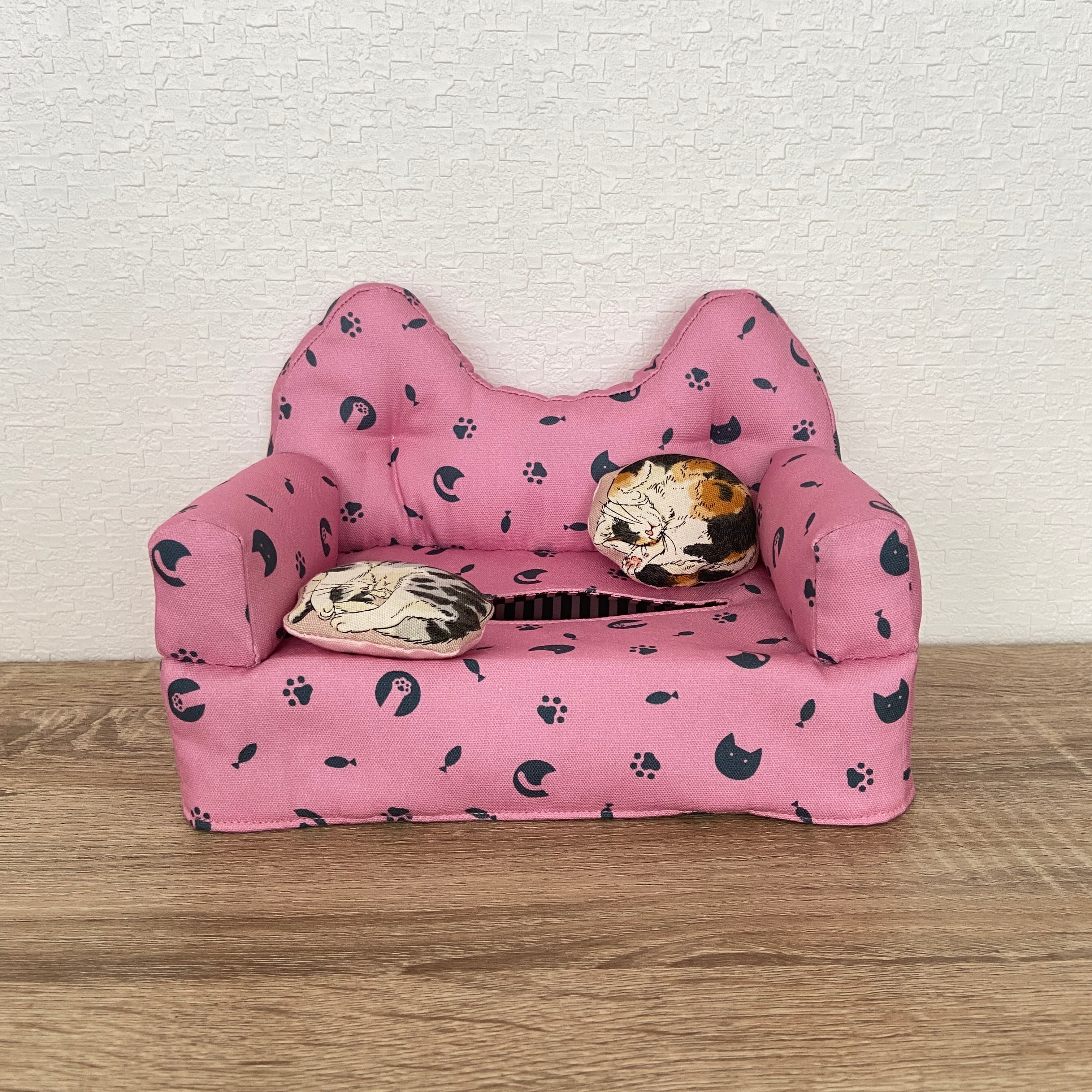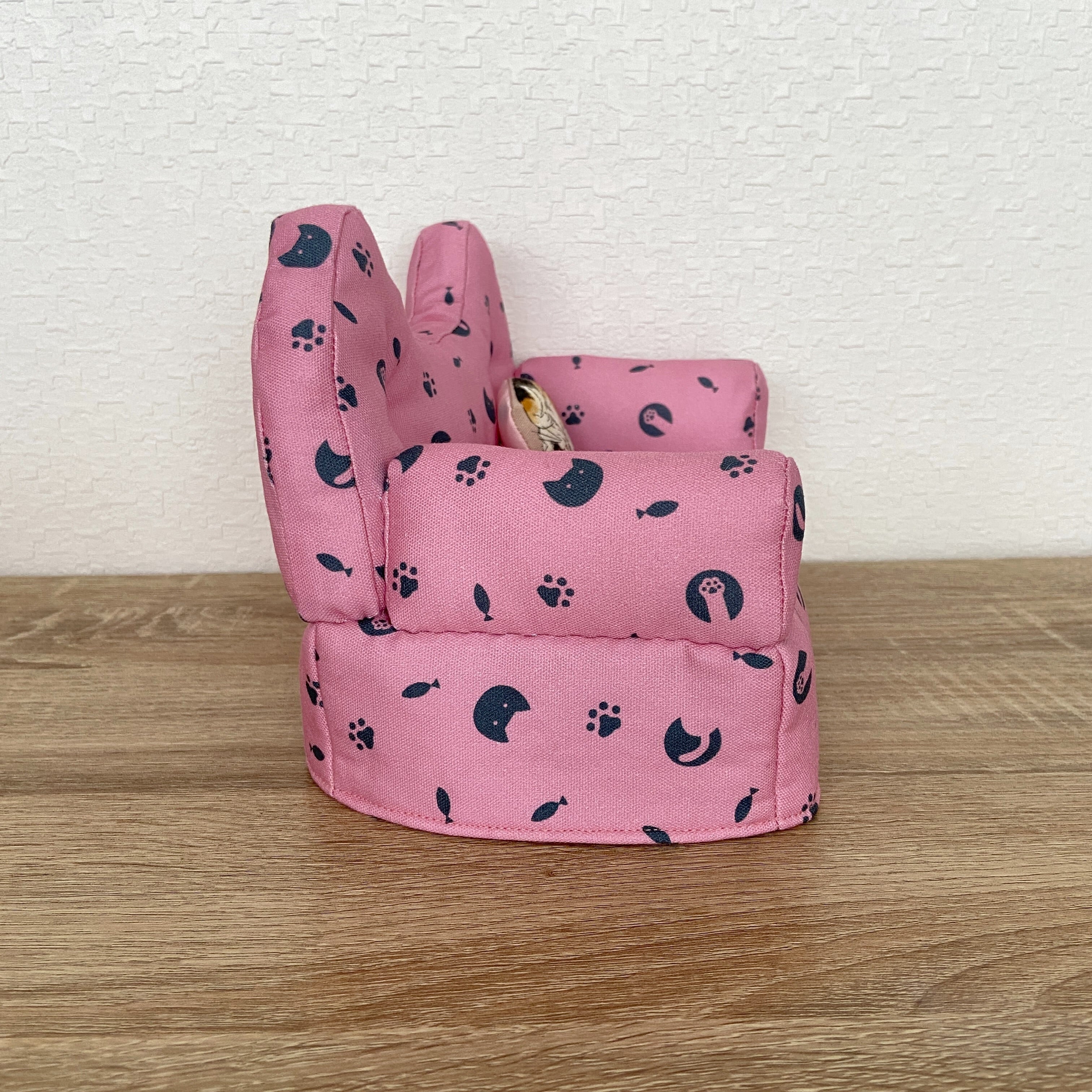 猫柄生地を使用し、背もたれもにゃんこ型になっています。