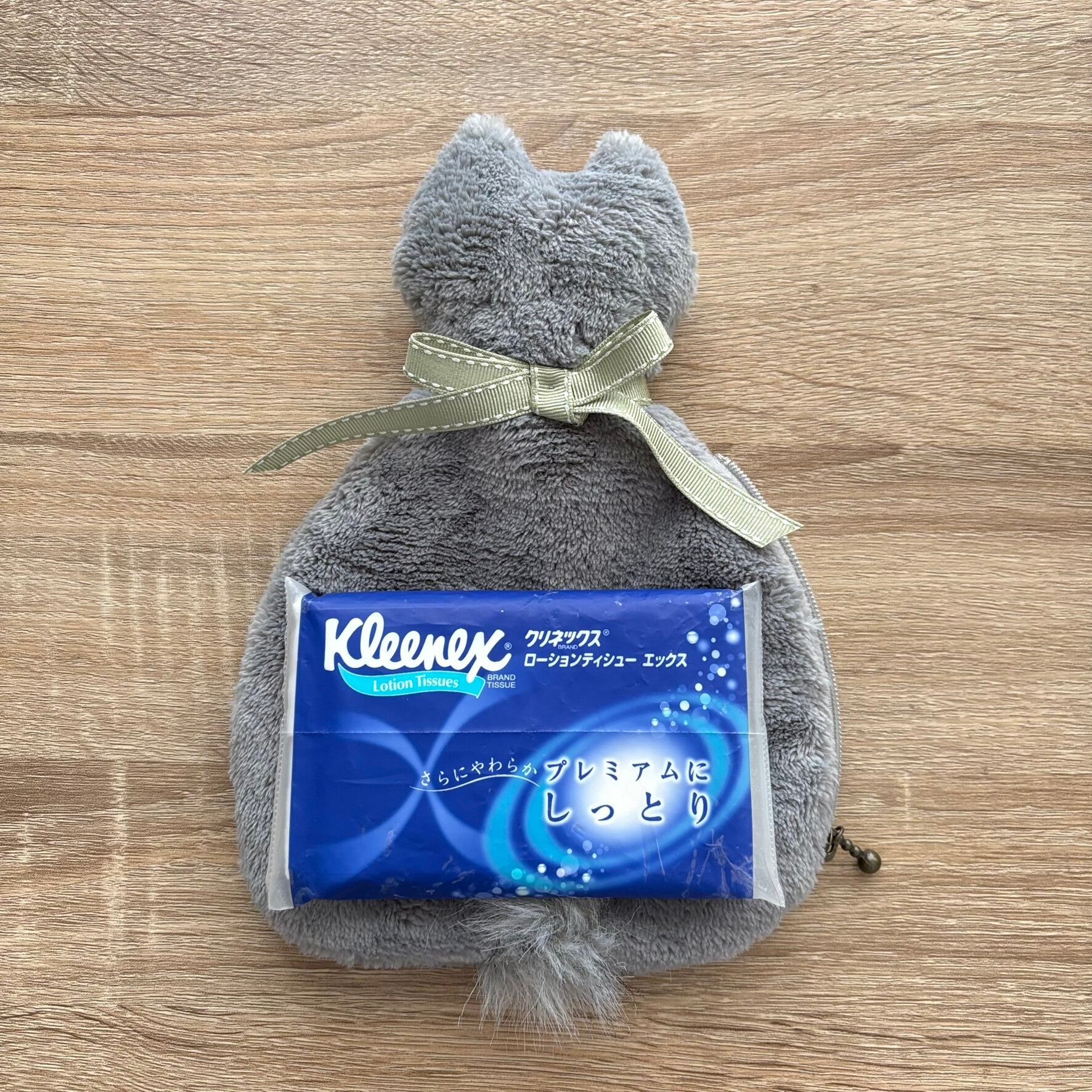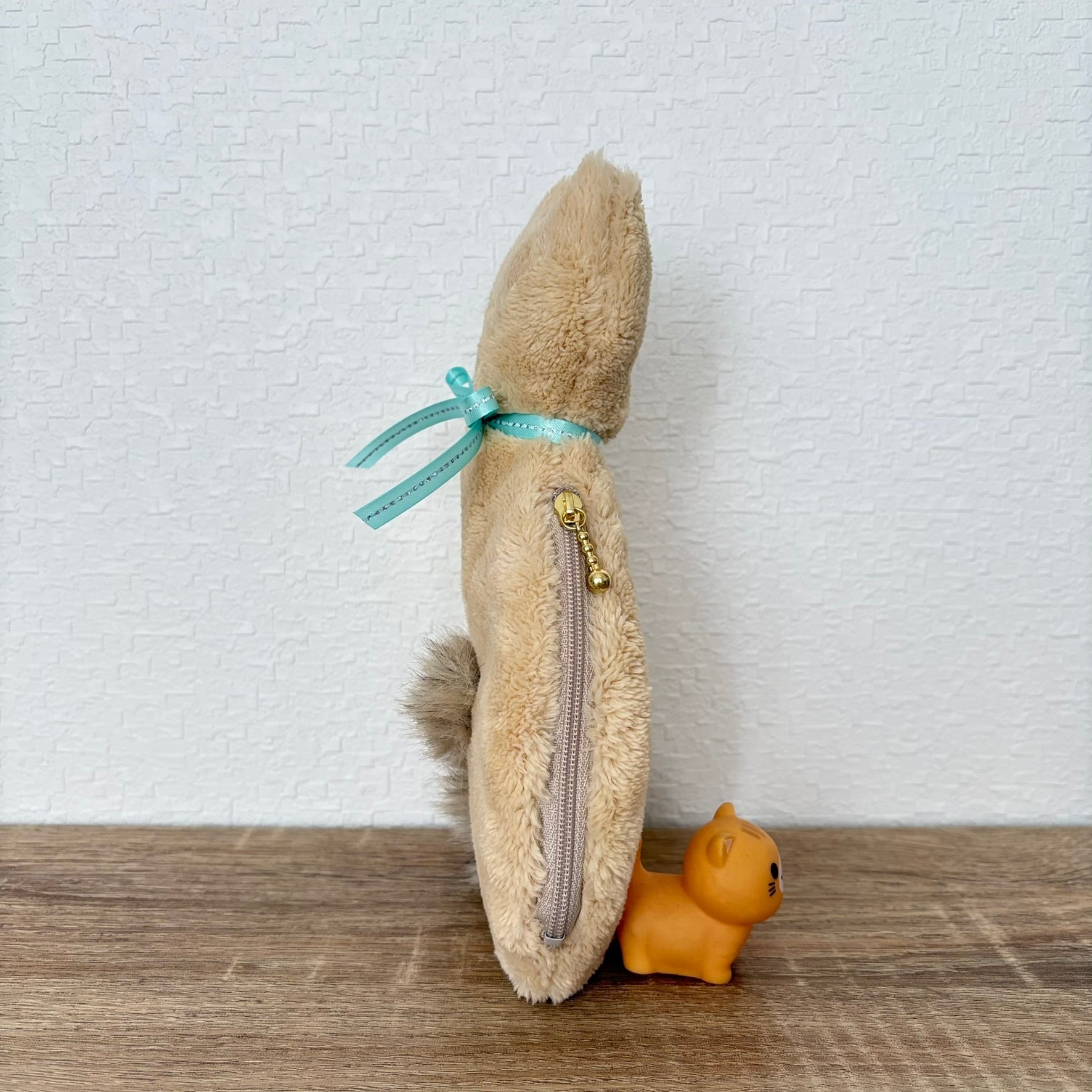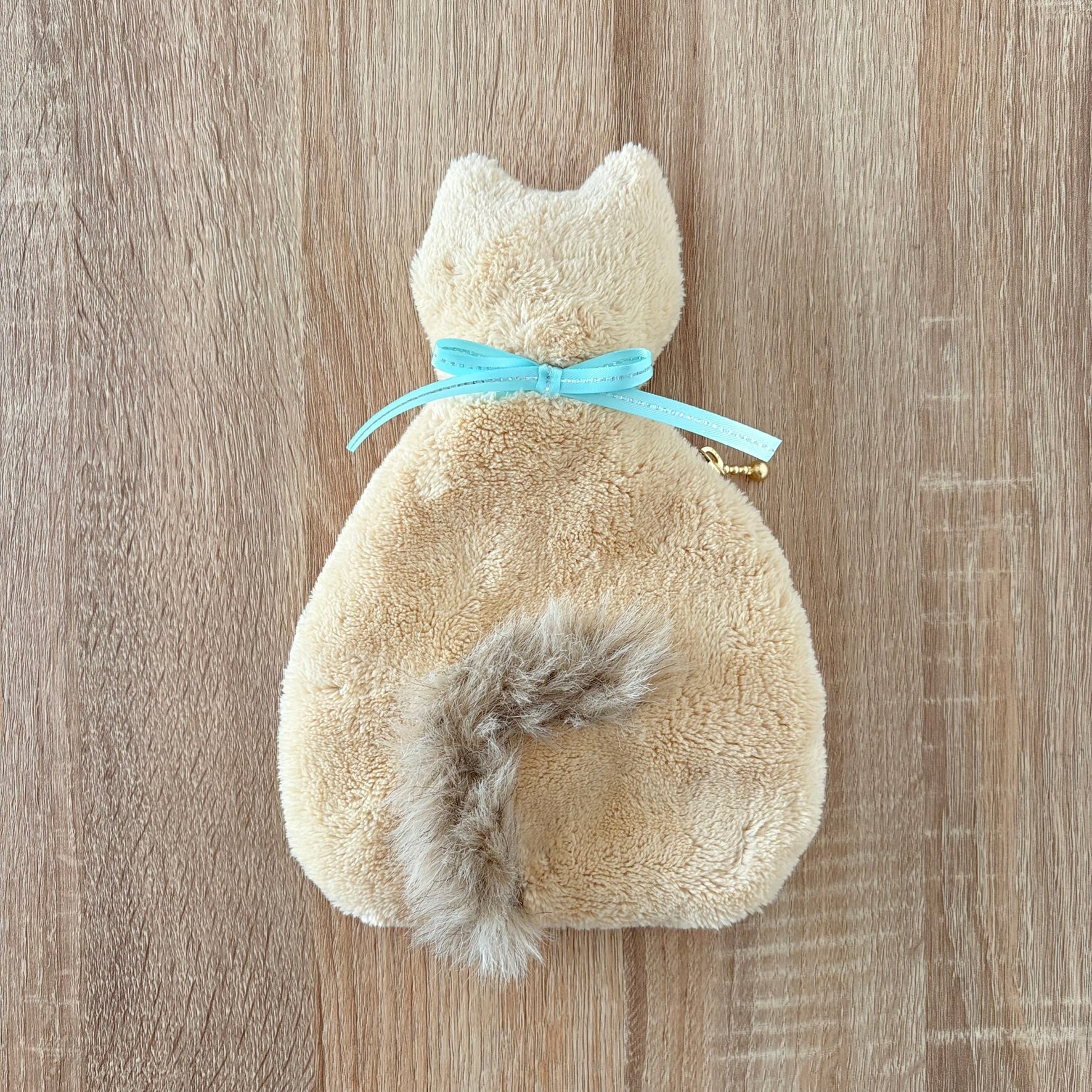 ファー生地を使ったねこちゃんの後ろ姿のポーチです。