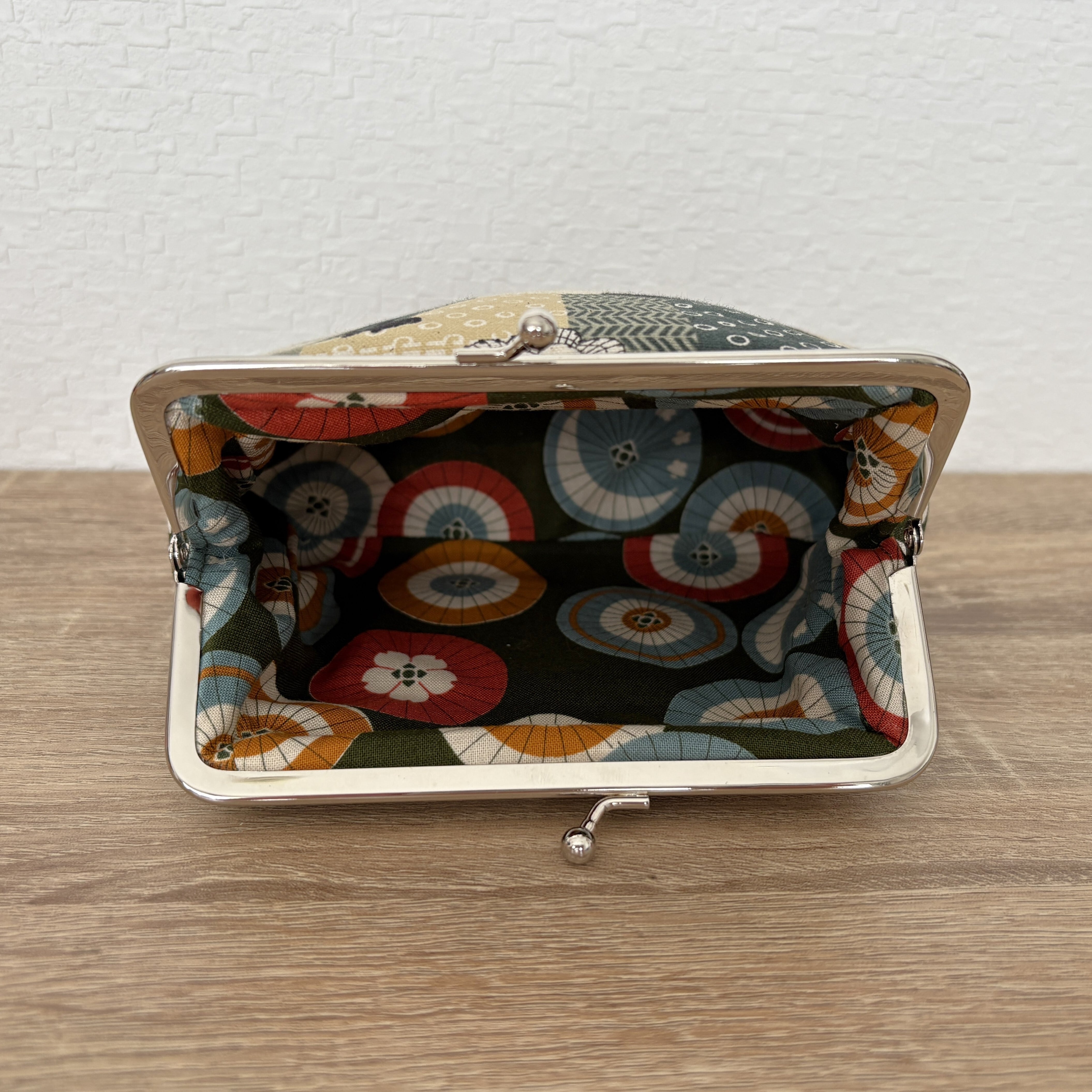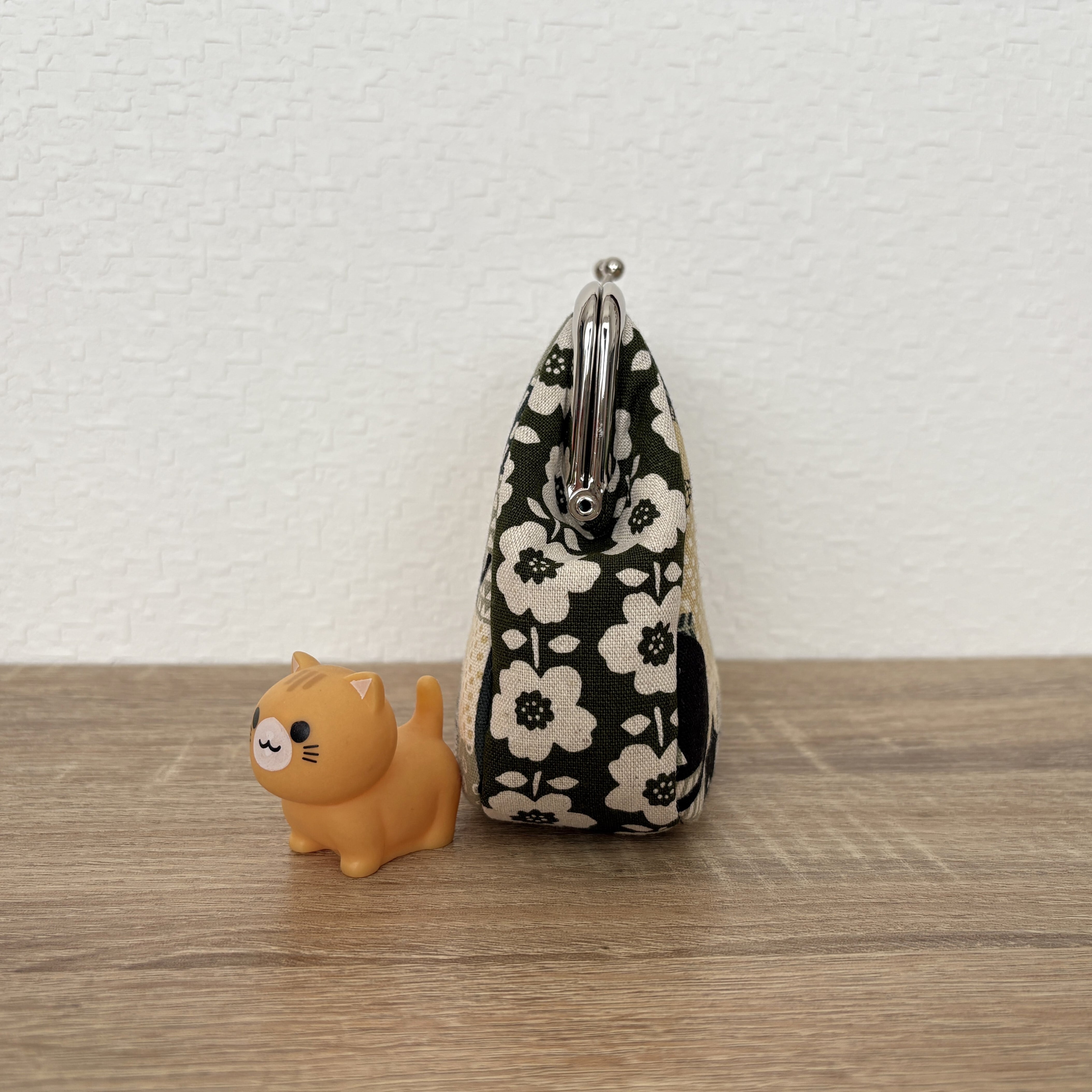 がま口は幅14㎝、高さ5㎝。