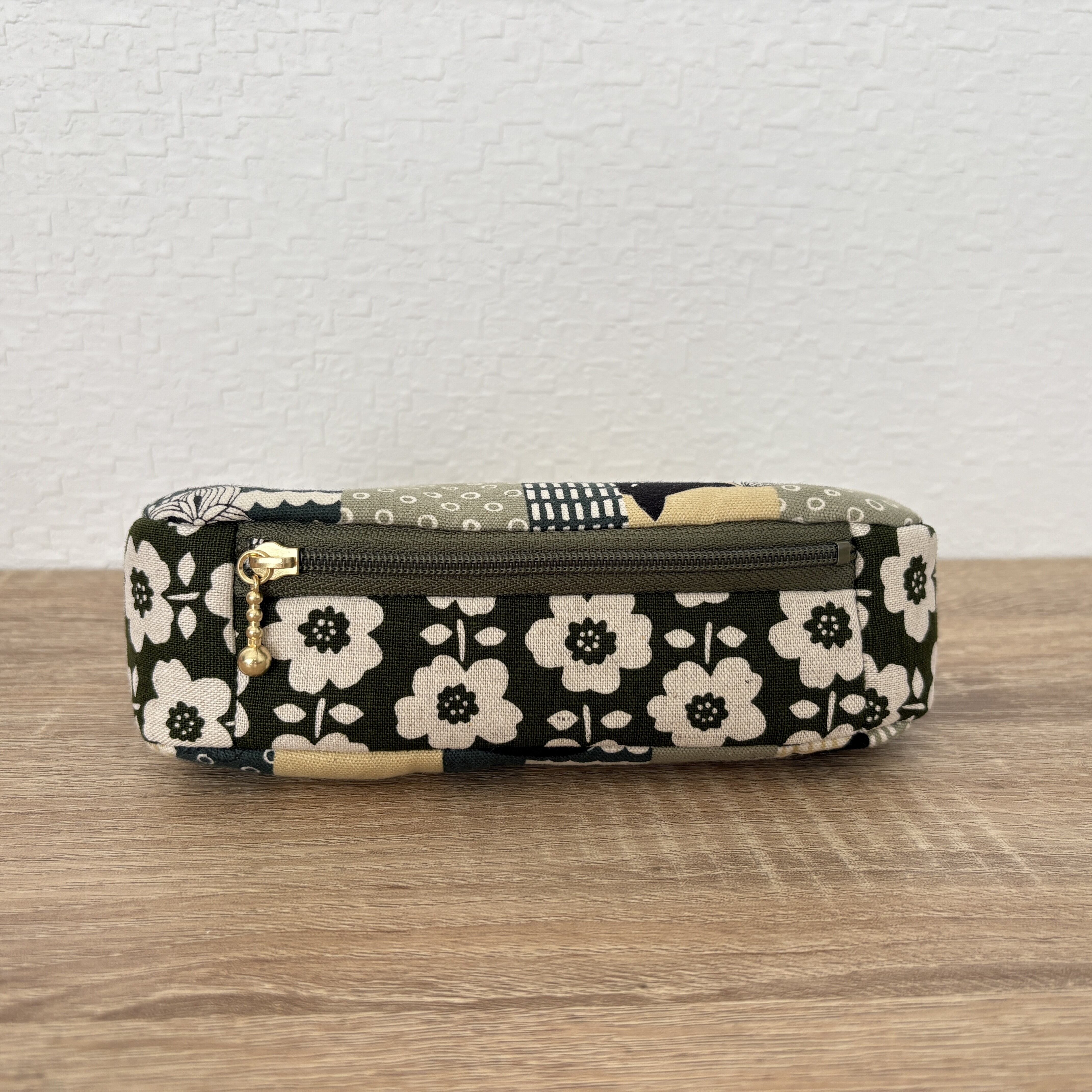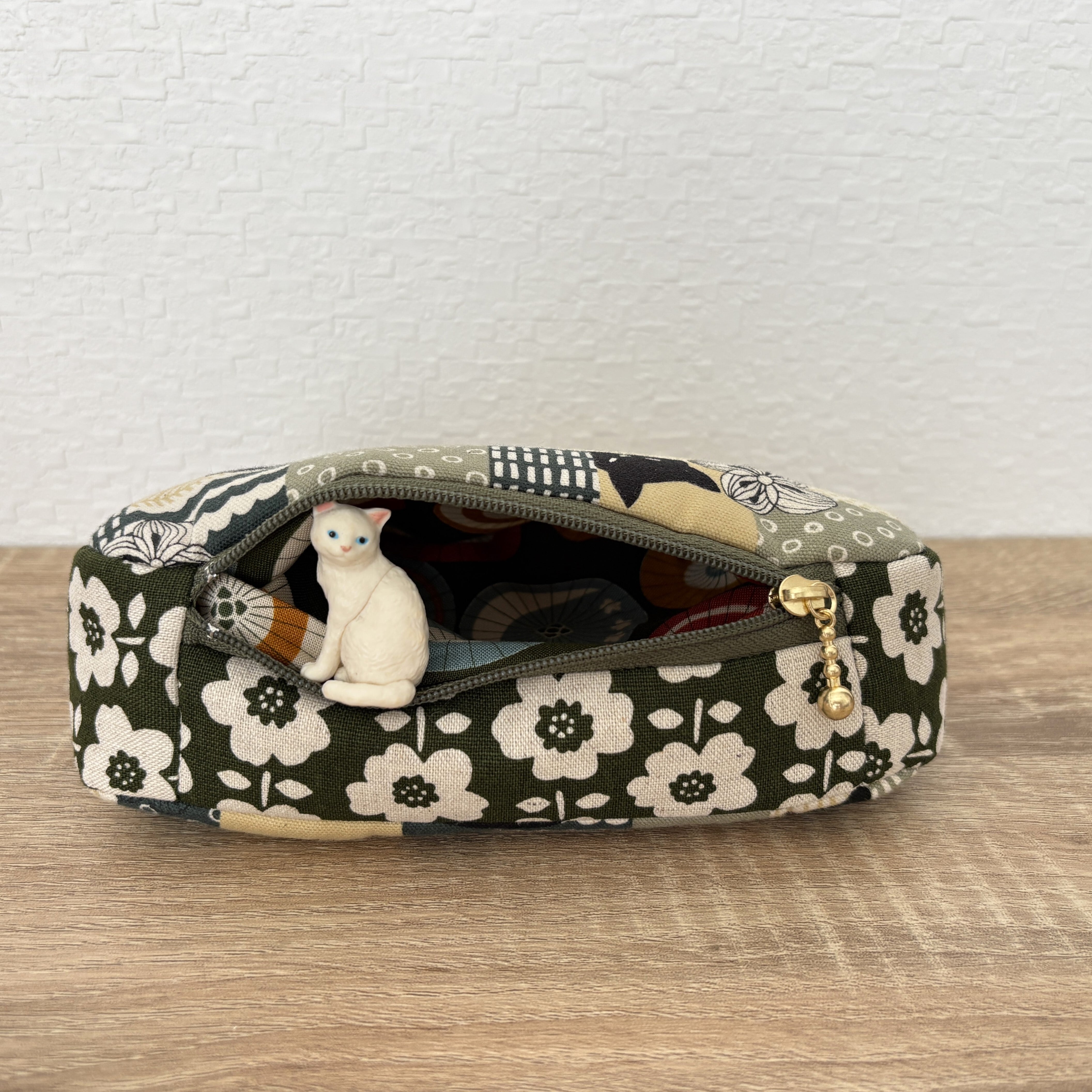 がま口ポーチのまちに12㎝ファスナーを使用したポケットを付けました。