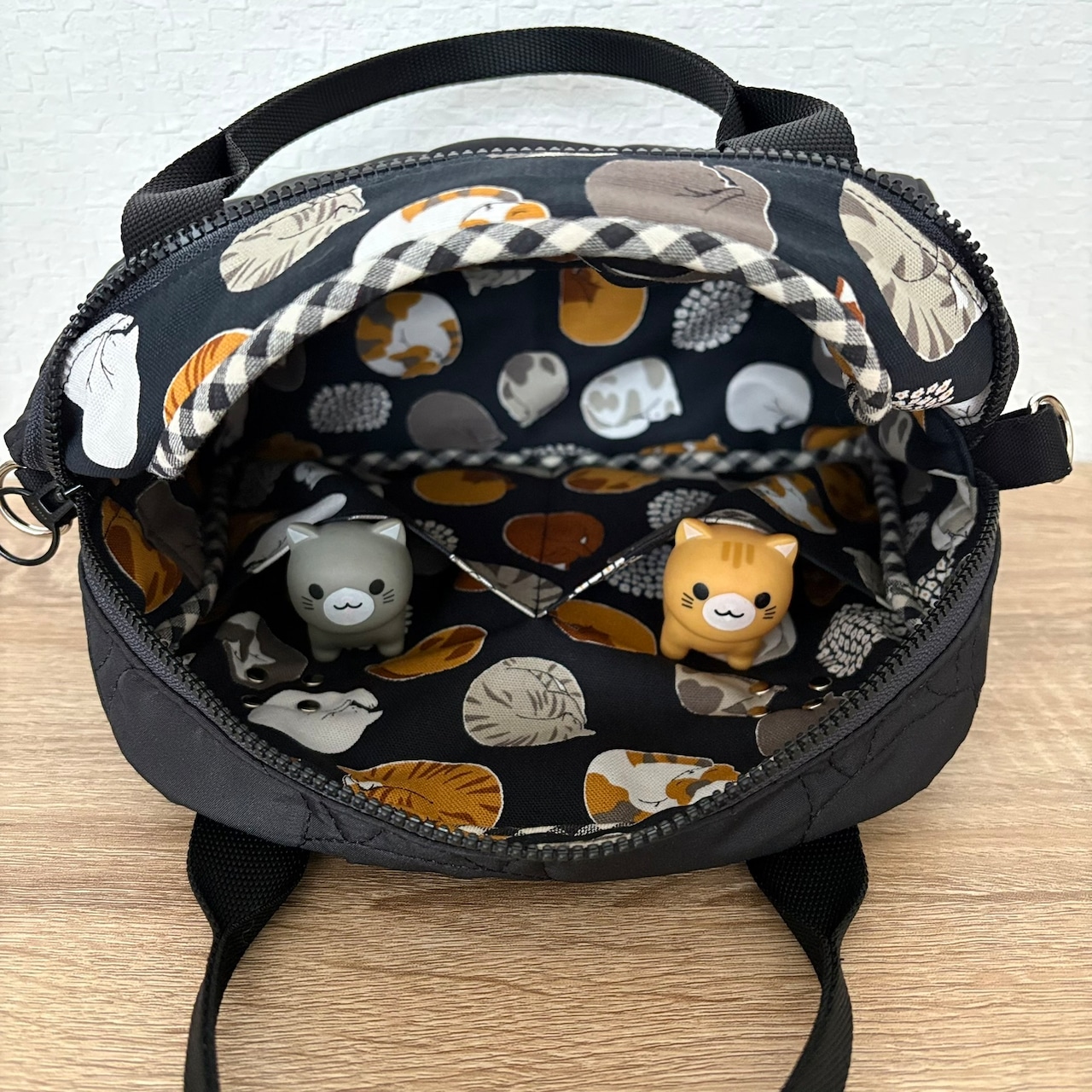 ネコちゃんステッチのキルティング生地を使用したコンパクトなサイズのバッグです。