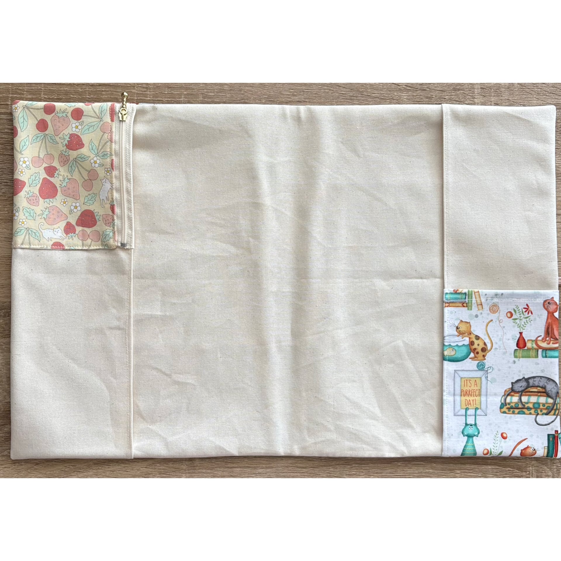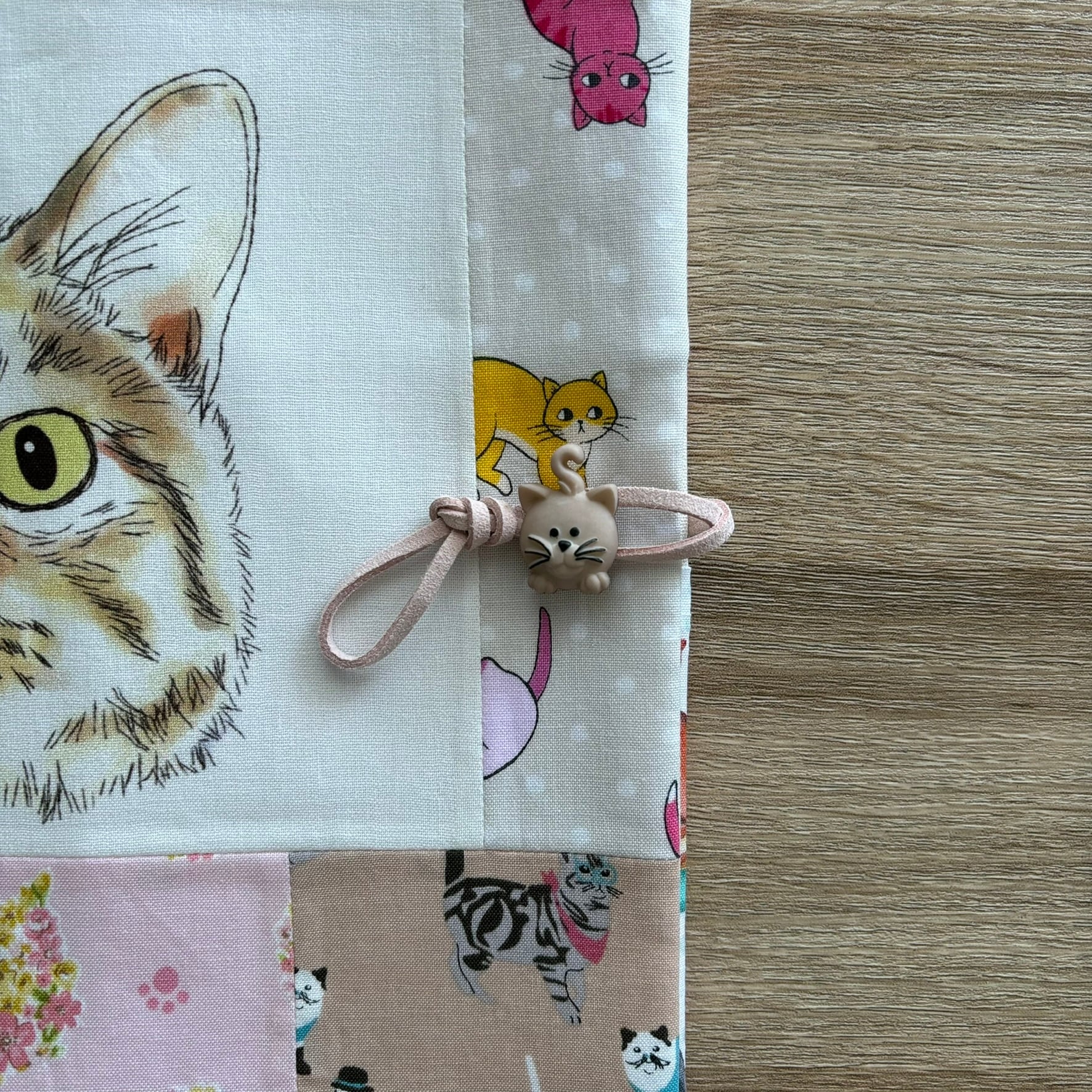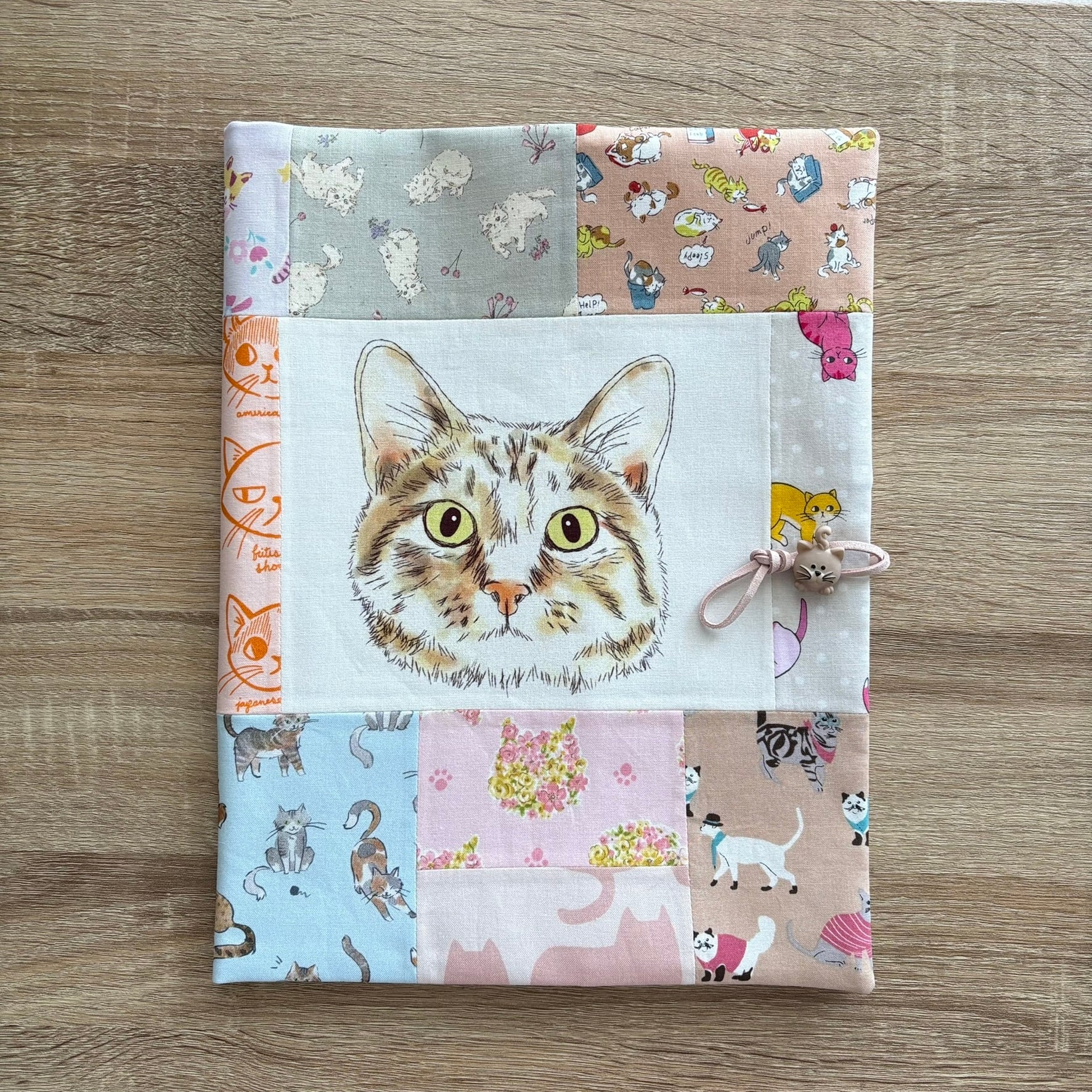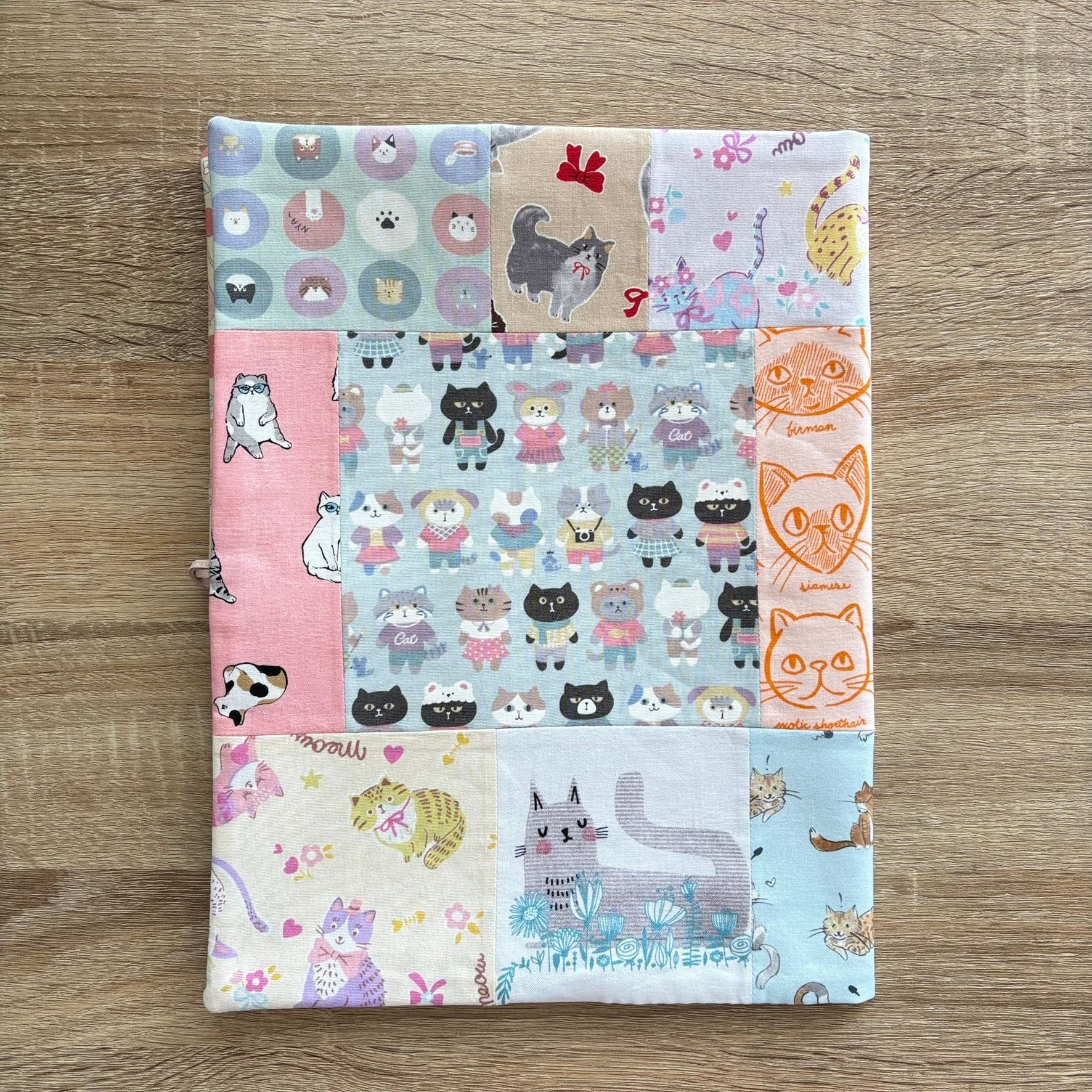 いろいろな猫柄生地をパッチワークしました。