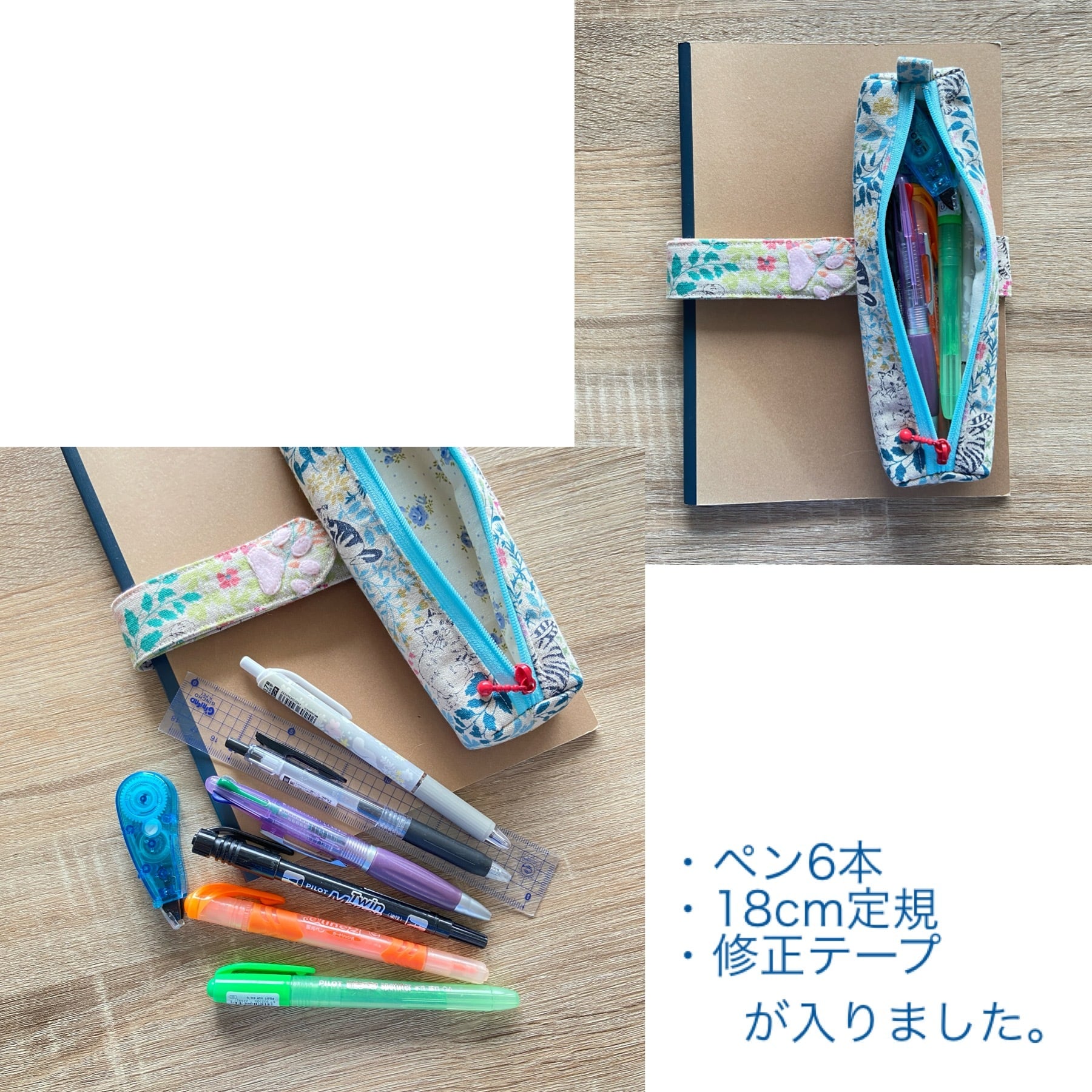 5枚目の写真は同じサイズのペンケースを使った参考写真です。