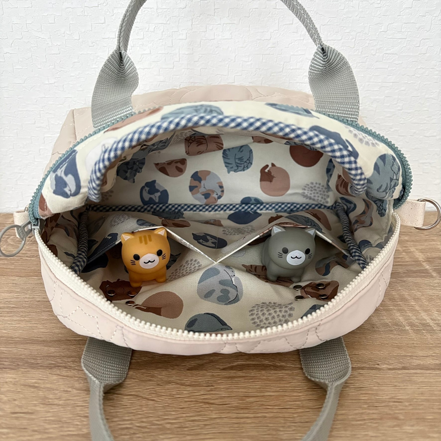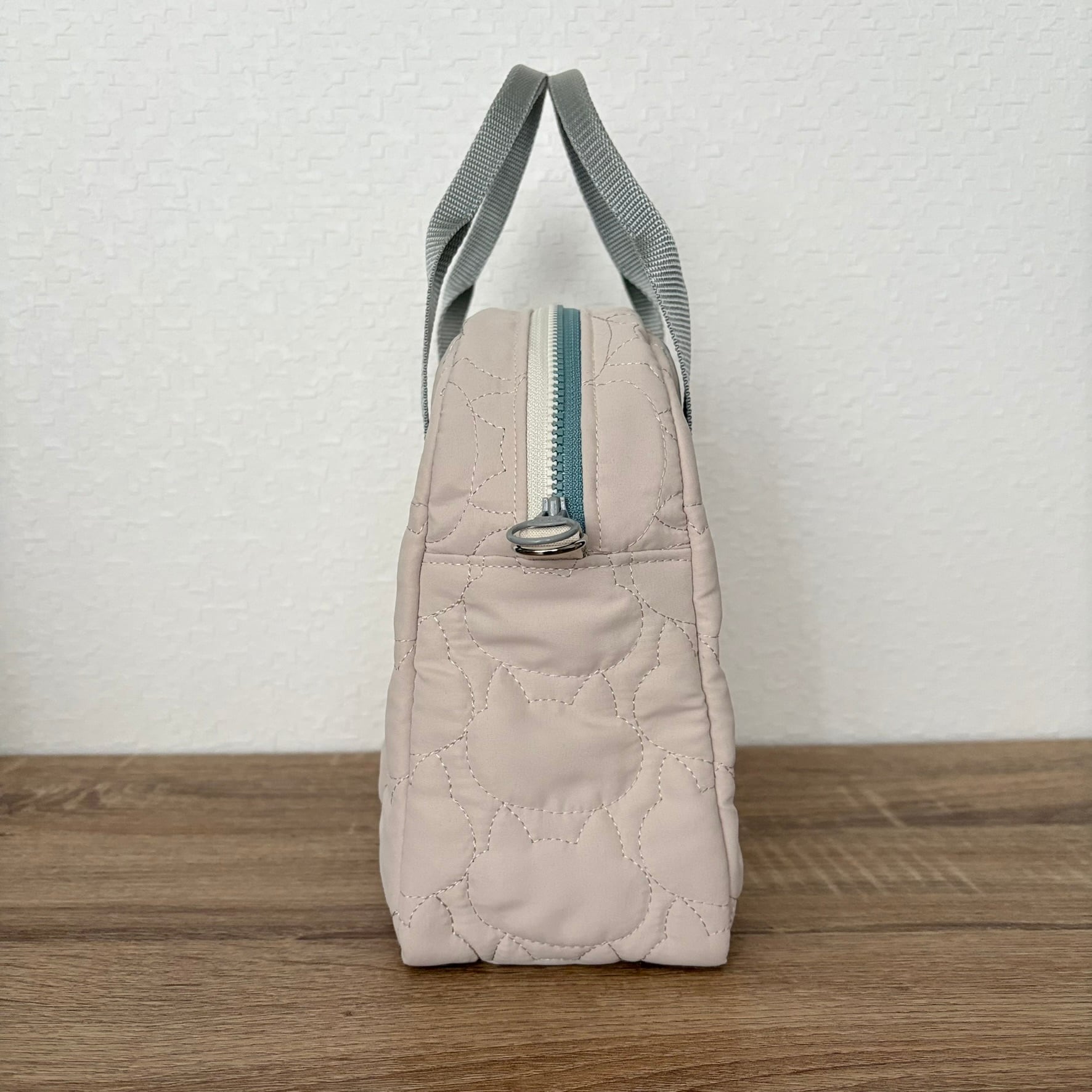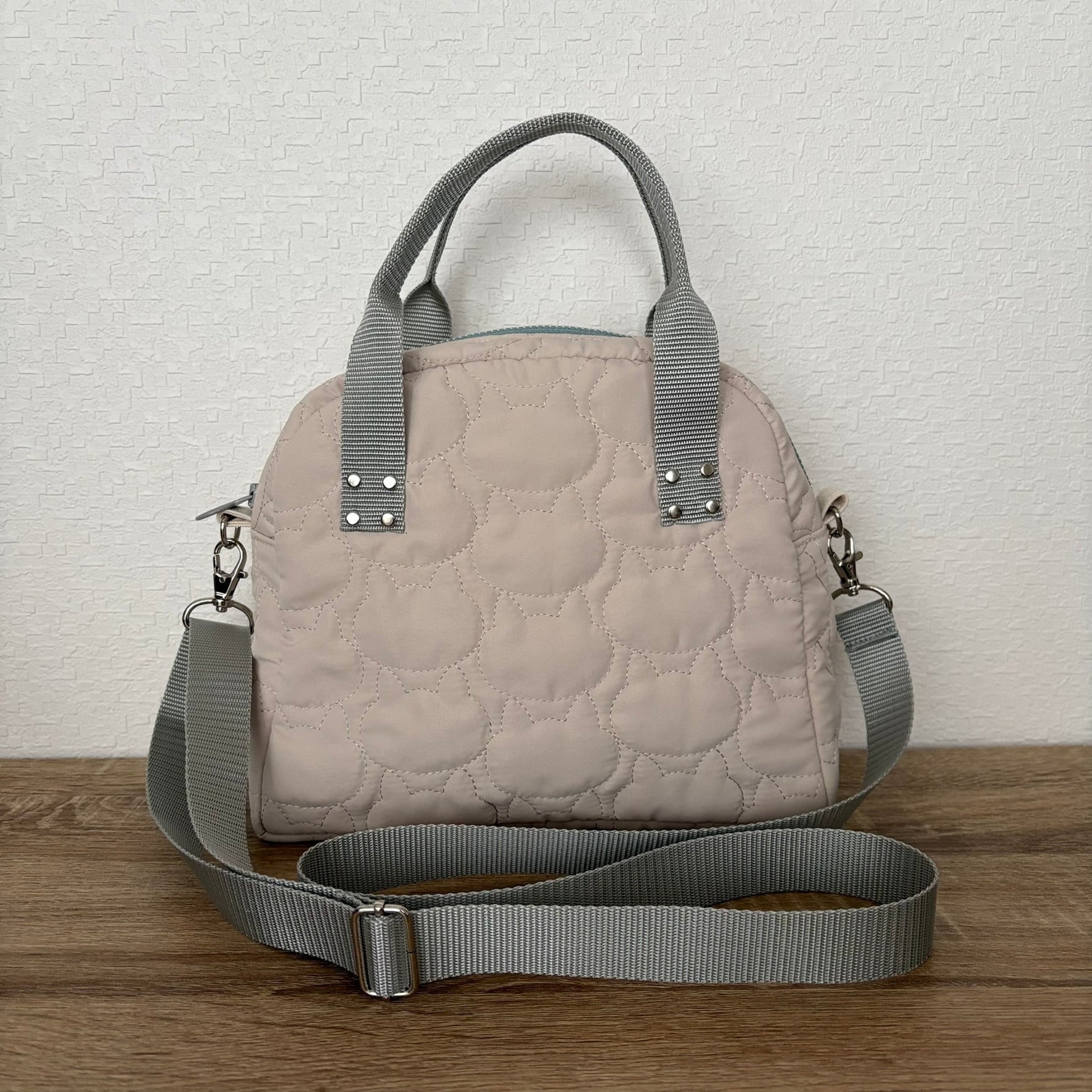 ネコちゃんステッチのキルティング生地を使用したコンパクトなサイズのバッグです。