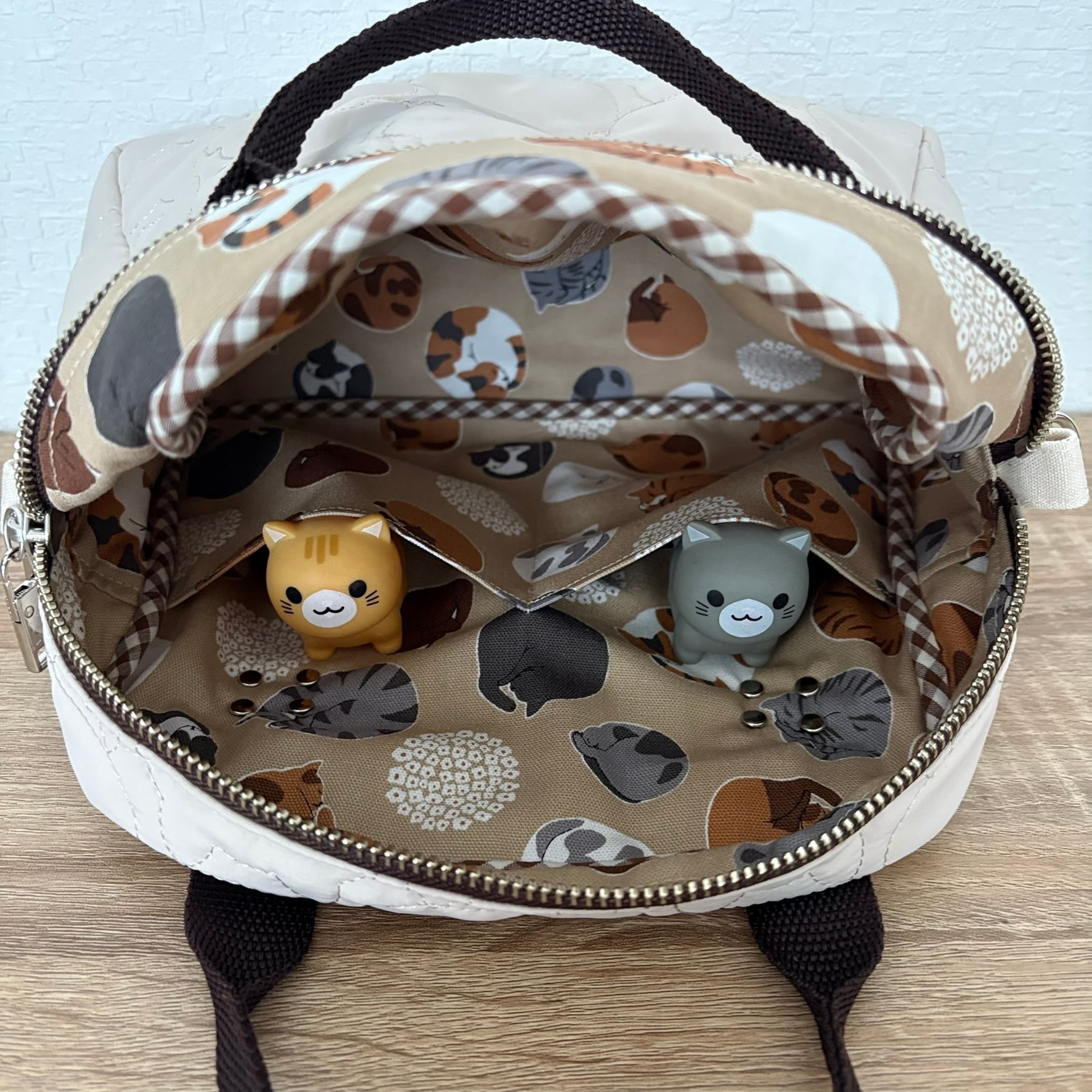 内側には猫柄生地を使用しています。