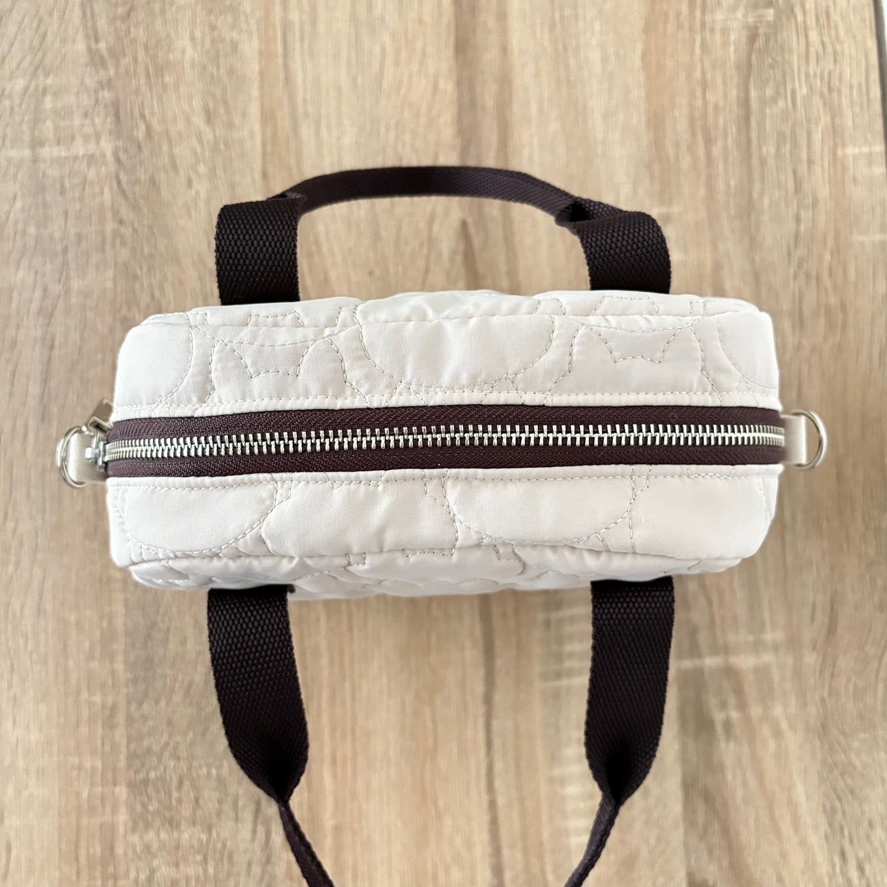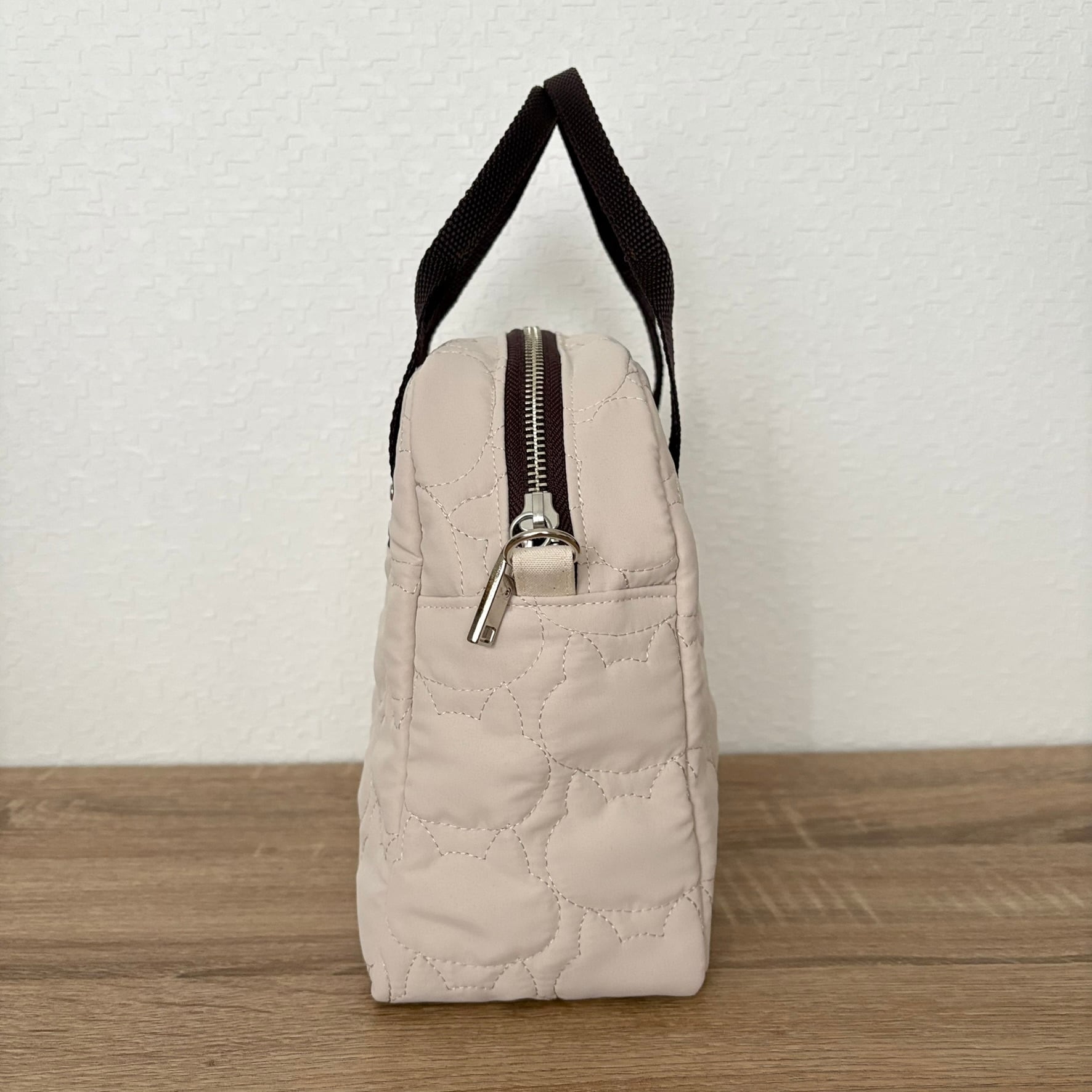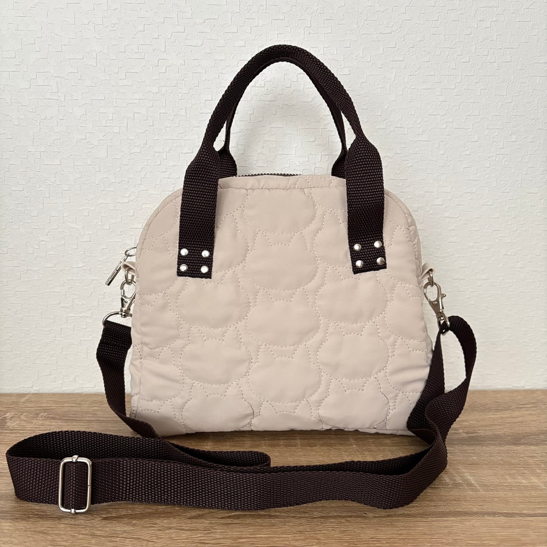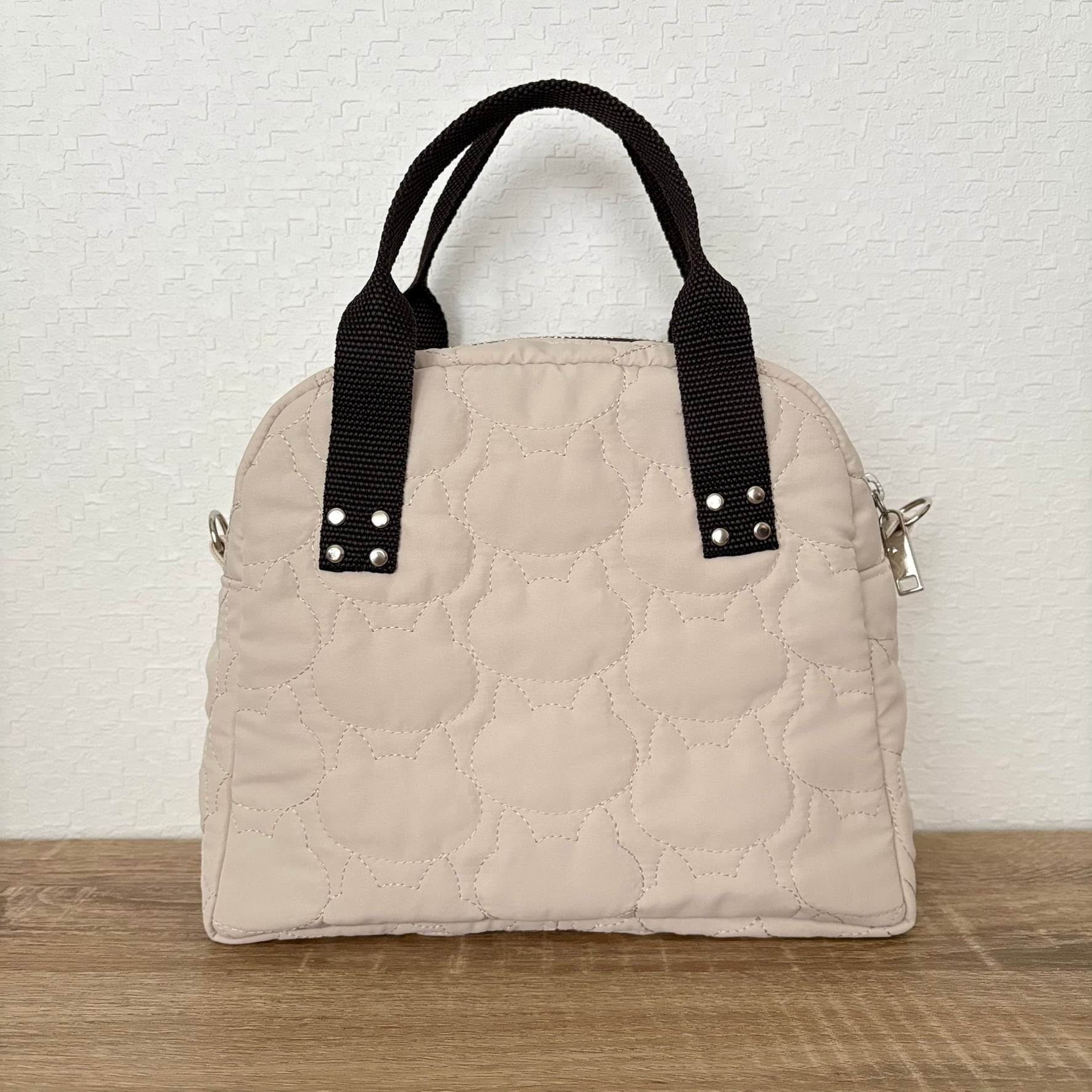 ネコちゃんステッチのキルティング生地を使用したコンパクトなサイズのバッグです。