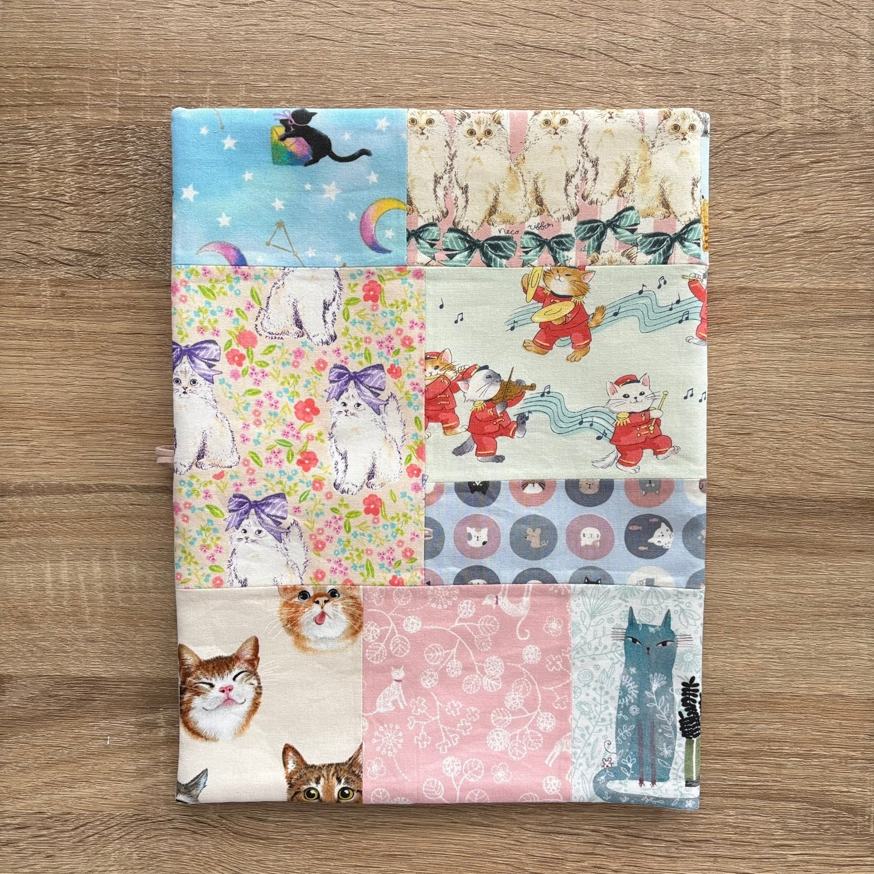 いろいろな猫柄生地をパッチワークしました。