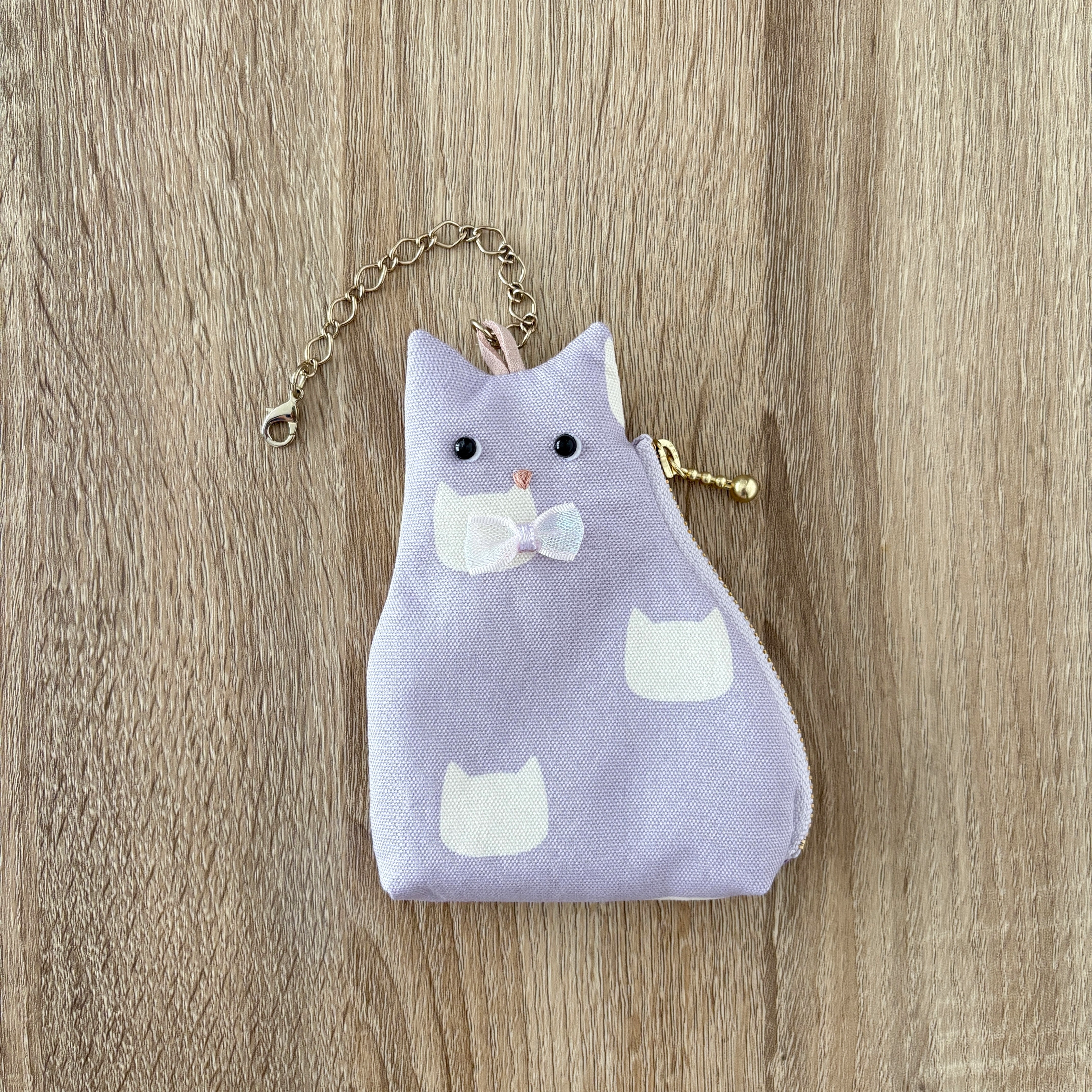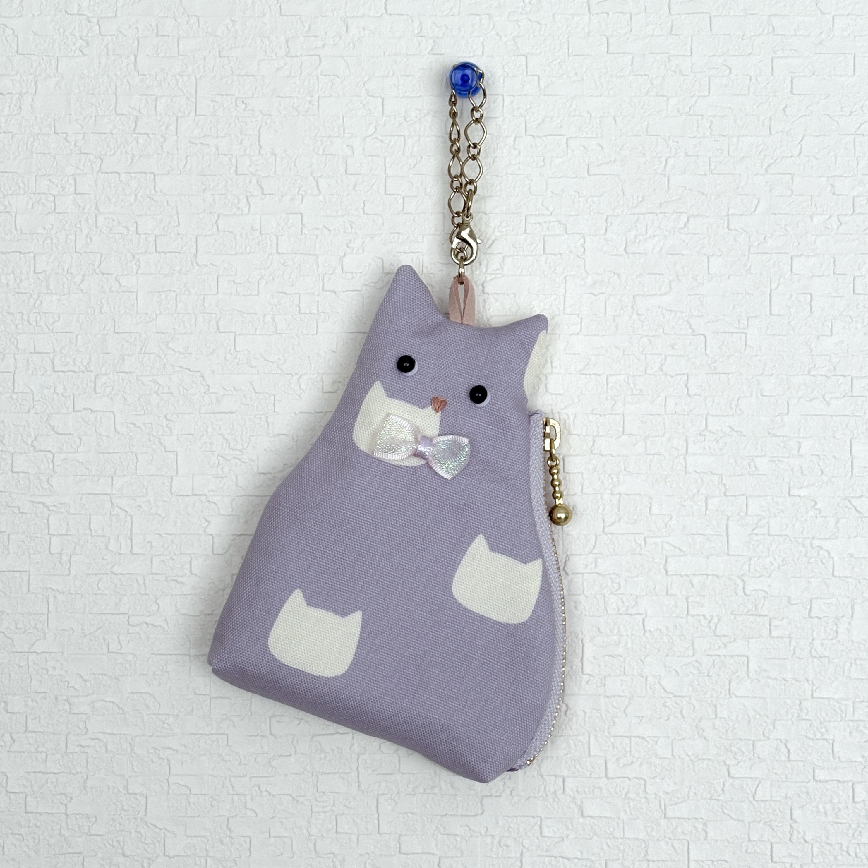 小さな猫型のポーチをバッグチャームにしました。